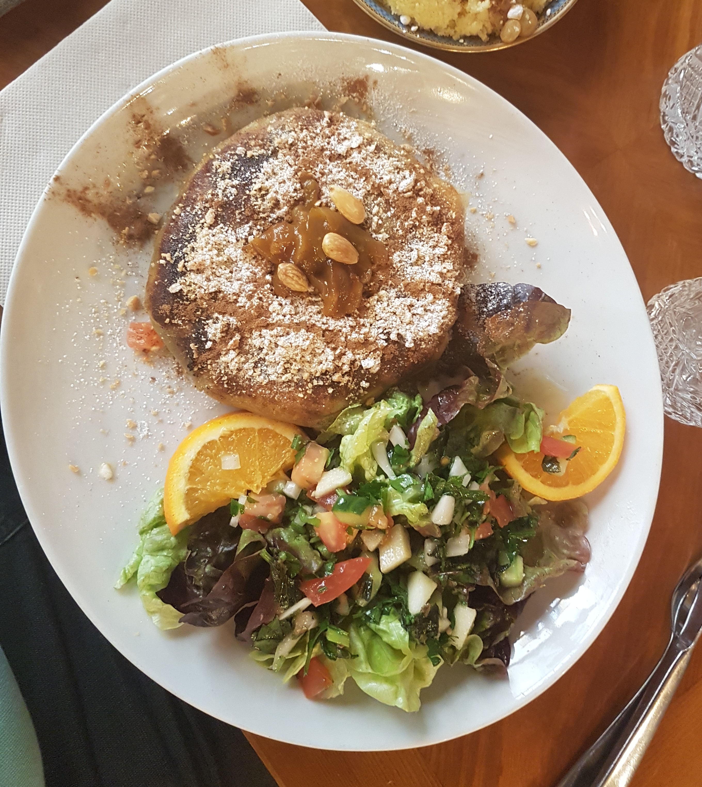 Aussi beau que bon, nous nous sommes régalés! Les plats étaient copieux, le personnel est sympathique, les pâtisseries/café arabe/thé à la menthe étaient très bon et parfait pour finir le repas. Un vrai voyage dans l’assiette, merci beaucoup!