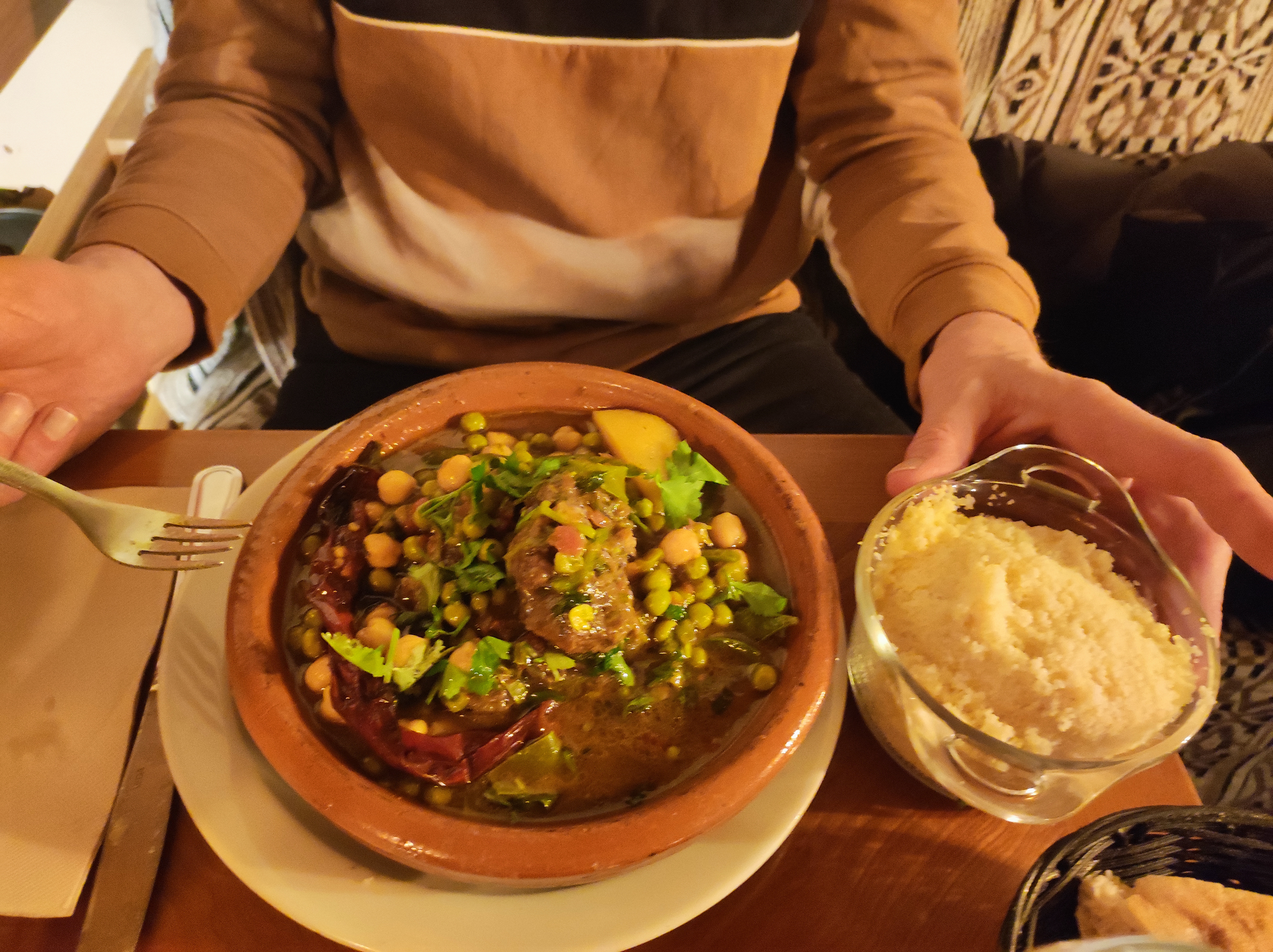 Nous avons choisi le tagine qui est autre que le couscous dans un plat à tagine 🙄