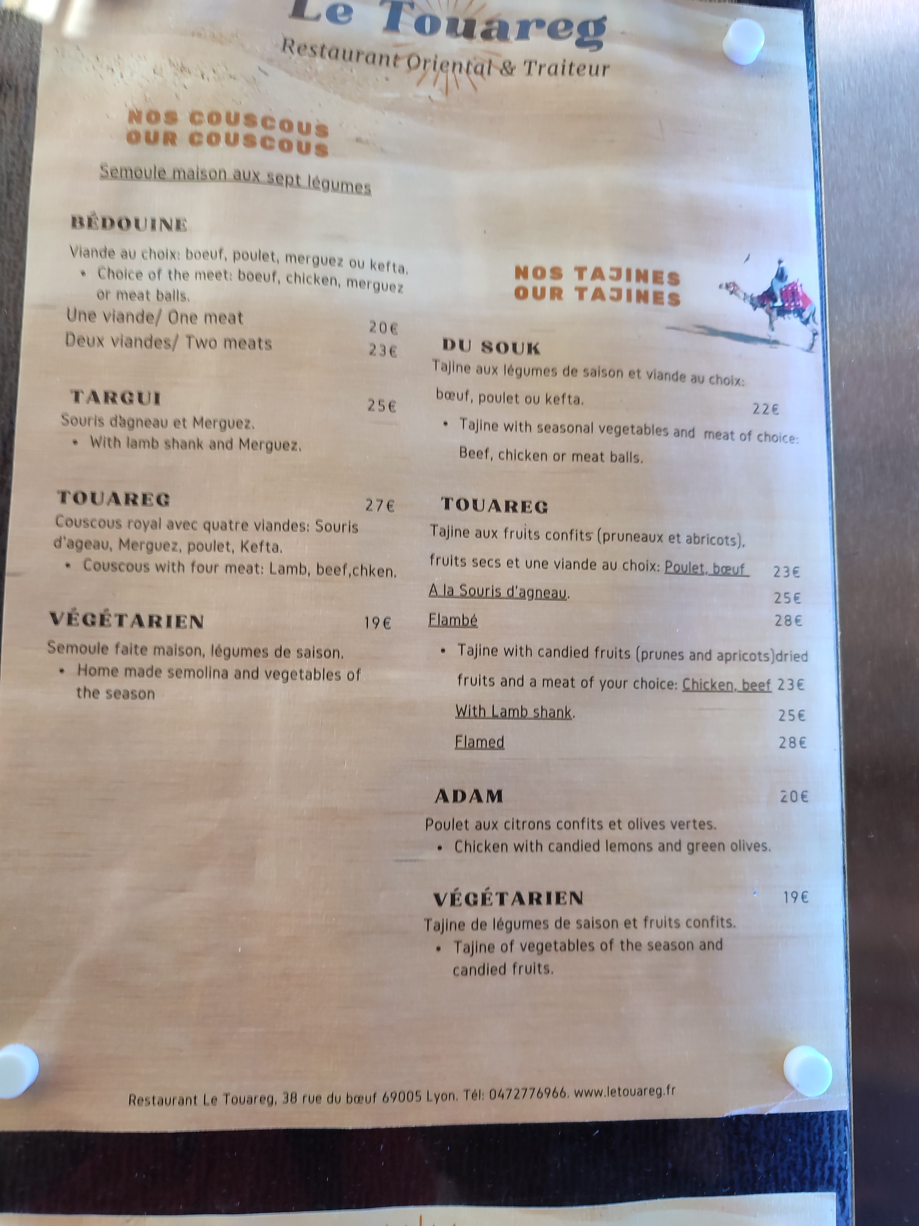 Bonjour Marine, Merci pour votre commentaire. Nous sommes ravis de vous avoir convaincue avec notre humous et notre tajine. Nous vous invitons à nous rejoindre sur Facebook et Instagram @restaurant_le_touareg_lyon . A très bientôt, Le Touareg