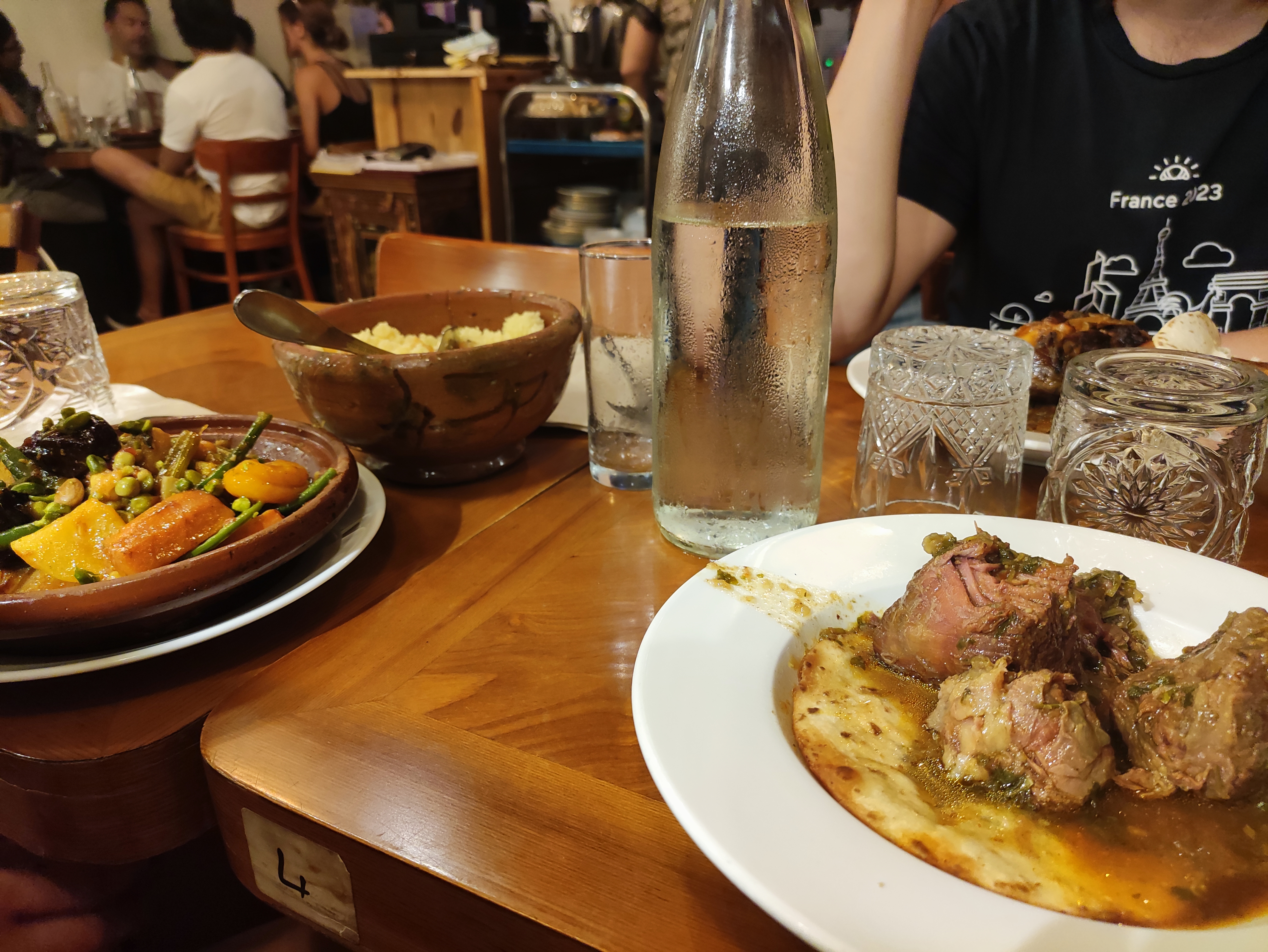 Nous avons bien mangé, la souris d’agneau et le couscous étaient très bons mais l’odeur de nourriture très forte sur nos vêtements en sortant a un peu gâché l’expérience.