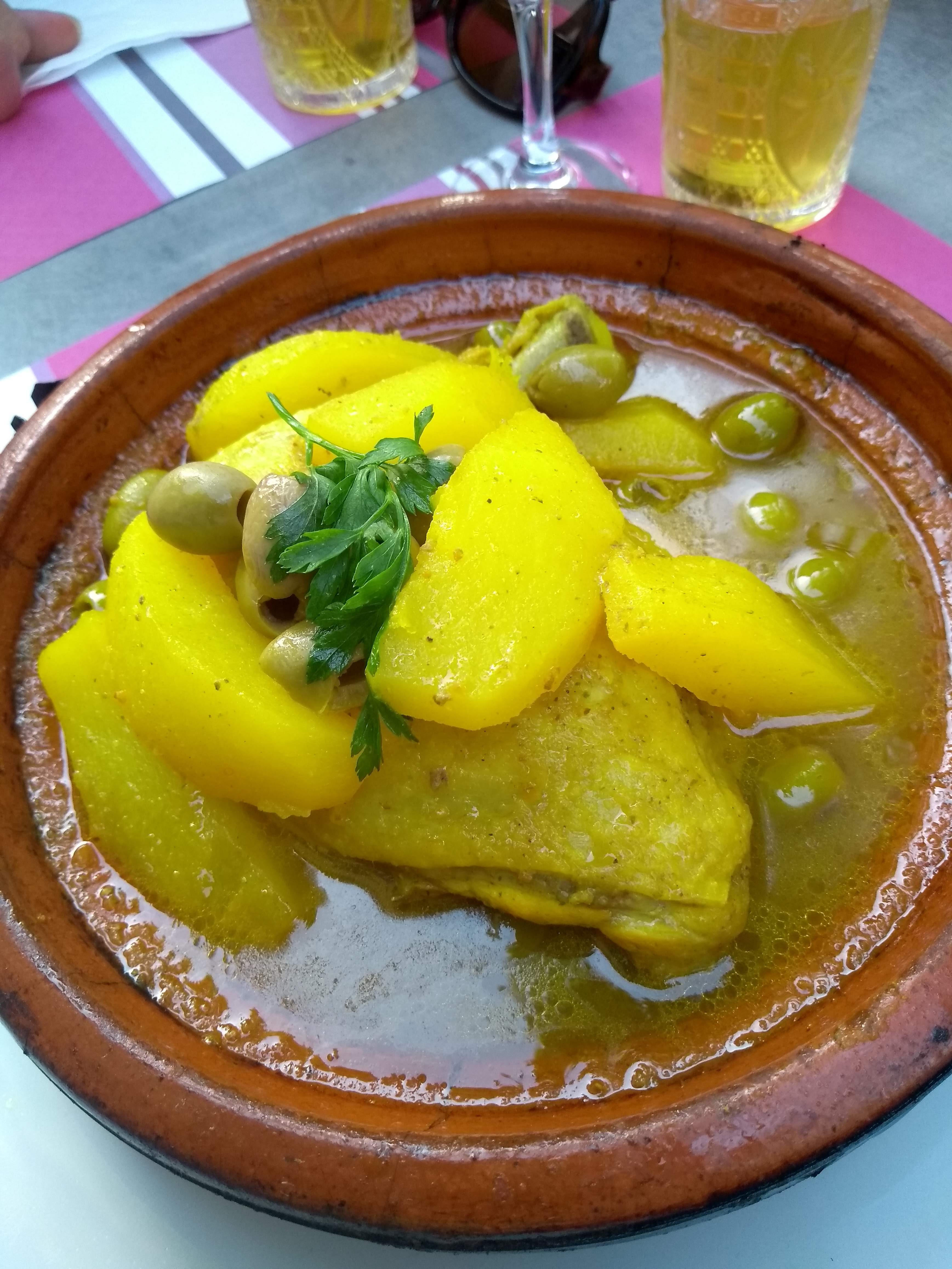 Nous avons mangés un délicieux tajine de poulet aux pommes de terre et semoule.