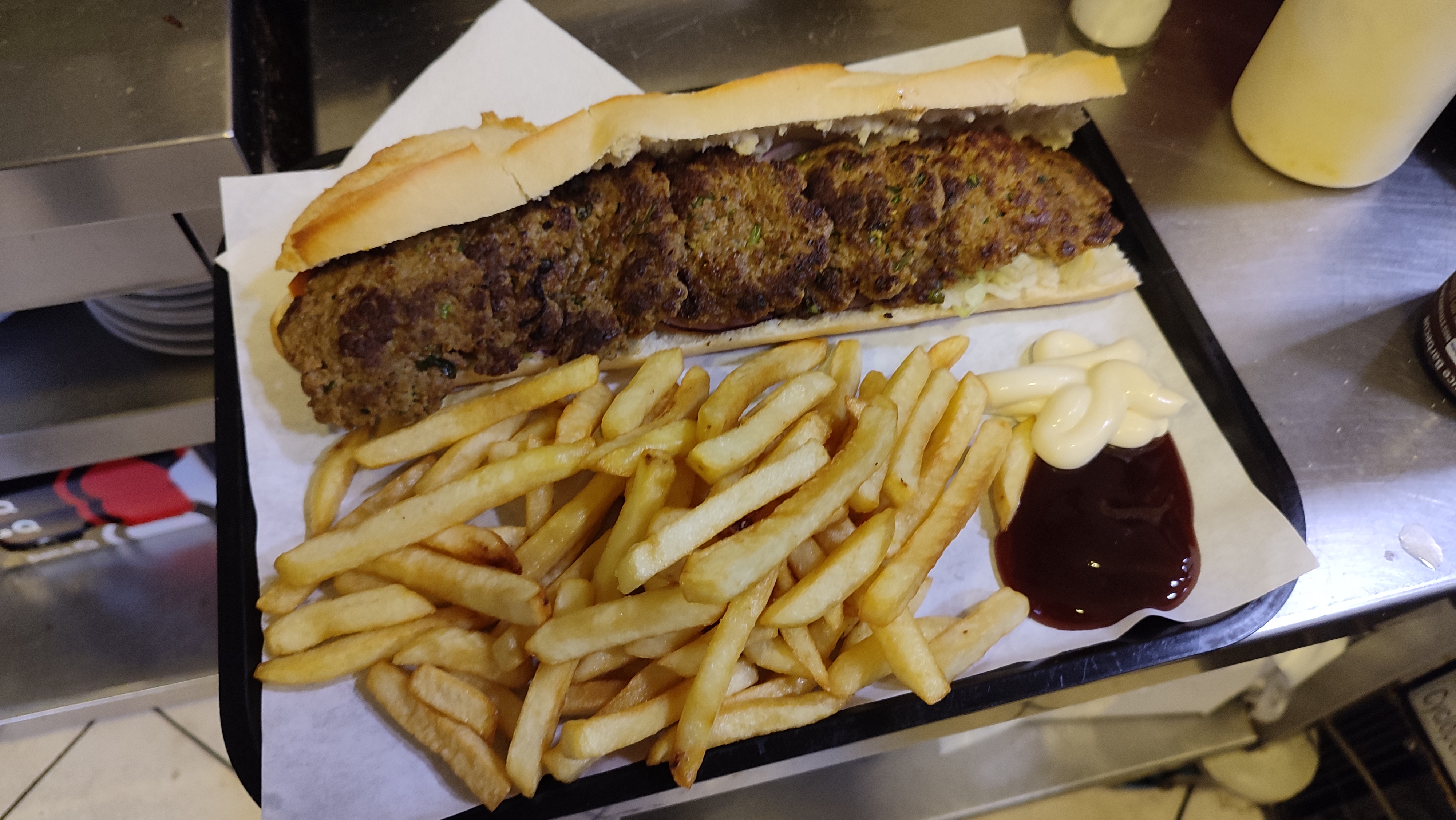J ai pris un sandwich kefta incroyable cuisson de la kefta comme au bled . Super gentil il m'on offert un thé à la menthe.