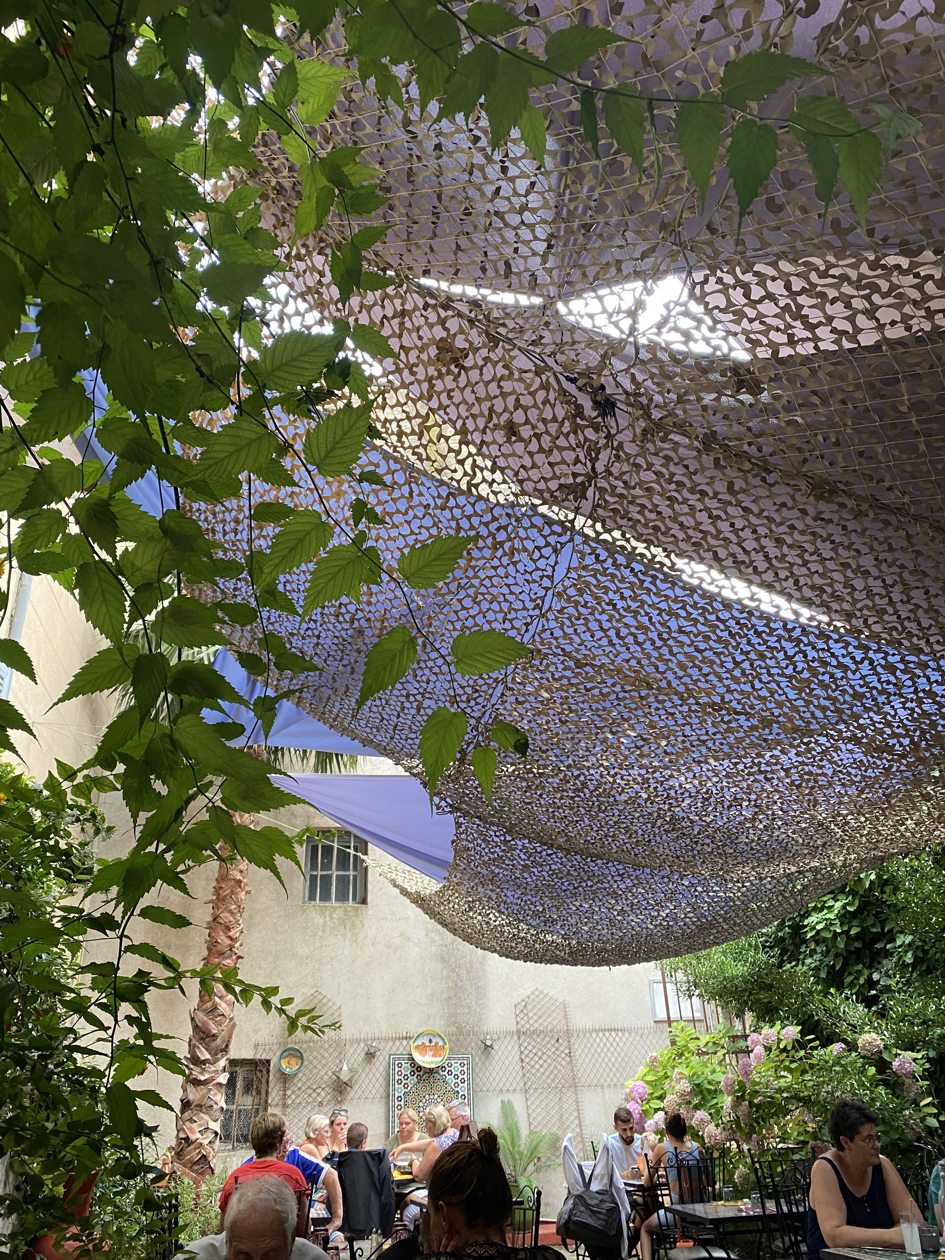 Une cours intérieure bien ombragée. Des plats qui font voyager. On s'est régalé.