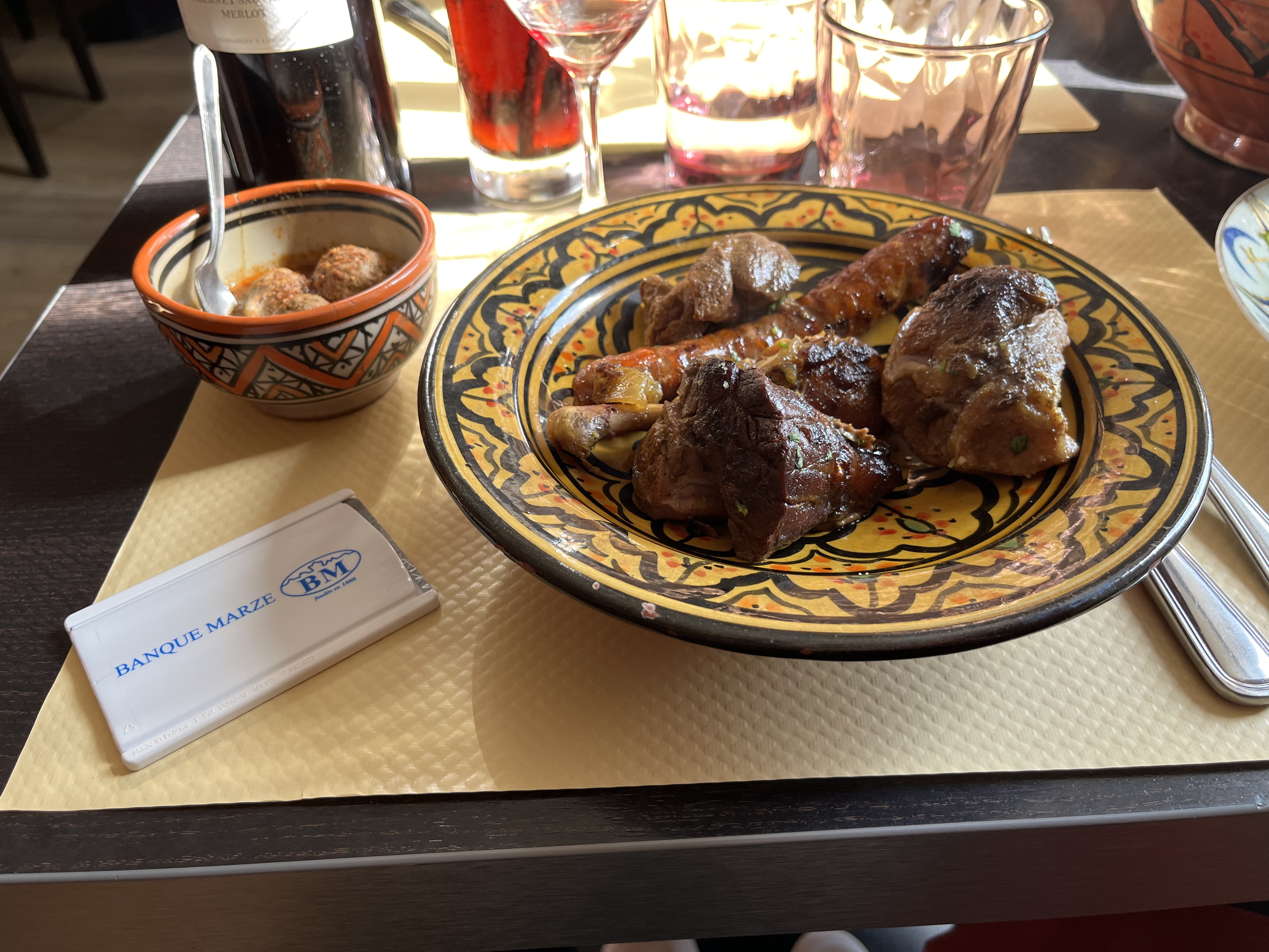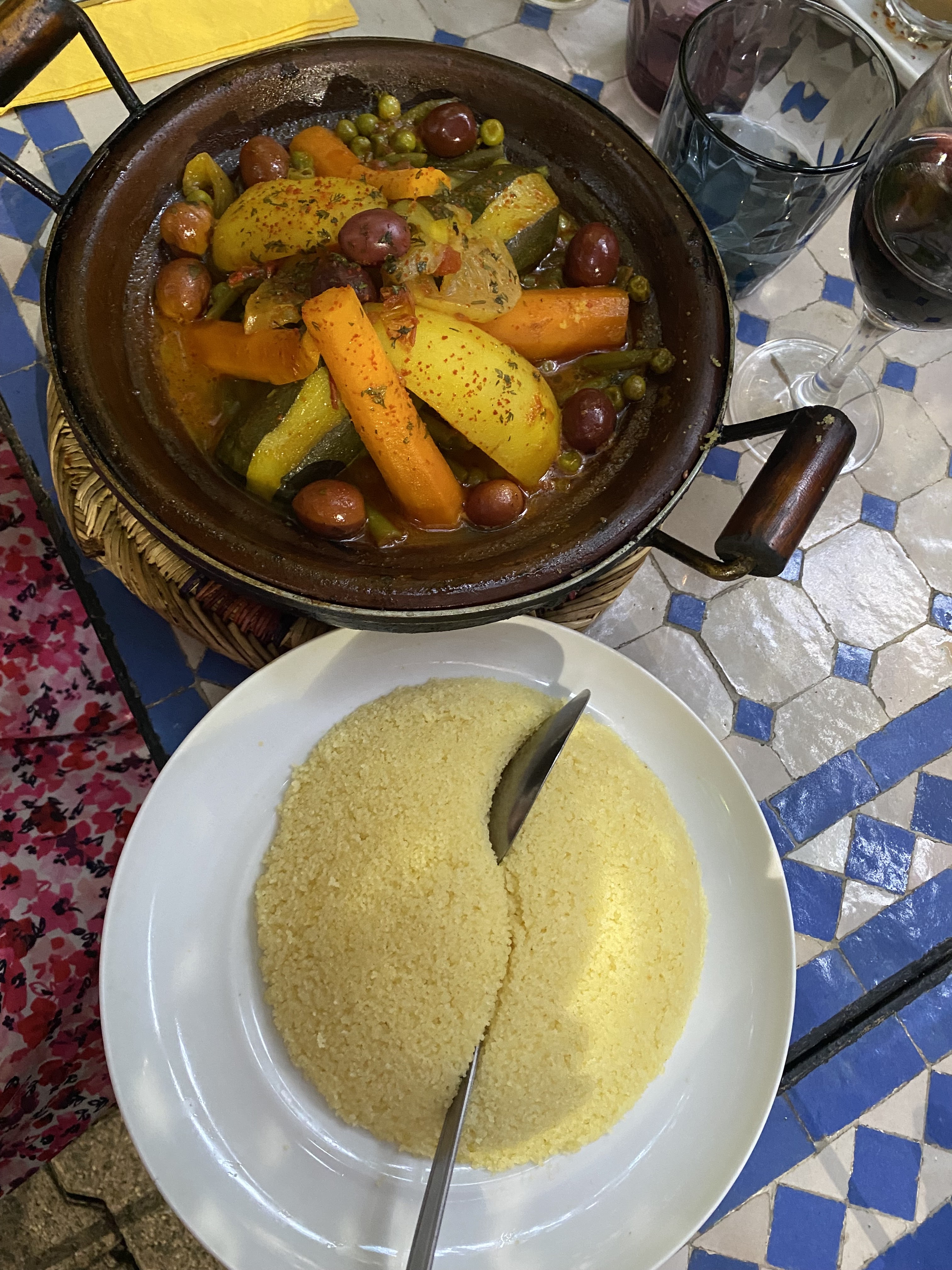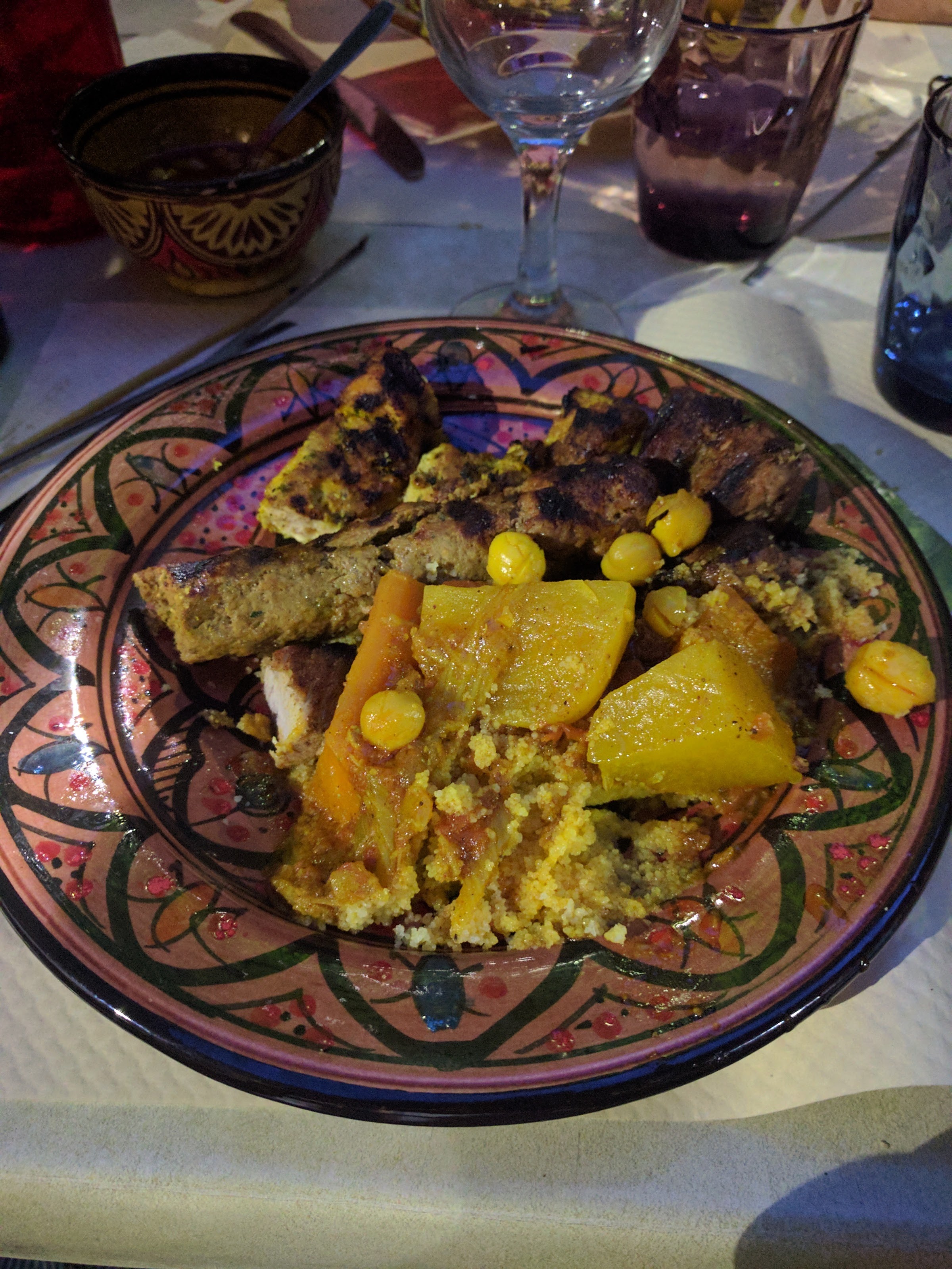 Accueil très sympathique par le patron, et alors le tajine d’agneau aux légumes était à tomber par terre, une merveille, très belle découverte ! Pensez à réserver, les plats sont préparés à la demande et il faut 50 mn pour un tajine..