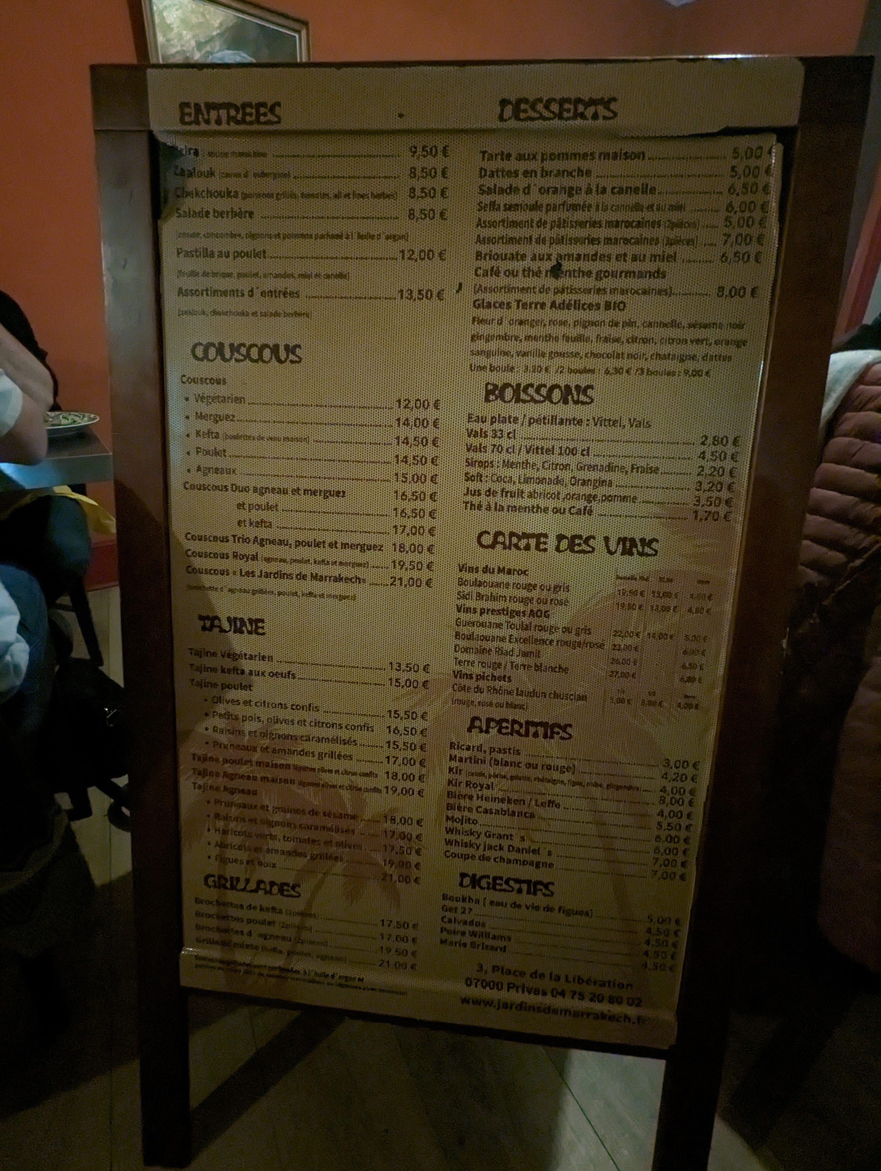 accueil chaleureux, cuisine exquise plats marocains élaborés avec de la viande ardéchoise, on passe une excellente soirée je recommande vivement cette adresse