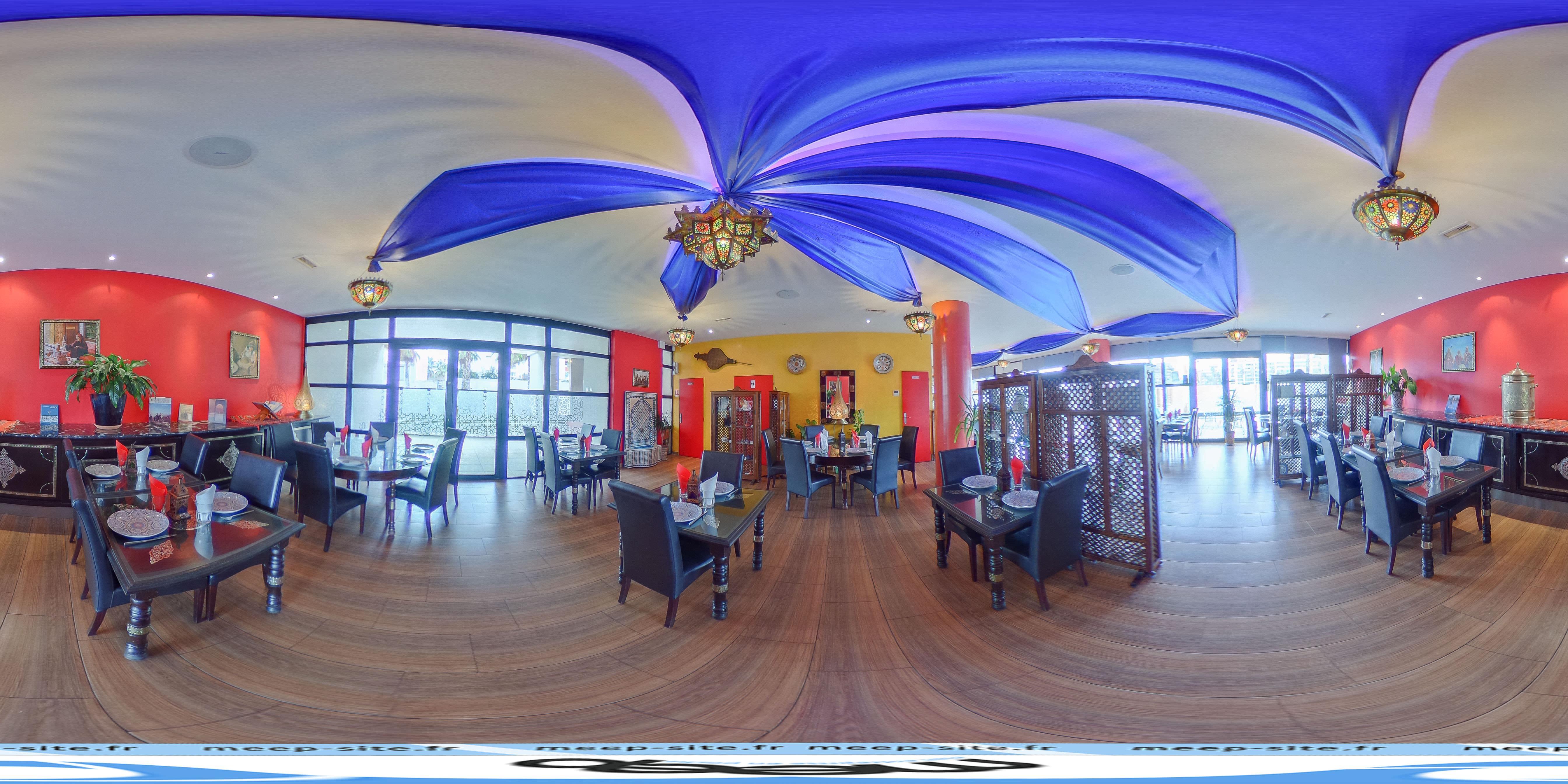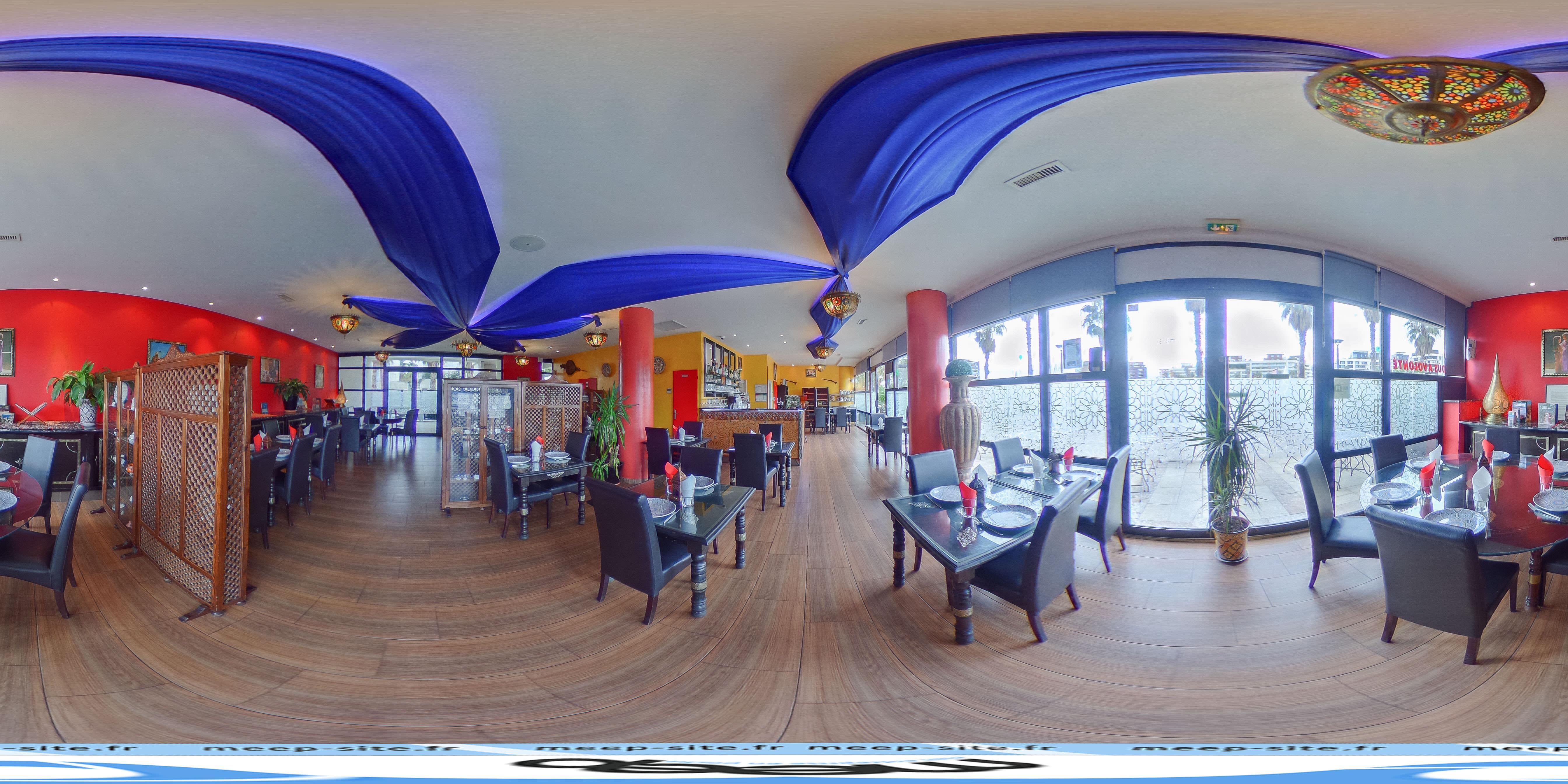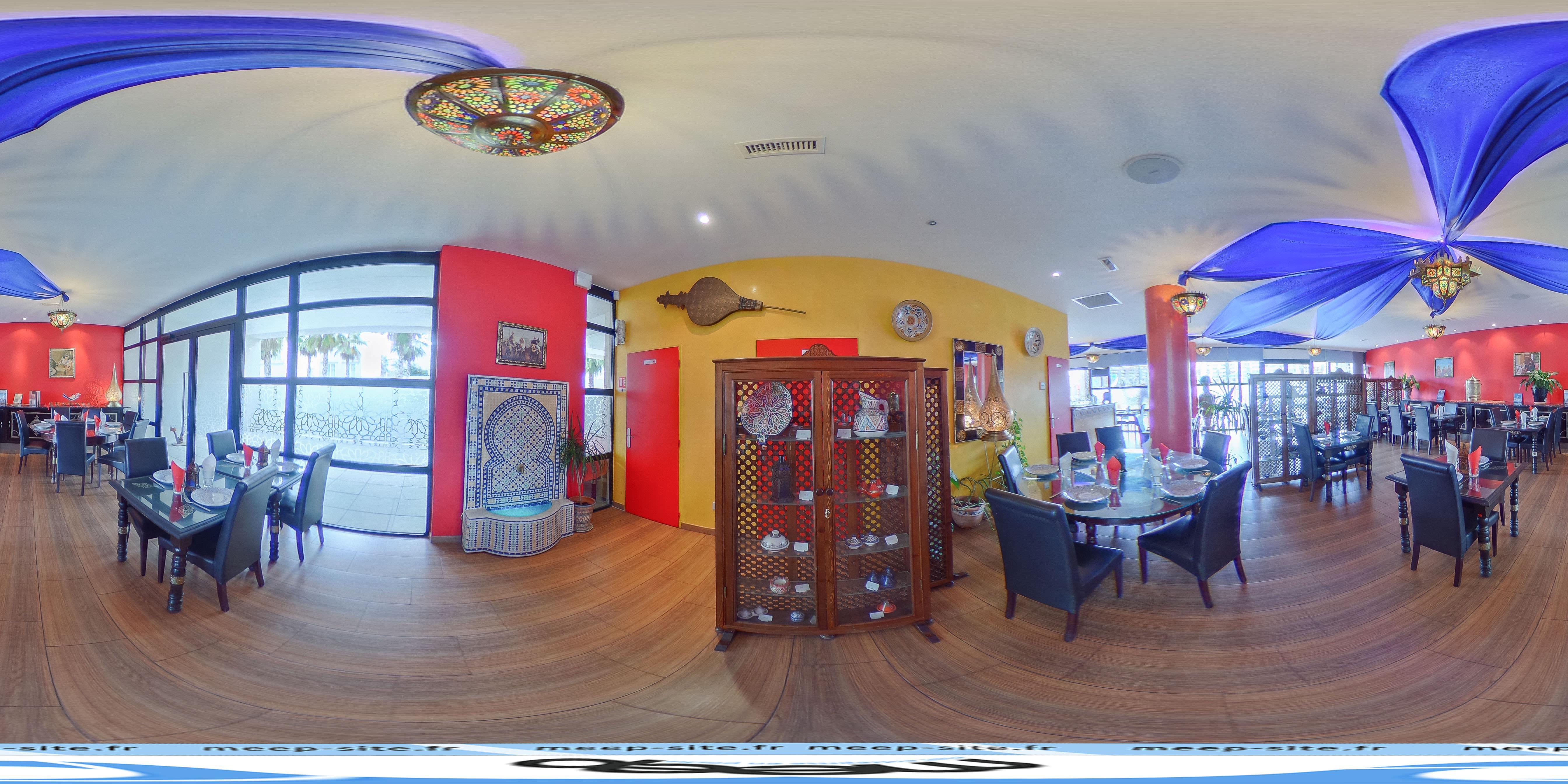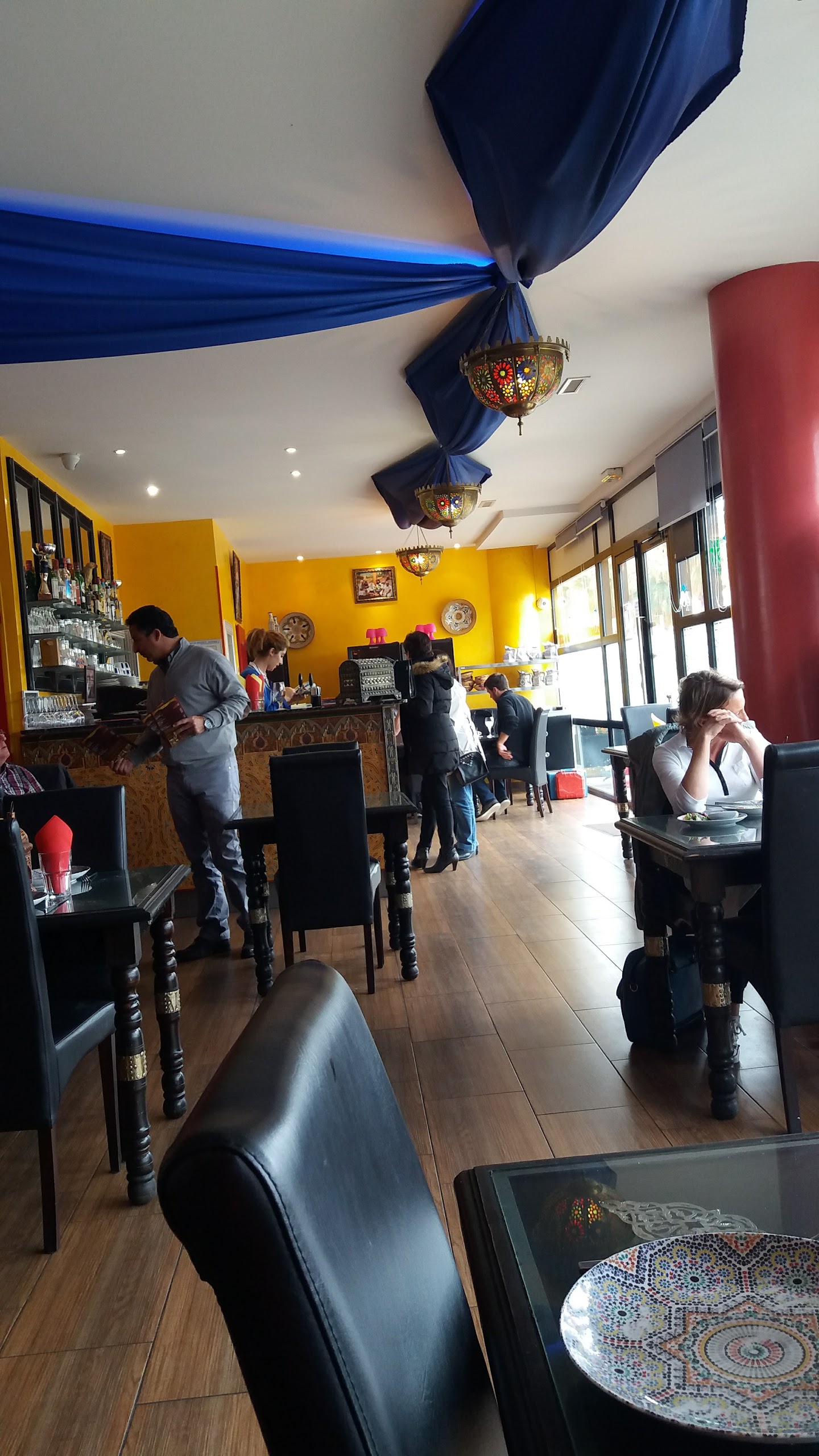 Jolie décoration sur le thème Marrakech surtout la terrasse très jolie,restaurant propre à l'intérieur, par contre service trop long ,repas pas vraiment copieux mais très bon ...