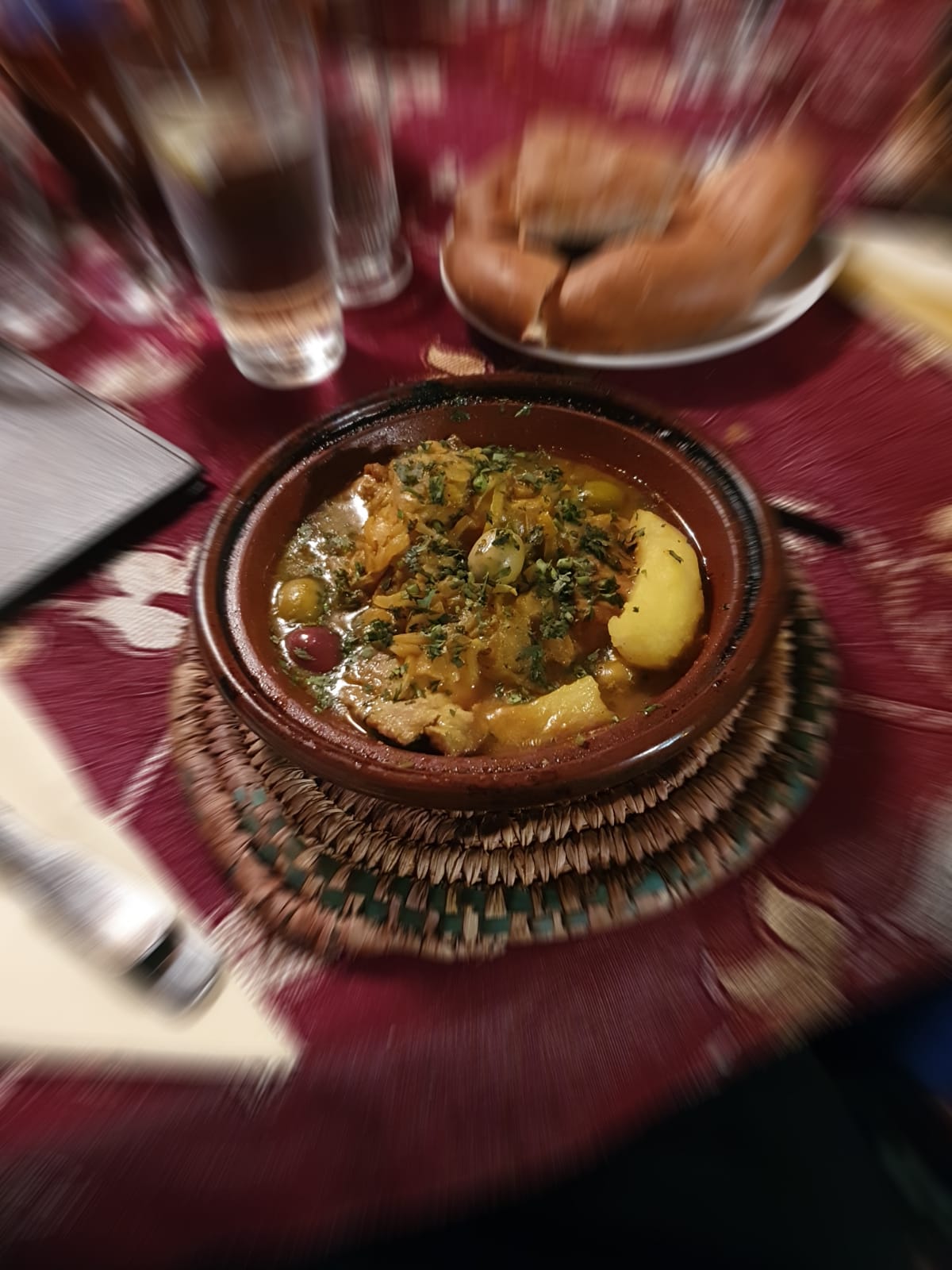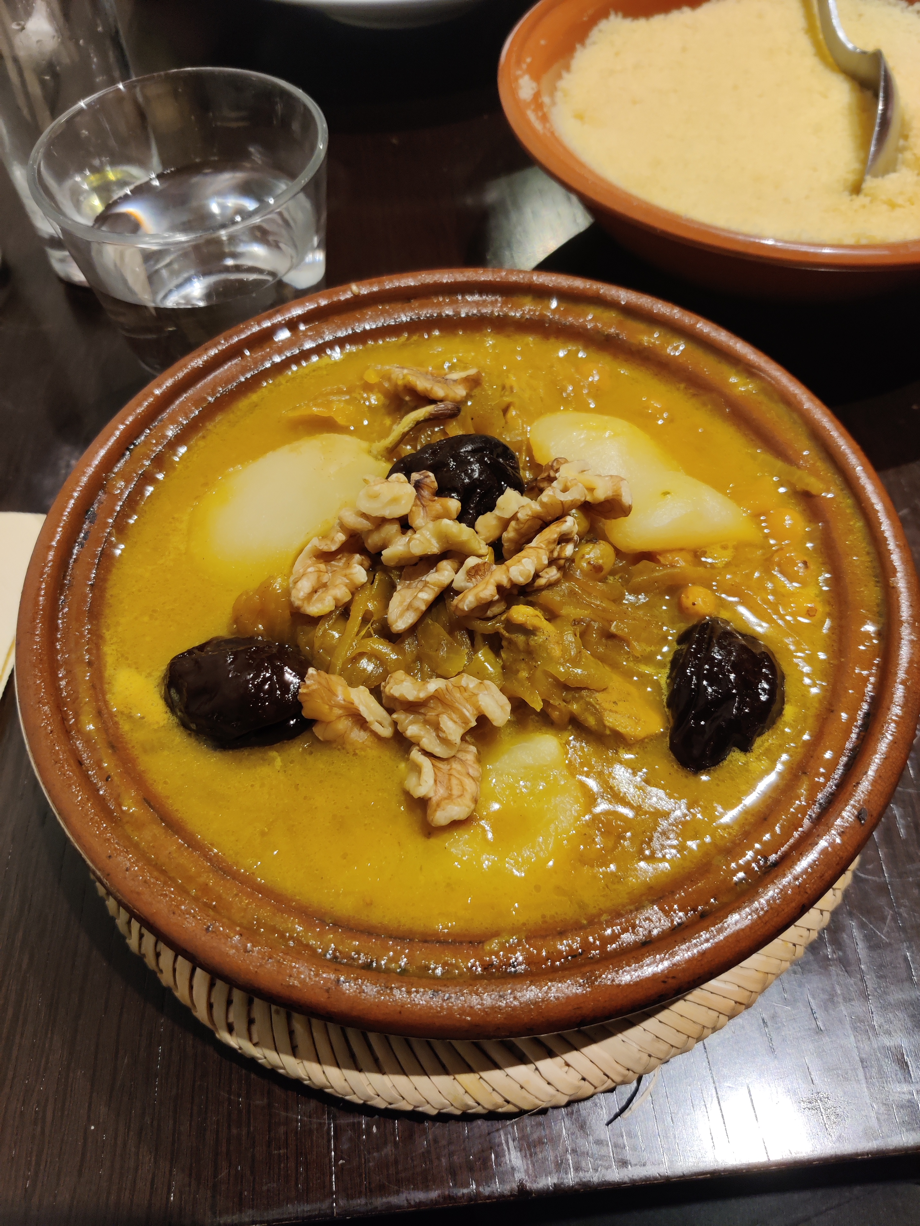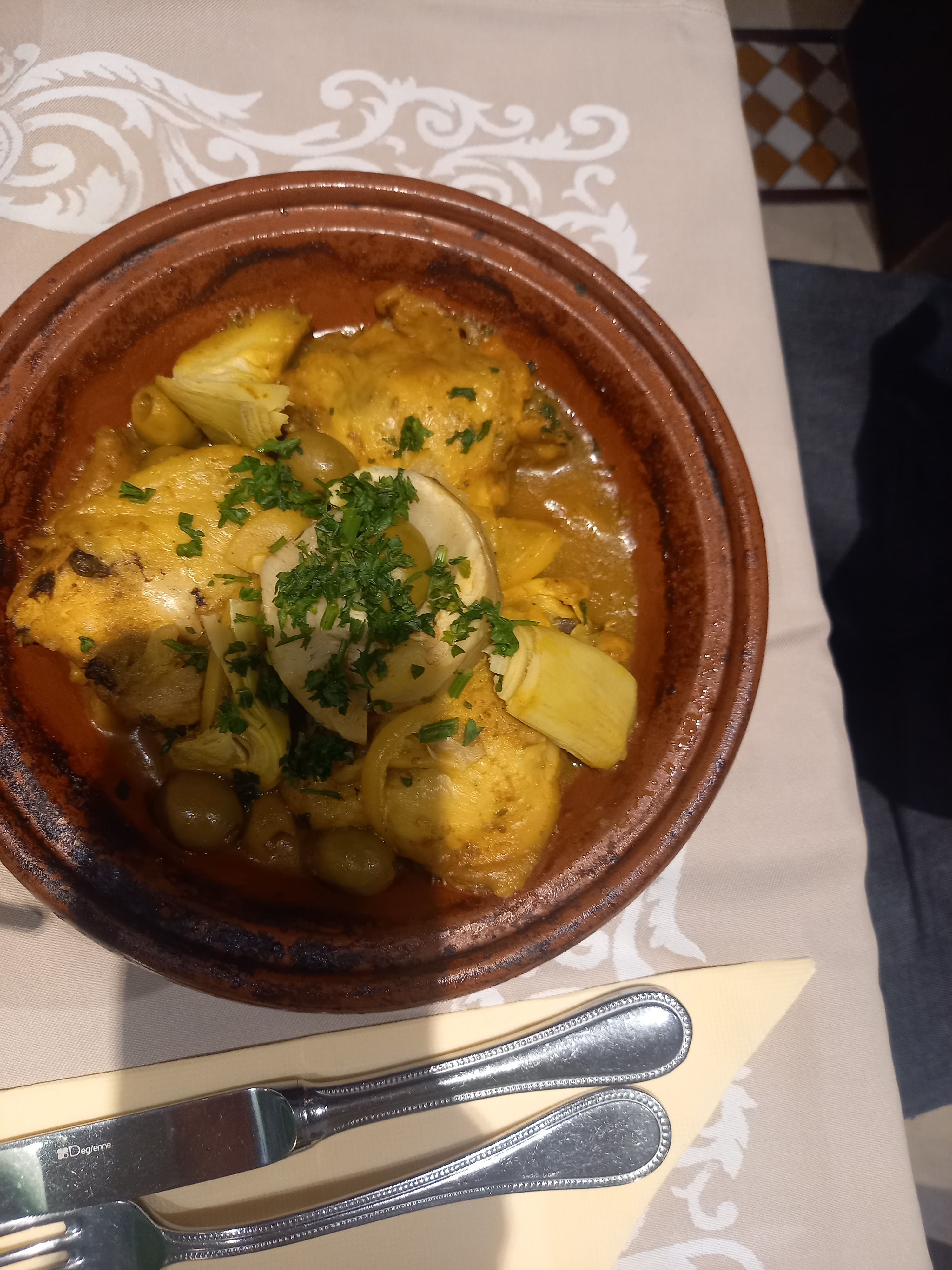 C’était pour une rupture de jeûne ramadan ! La soupe E Harira était pas mal, par cotre le tajine poulet 🐓 🍗 était un coup de gueule 😏 un tajine sans goût ! Le restaurant est très connu a Nantes ce jour était bien rempli en clientèle ! Le cadre était au top et le personnel est très agréable et accueillant