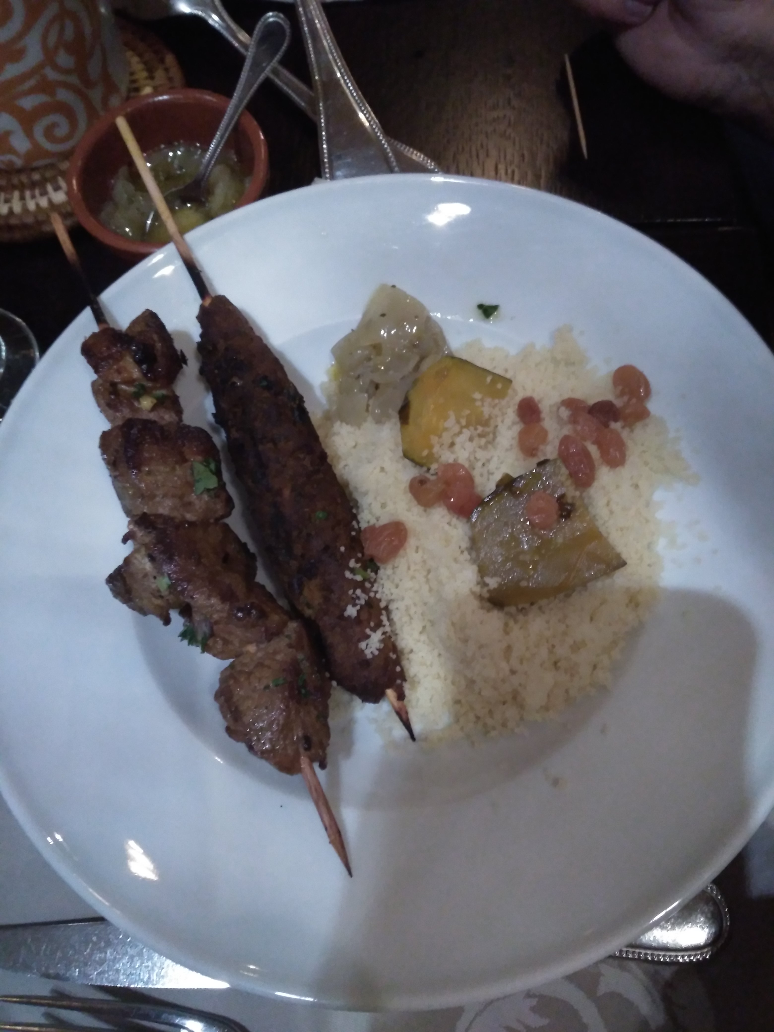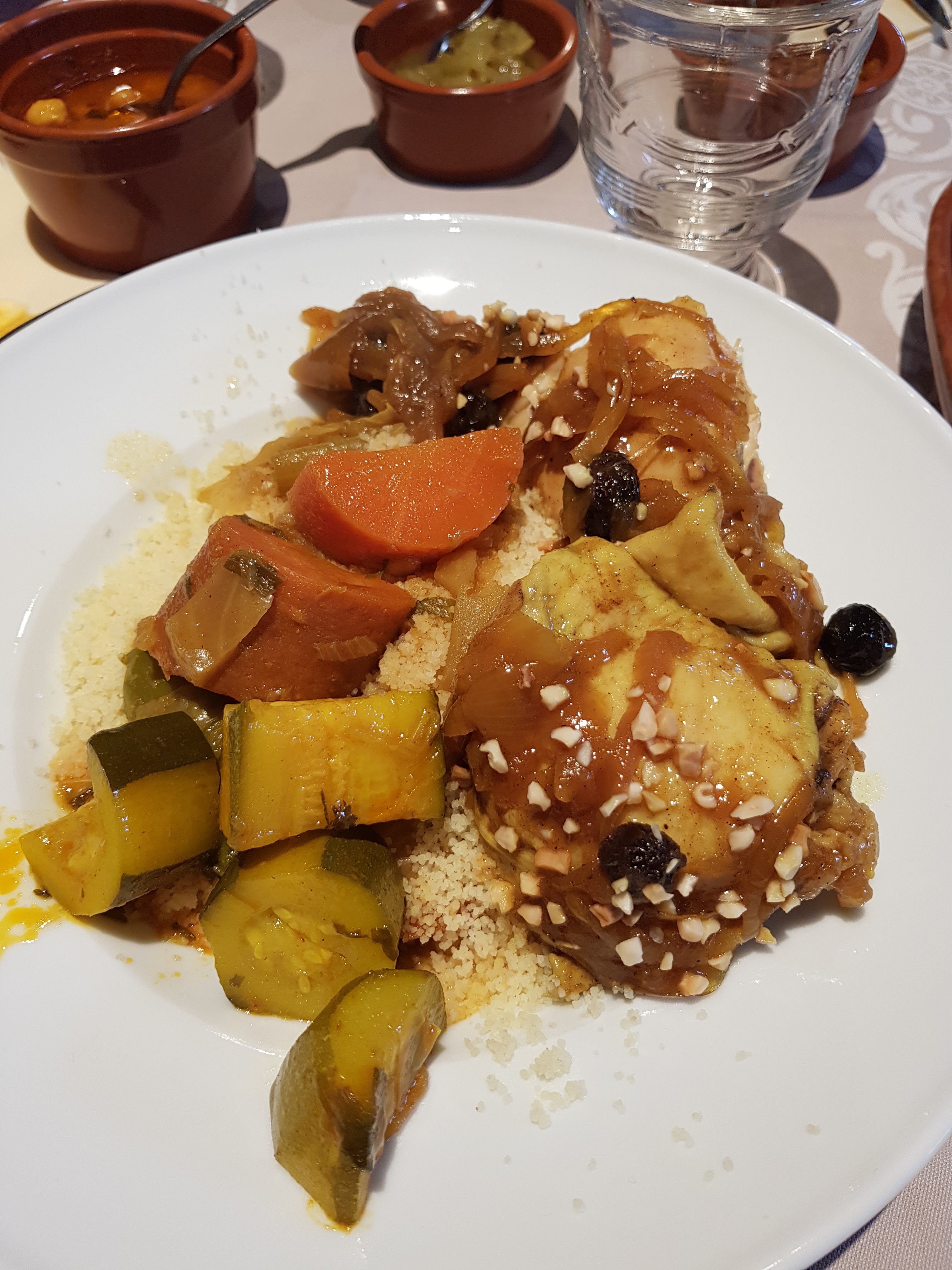 Couscous excellent, et à volonté ;)) Les tajines de mes amis et les desserts étaient excellents aussi selon eux. Seul hic sur les cocktails, trop peu d’alcool. Déco magnifique et service irréprochable, nous avons été très bien accueillis, table de 8.