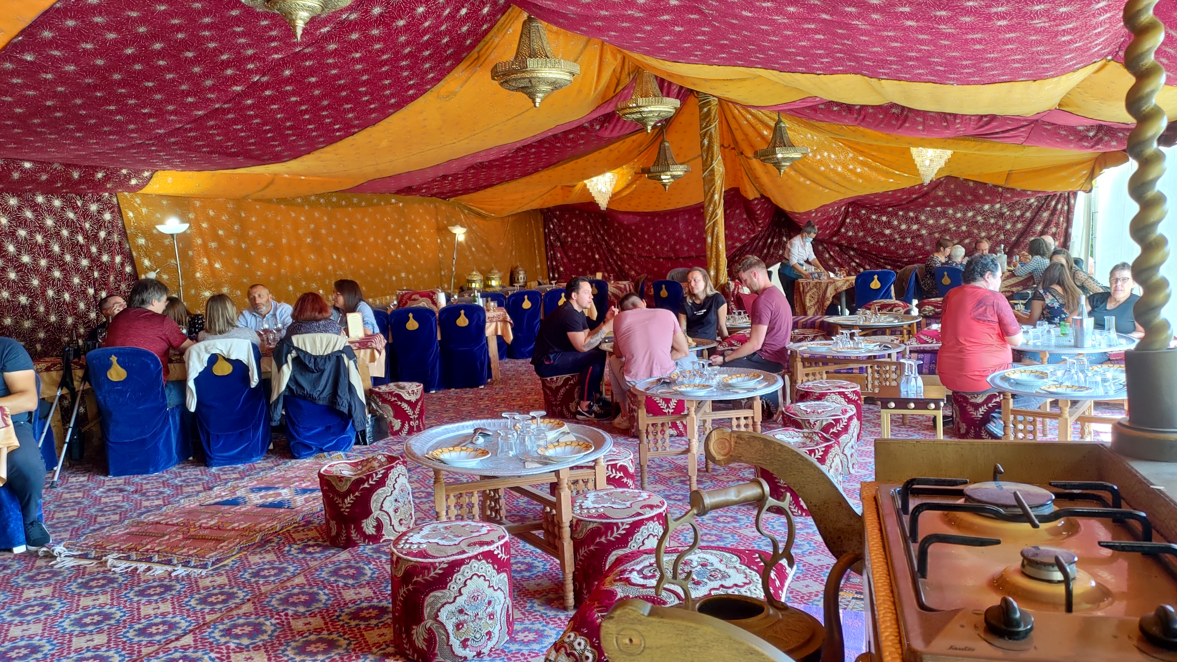 Lieu bien thé froid,viande froide et réchauffer couscous semoule bonne,mais le reste nul et très tiède médiocre je s'uppose que il nous on servi des reste les brochettes froide ainsi que le méchoui avec une sauce sans goût ,très abituer à mangé au restaurant mais la on a été servi surtout à ne pas conseiller nul. ,couscous semoule bien mais le reste laisse plus médiocre les légumes un plat et des carottes c'est tout et touriste tiède