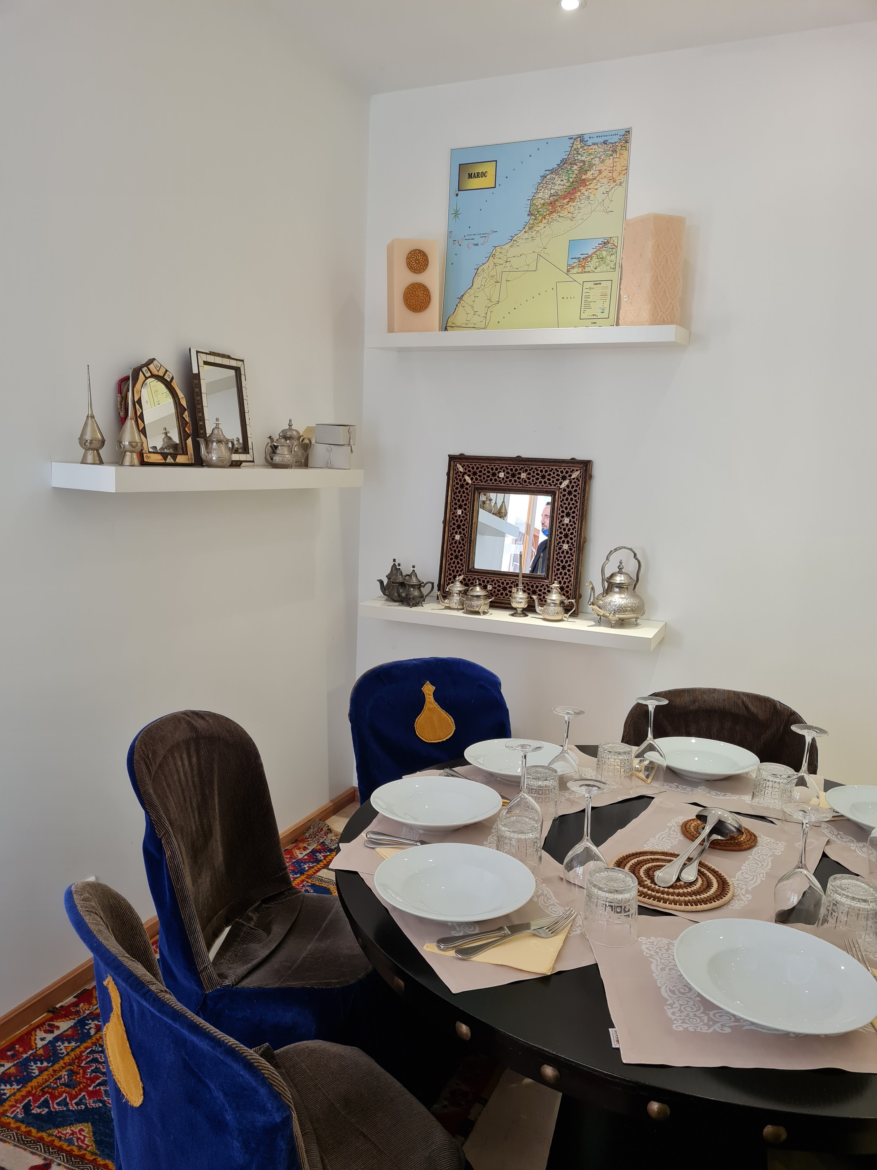Belle découverte faite hier soir. Nous étions trois, nous avons réservé tardivement pour une arrivée à 20:30. Le cadre est sympa, on se retrouve transporté le temps d'un repas au Maroc. Nous avons extrêmement apprécié nos couscous, c'était très bon et copieux. Rien a redire non plus sur le service, il était de qualité et avec de l'écoute. Bravo à toute l'équipe. A recommander et à recommencer dès que possible !