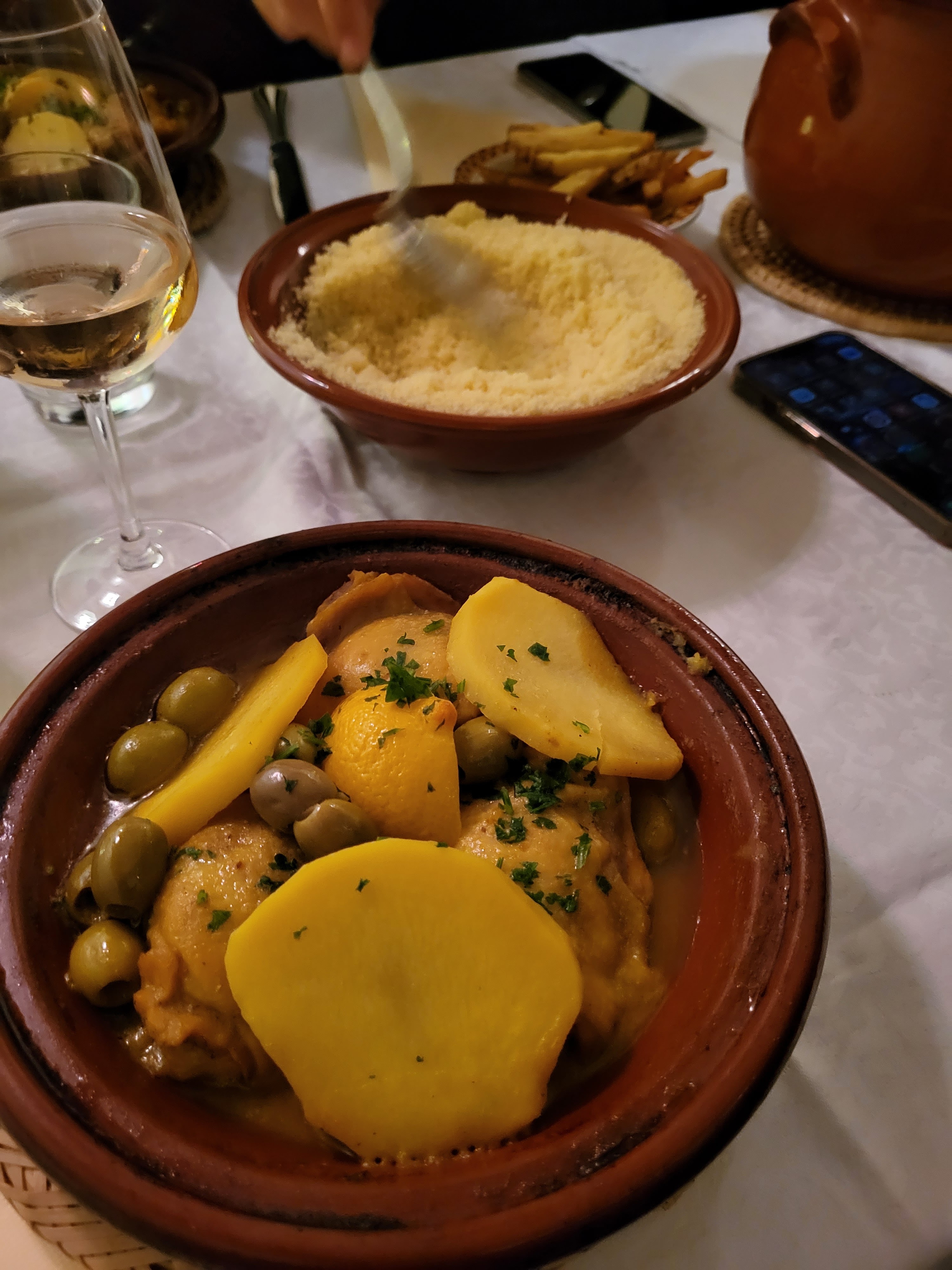 Dans un Riad comme au Maroc. Très bon couscous et tagine