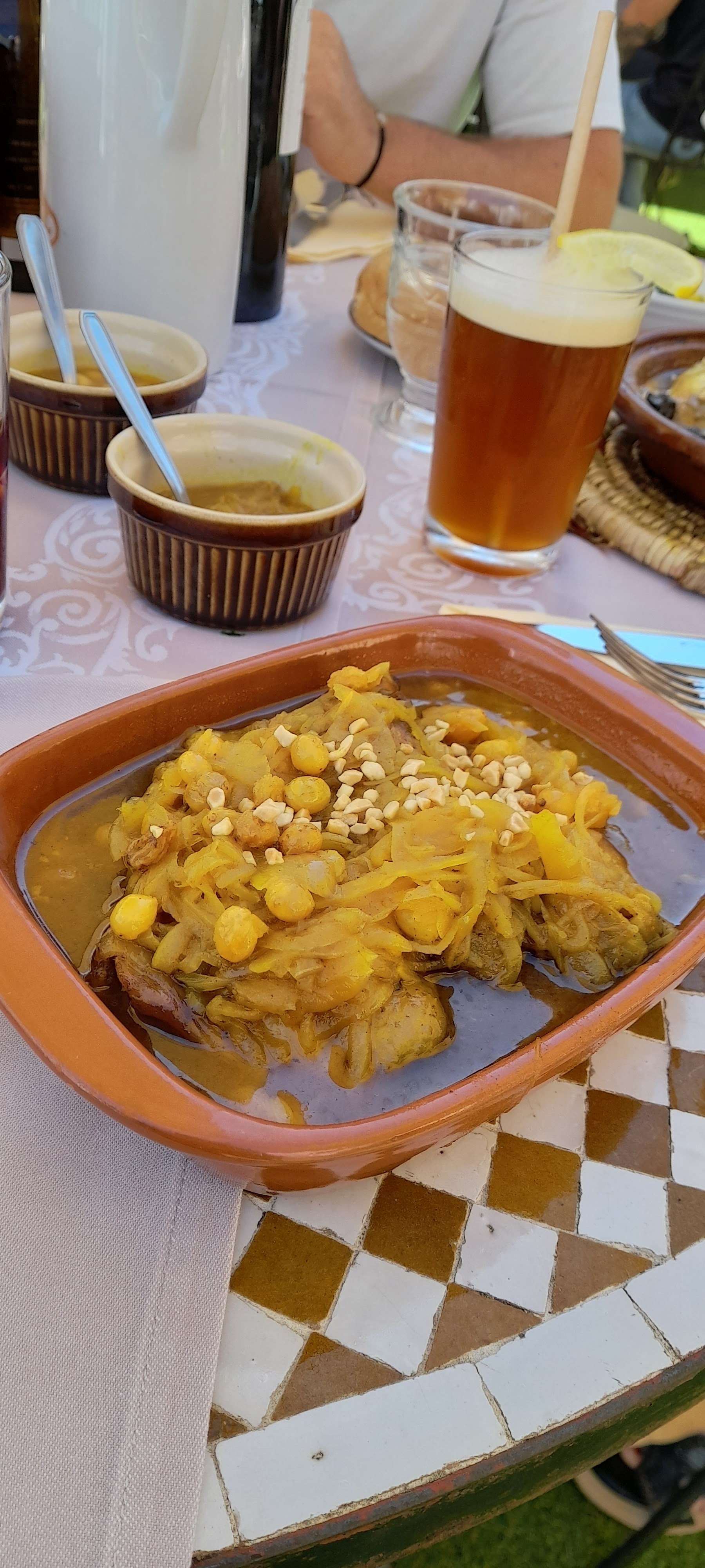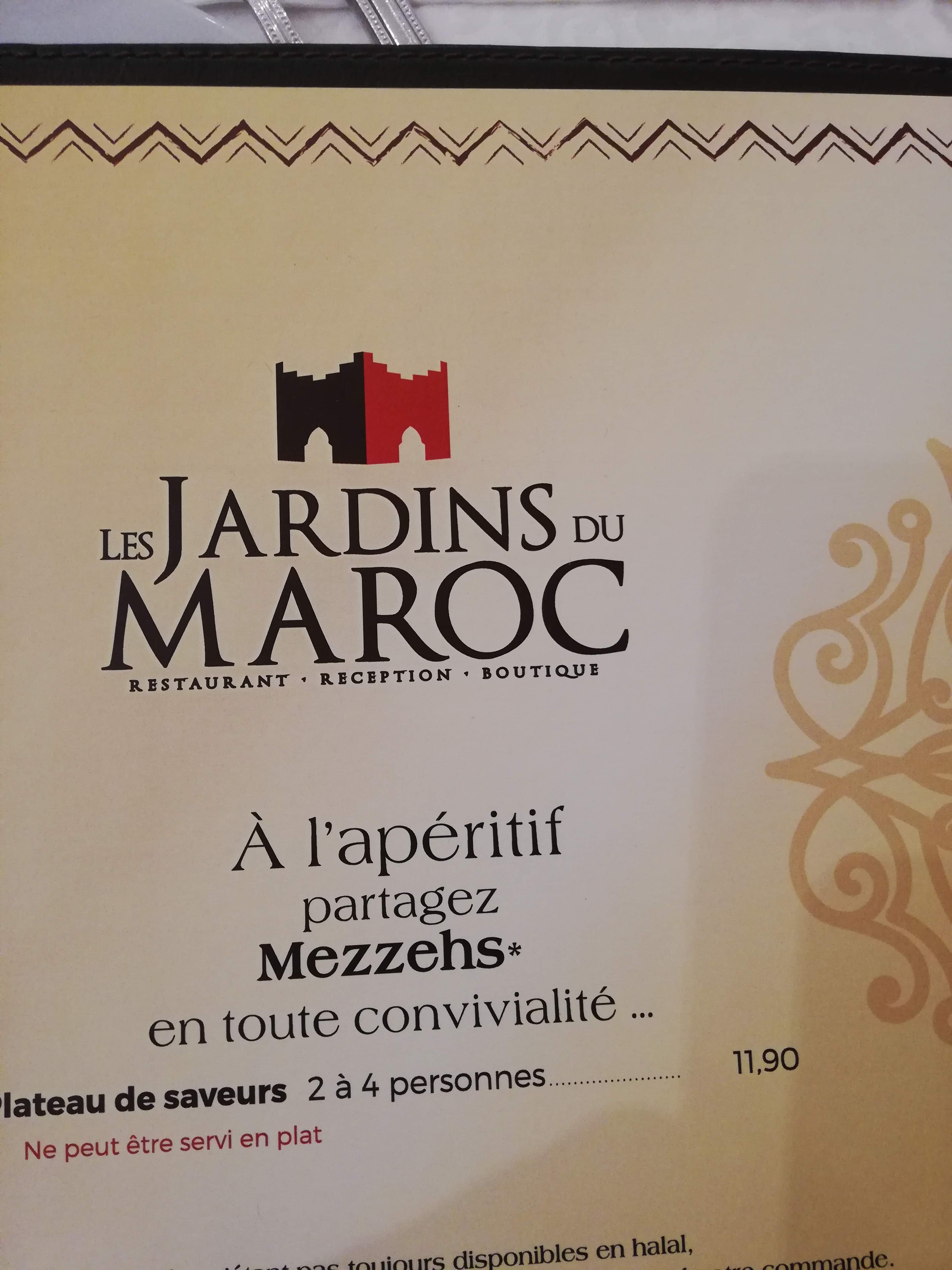 Bonjour... Après un séjours de week-end de l'ascension... J'ai décidé mangé au restaurant Les Jardins du Maroc... La décoration est magnifique. Vraiment typique marocain. Je suis marocain d'origine... J'ai commandé un Tajine de Légumes...donc il avais aucun goût... les légumes cuit à l'eau aucun goût épicés. Le coucous pas de goût... la semoule pas assez cuit. Sauces aucun goût ! Le thé à la menthe... j'ai pris ... il avais pas de menthe. C'est de l'eau... sucré en sachet aromatisé. Très déçu... La cuisine n'est pas du tt marocaine. Très cher pour la prestation... ! Ac un accueille... très froid du personnel. Je recommande pas ...