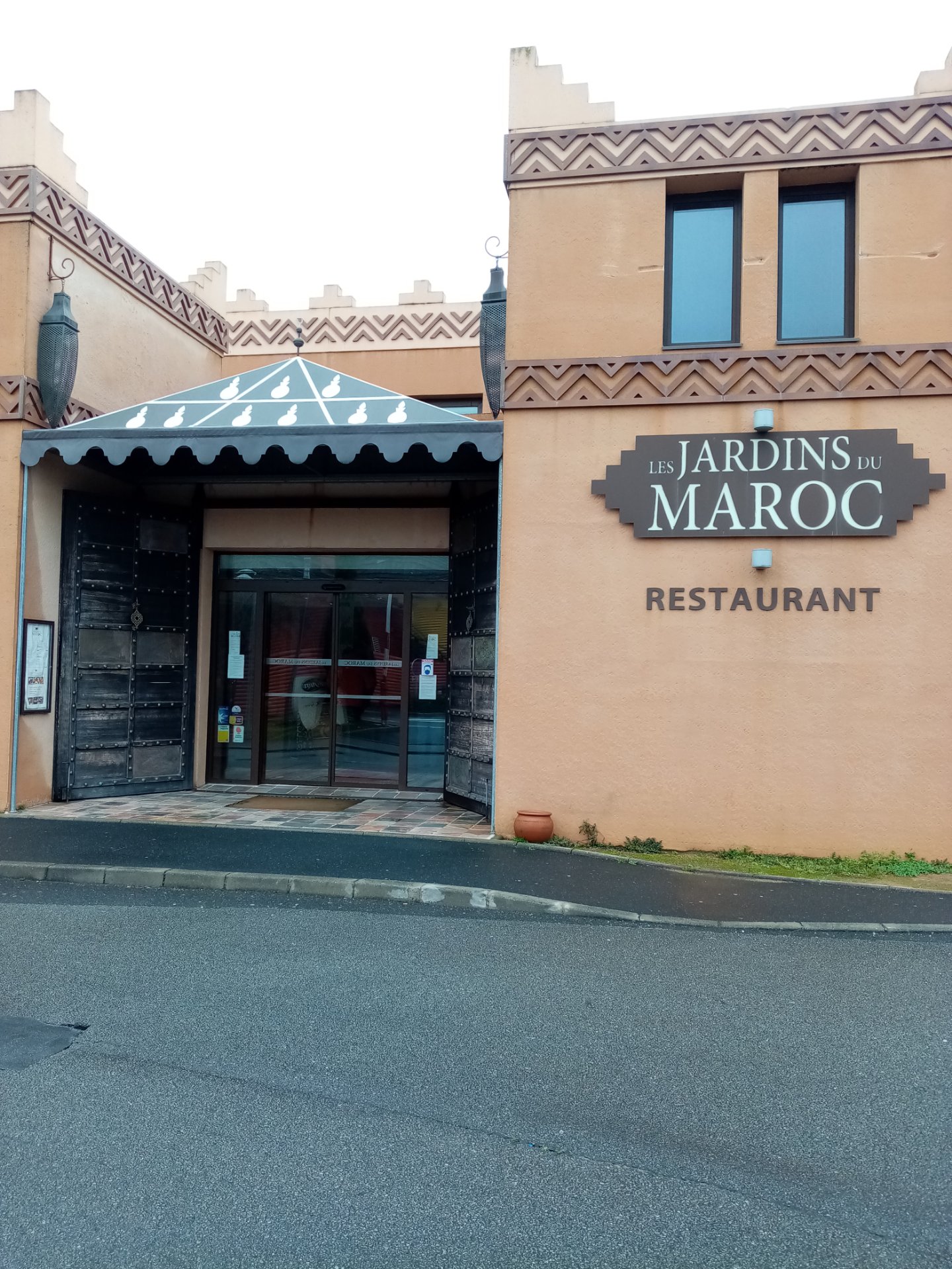 En visite à st Sébastien sur loire, la lecture des avis pour un resto exotique m'a orienté vers les jardins du maroc. Façade austère mais...surprise une fois à l'intérieur, salle spacieuse à déco orientale, pris en charge dés l'entrée. On commande des tajines dont un tajine de tarudent??? (On va à la découverte). On a un plat chacun (moi et mon épouse) accompagné d'une assiette de semoule (pour les deux)tassée. Première impression, le plat est réchauffé avec des pruneaux complètement ramollis. Je goutte la viande, c'est du boeuf (certainement oublié au fond du congélo.)et de l'agneau d'assez bon goût. Dernière impression que je n'ai pas encore digérée c'est la note à 48 €/2 plats alors que la plaquette du resto mentionnée des prix n'excédant pas les 10€/plat. Je ne recommanderais pour ce qu'on à mangé sauf, pour découvrir la déco ou les autres plats. A signaler l'existence d'un parking