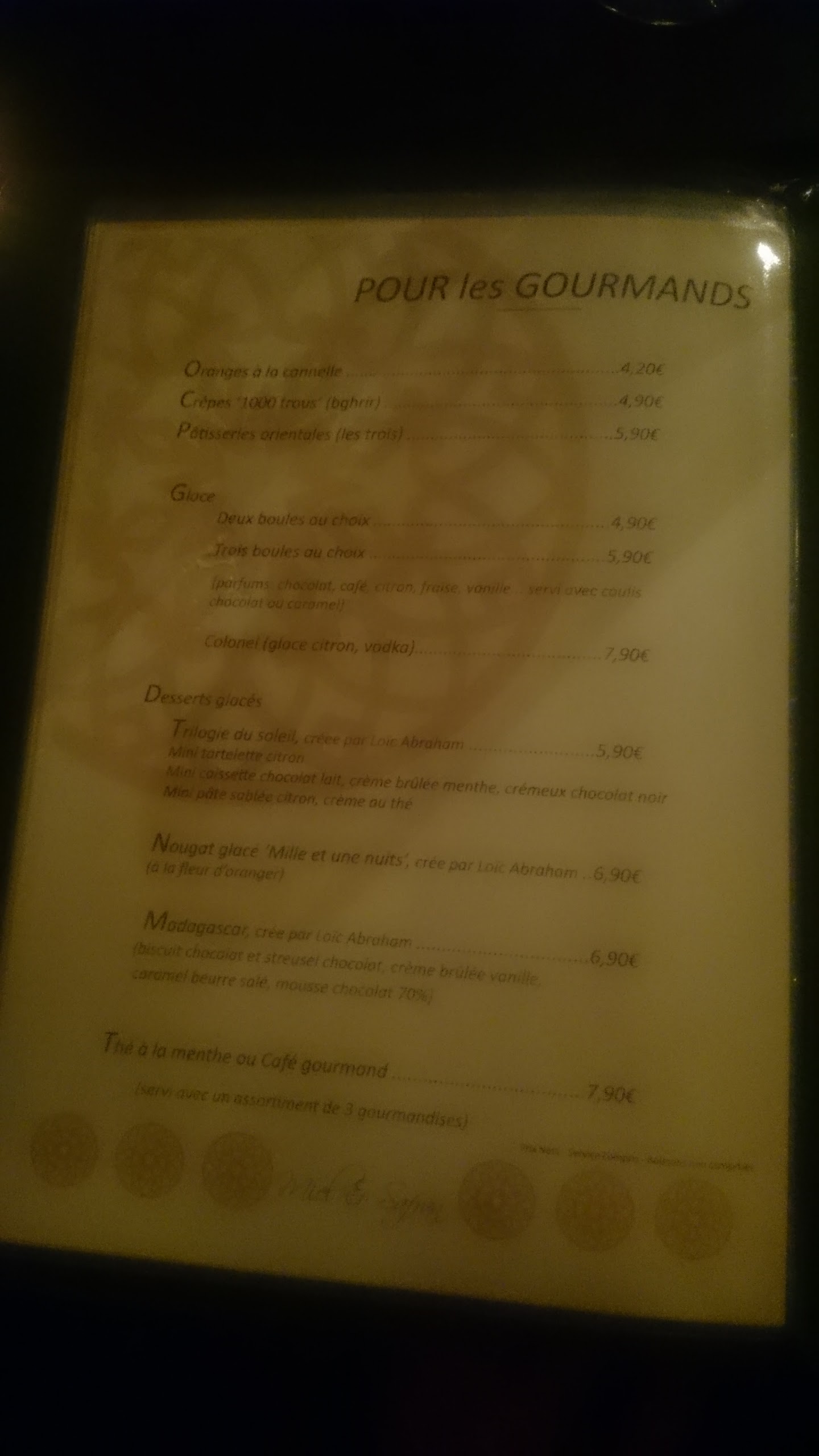 Pour une première grosse déception. Très joli cadre pour ce resto avec des bougies et lumières partout. Le personnel a été très accueillant. Toutefois, gros bémol sur le repas. Couscous avec 2 morceaux de courgettes, 2 morceaux de carottes et 2 morceaux de navets dans un bol ( c’est limite ). Les tarifs sont abusifs + de 100 Euros pour un couple, j'aurai du le manger celui de ma femme chez moi il était aussi bon. Payer 13€ pour une assiette de 3 mini pâtisseries ... On aura testé …