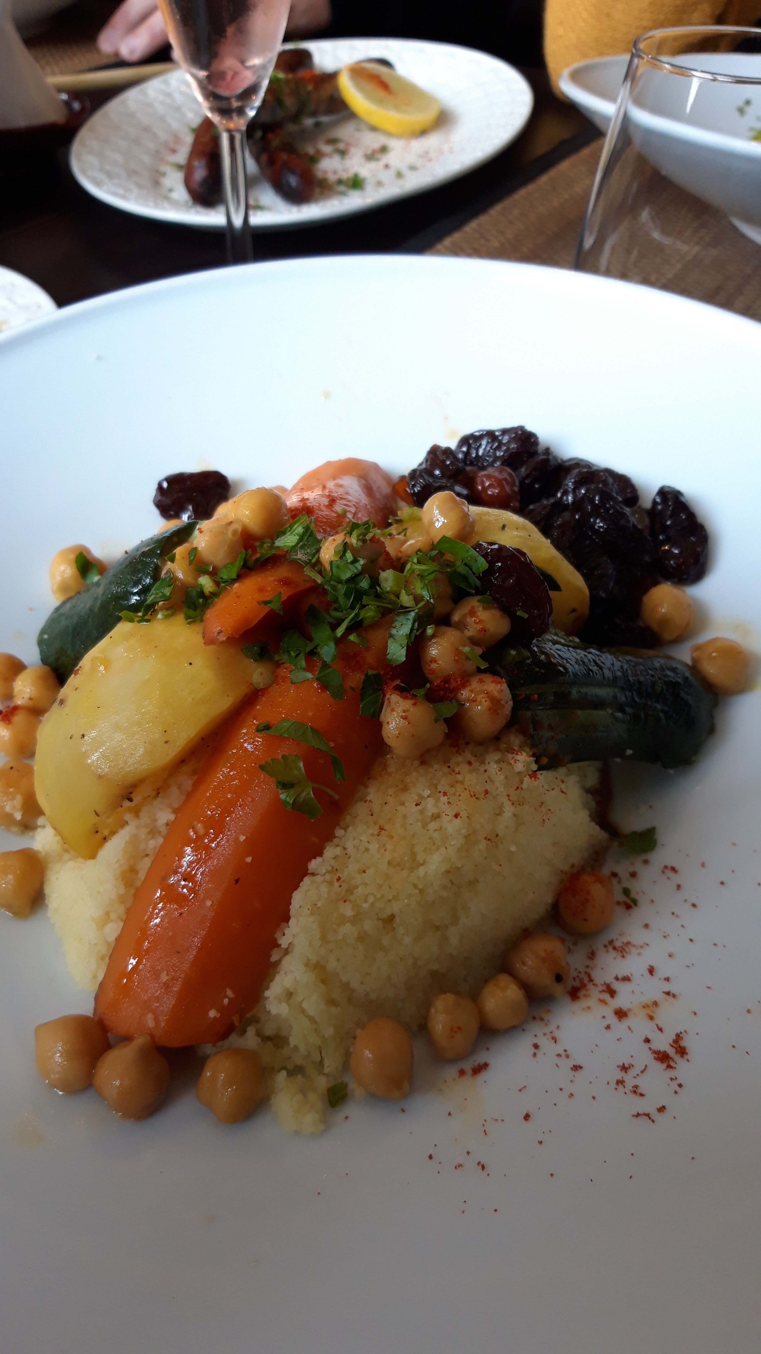 Décevant ! Au vu des commentaires je m'attendais à un vrai couscous de qualité, malheureusement les légumes n'étaient pas cuits et le reste était sans plus ! Pour le prix le sésame est bien plus raffiné ! De plus le restaurant est vraiment trop climatisé ce qui est désagréable en soirée... service sympa mais ça ne rattrape pas les carottes crues !