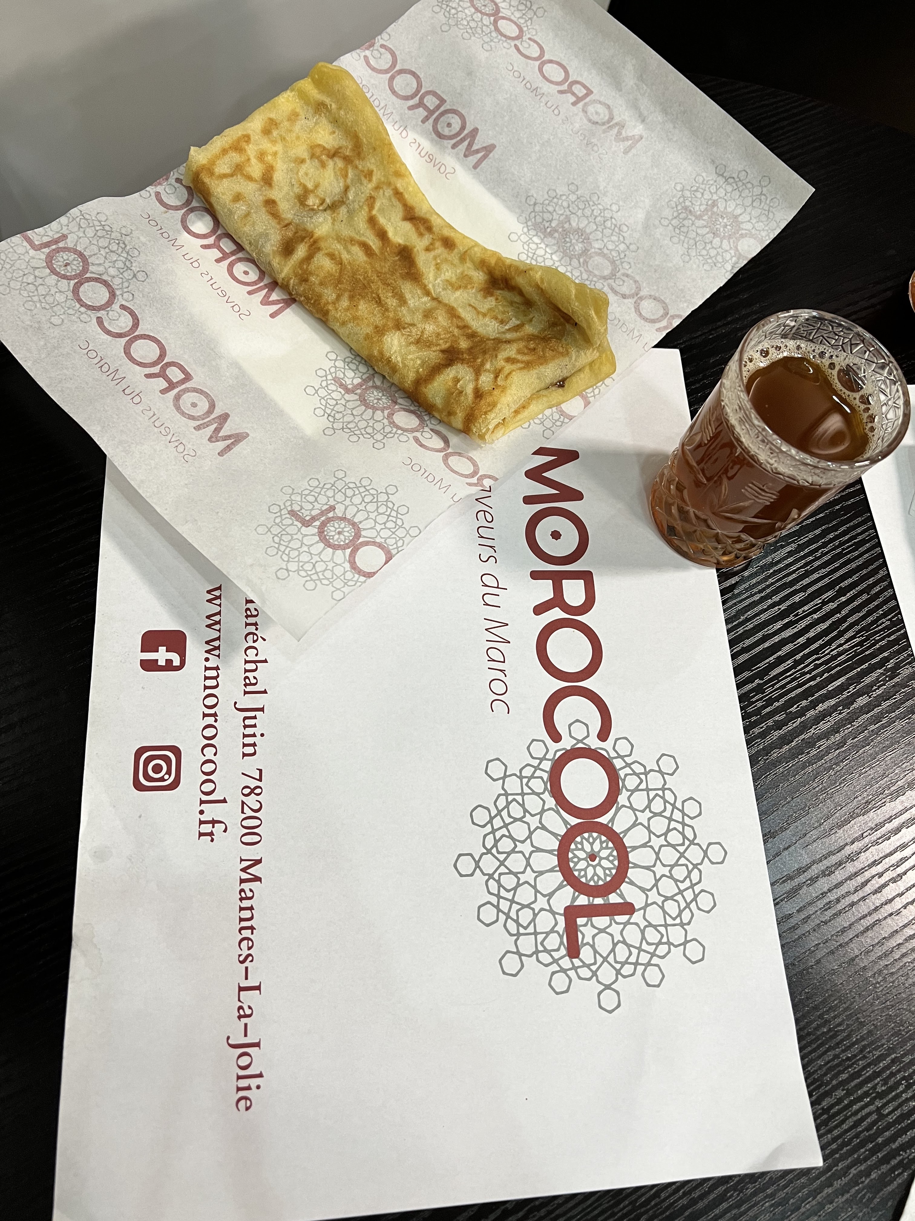 Très bel accueil et très chaleureux! Un petit bout de Maroc en plein centre ville de Mantes, tout est fait maison!! Vraiment copieux et goûteux! Un petit thé offert pour patienter notre commande. Très appréciable.