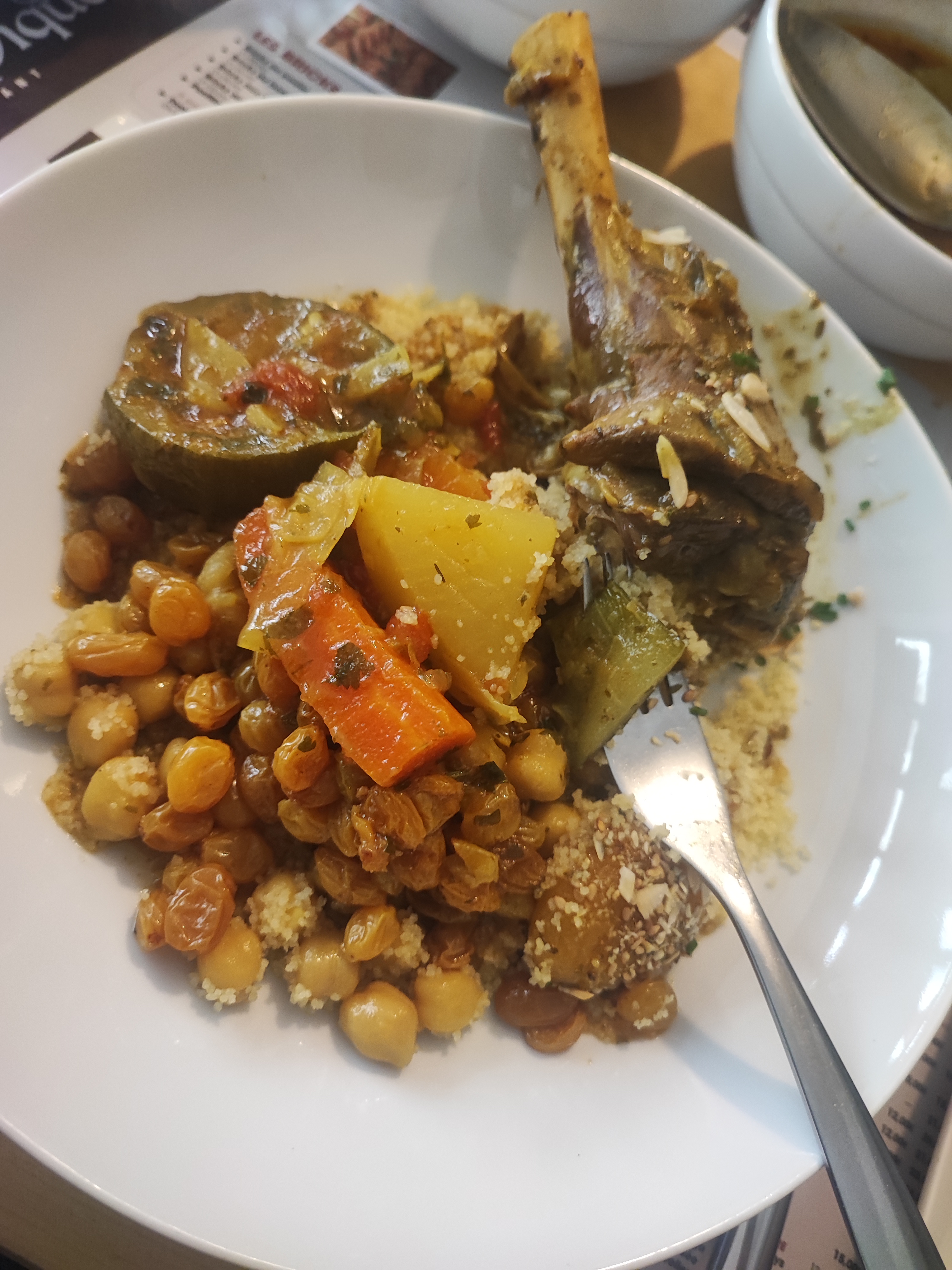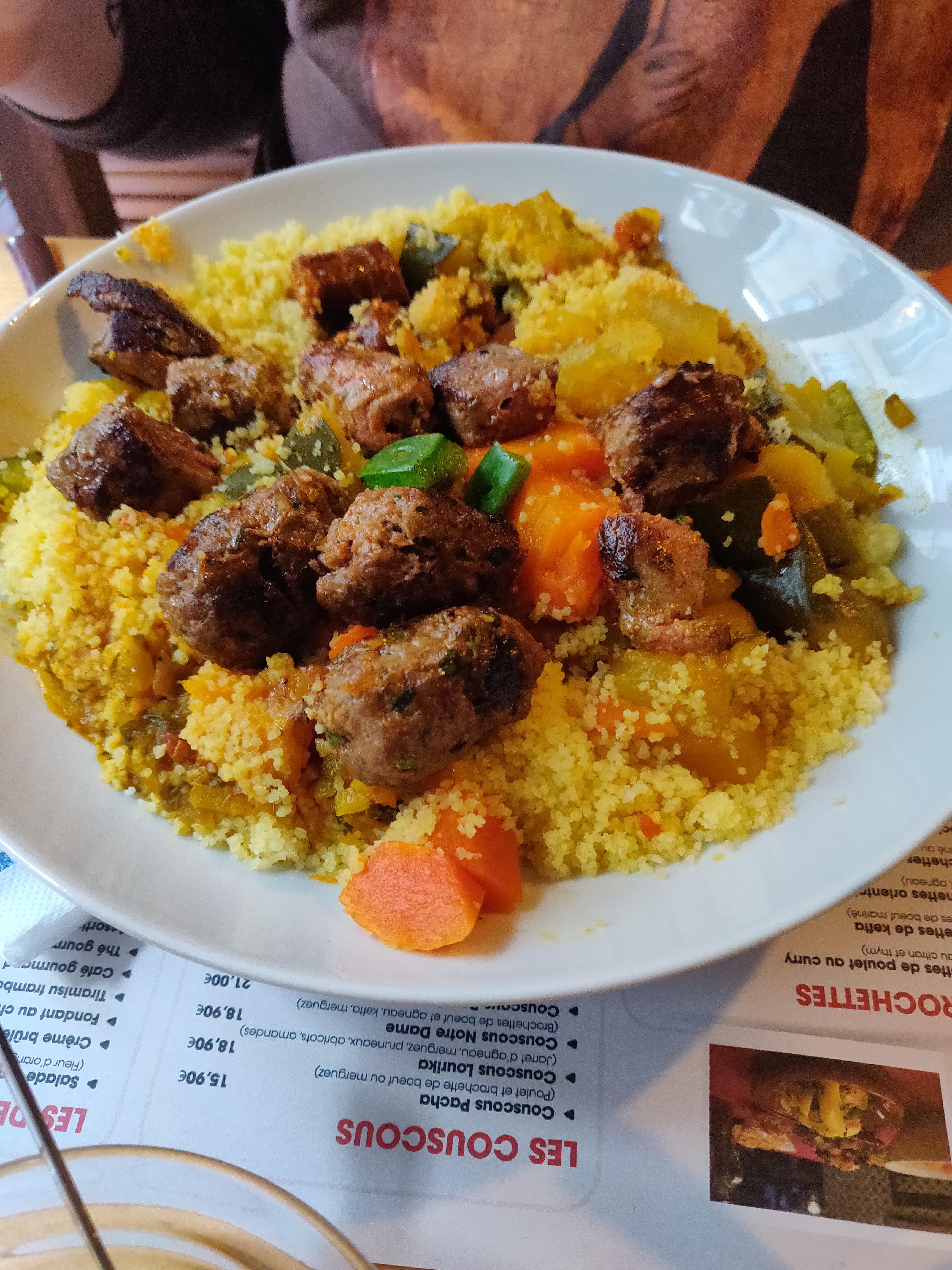 Très bon couscous, je me suis régalée. Restaurant agréable, l’ambiance est bonne et la nourriture plus que délicieuse !