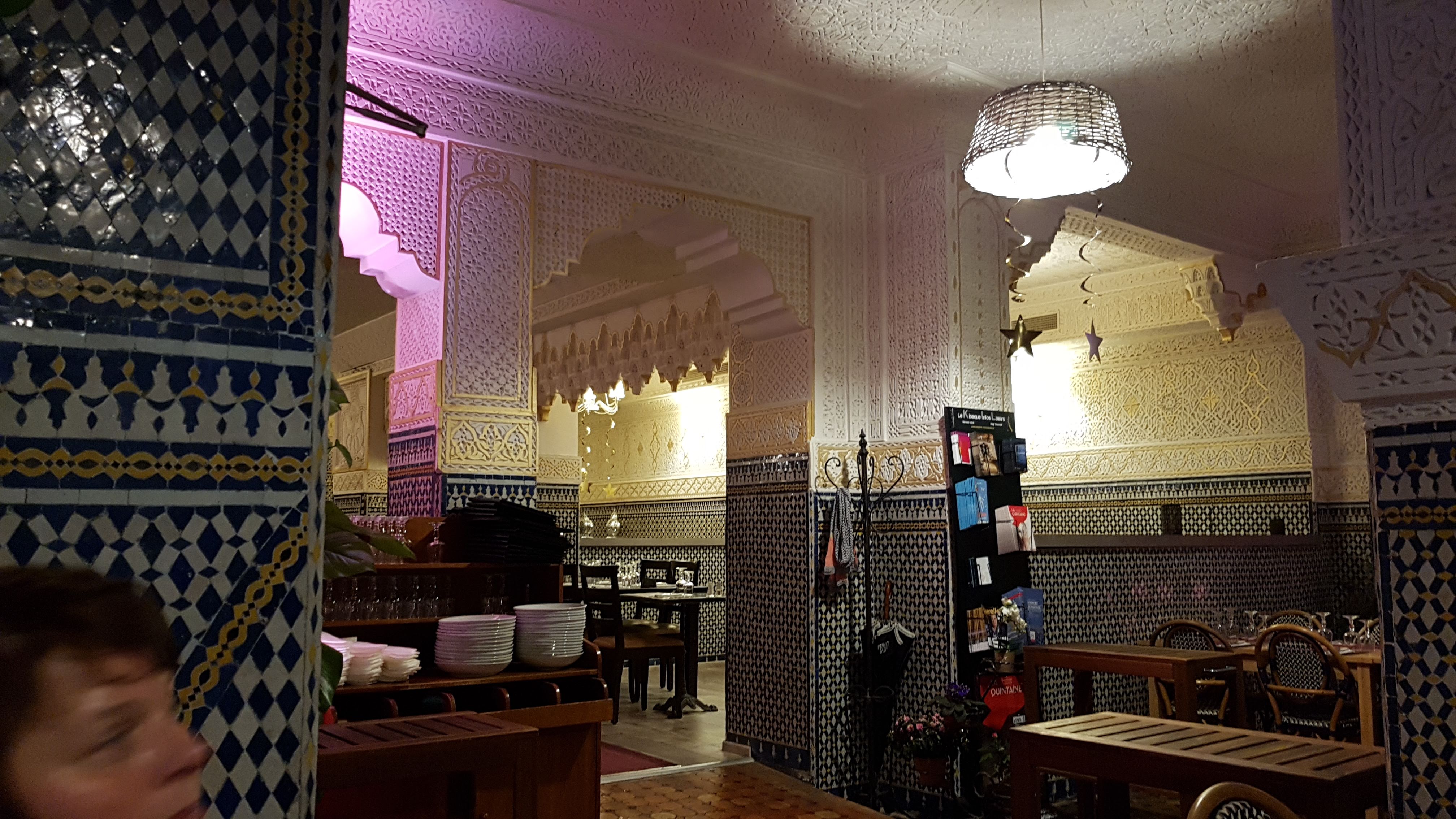 Bel endroit. Décoration typiquement marocaine. Un beau dépaysement. Carte variée avec spécialités marocaines. Étant végétarienne le chef m'a proposé un couscous. Dommage, je voulais un tajine mais ne font pas la version végé. Un peu déçu par la présentation (servit dans des plats différents). Question gustatif rien d'extraordinaire... Mon ami a pris un tajine poulet citrons confits. Il était enchanté et l'a trouvé très bon. Peu de légumes beaucoup de viandes. Les desserts: rien de vraiment traditionnel. Le pain n'est pas typique, on nous sert de la baguette. Connaissant bien le Maroc, j'ai été déçue. C'est un endroit qui convient aux personnes qui aiment les plats francisés.