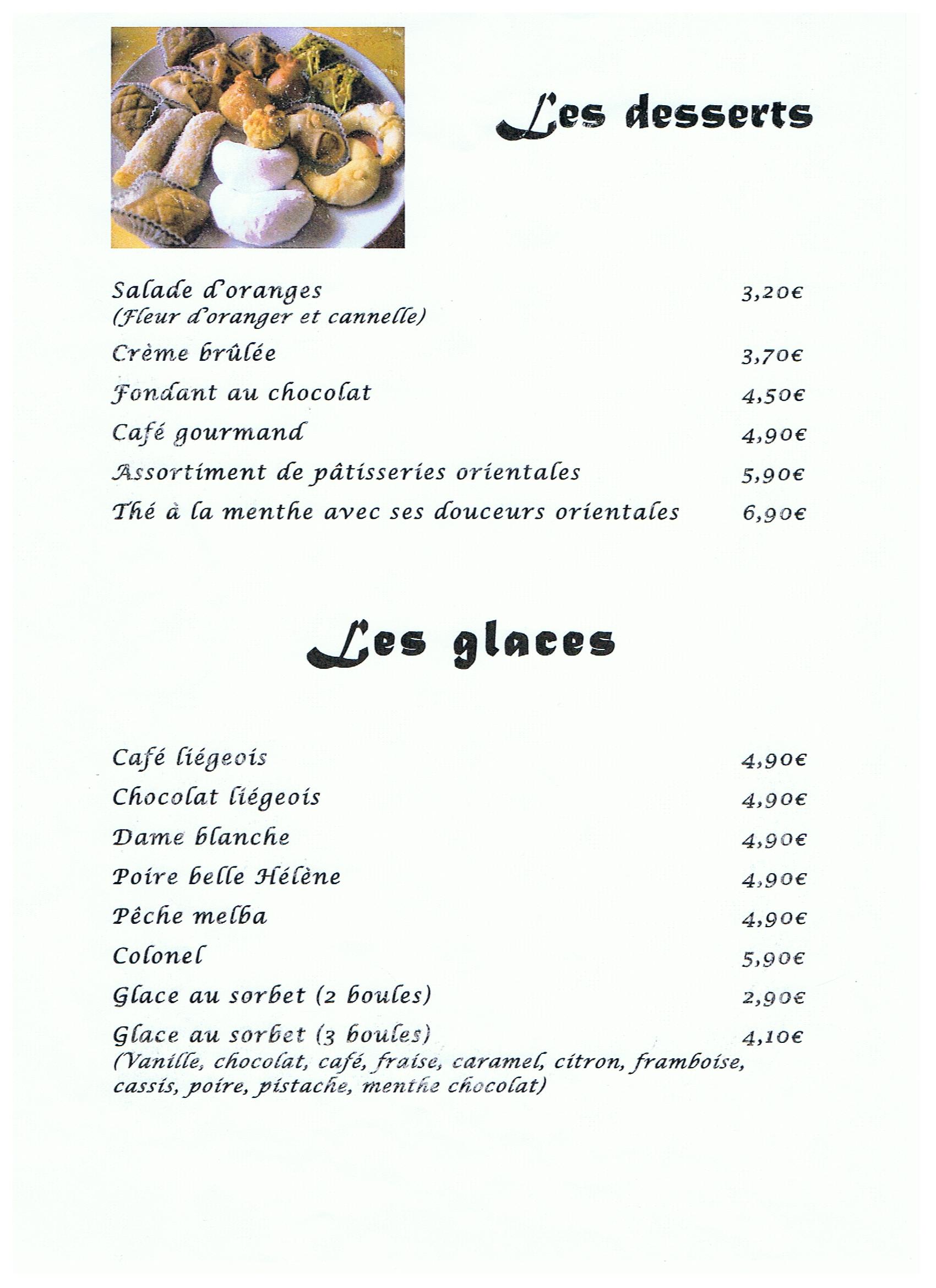 Drôle de commentaire rempli d'ineptie, je ne vois pas en quoi reprendre une viande parce que la cuisson n'est pas à votre gout est une grave erreur, la recette de nos bricks n'a jamais changé depuis notre ouverture, et à mon tour de vous dire que j'ai l’impression que vous ne connaissez pas grand-chose à la cuisine orientale et voilà que vous nous faite passait pour des voleurs alors que c'est vous qui n'avez rien compris, vous a bien été servi une demi-bouteille de boualouane rouge (contenance donc de 37,5 cl) a 8 euros; le pichet de rouge de vin de pays à 50 cl est à 7,40 euros . le verre de vin de pays a 2 euros . enfin incompréhensible . Les avis de la grande majorité de nos clients disent le contraire : plats savoureux, tarif normal ... Modifier | Retour | Copier | X Nouveau Texte