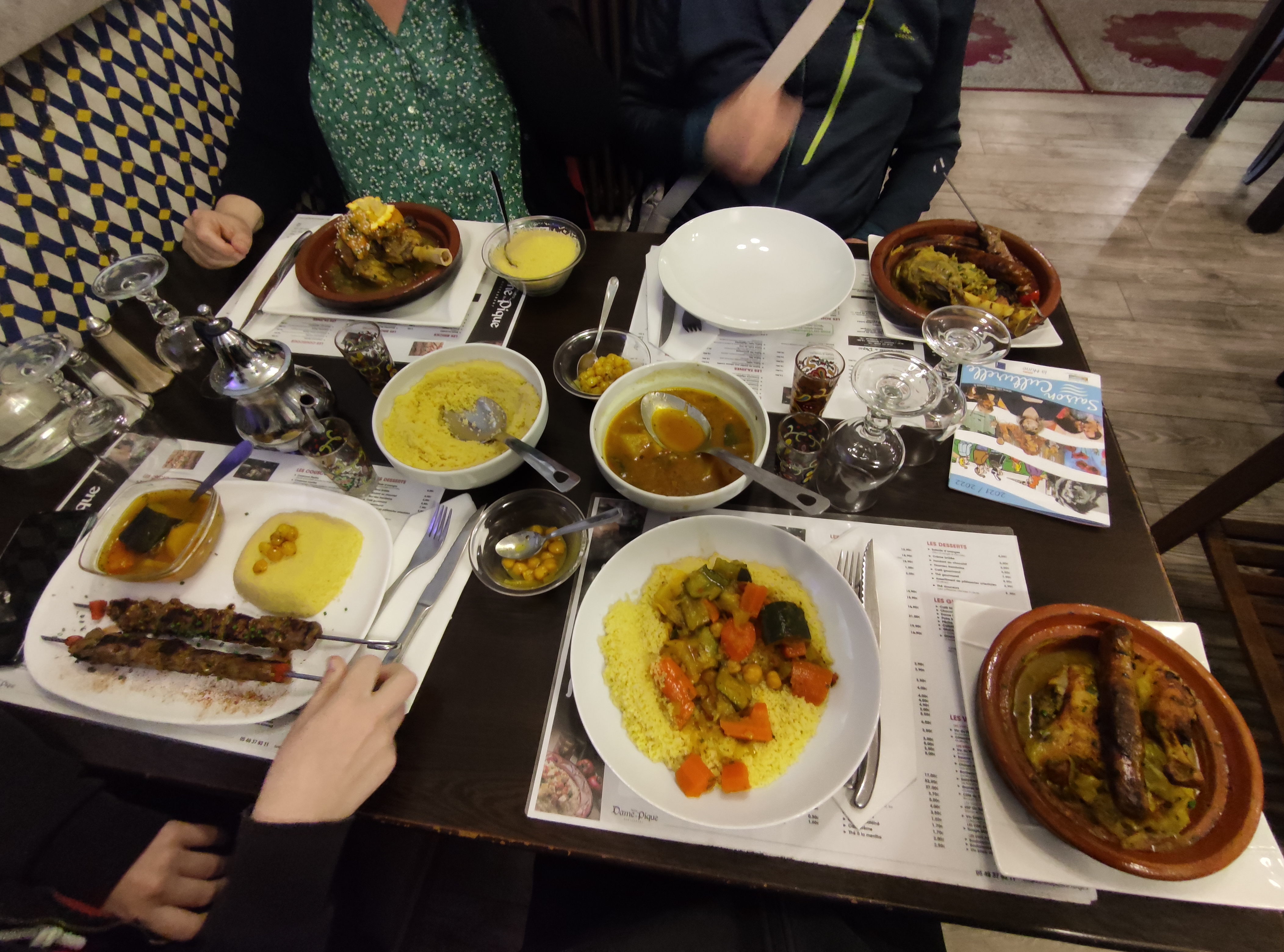 resto pas facile à trouver à cause des travaux et déviations que nous avons rencontré ce jour là. Le couscous était bon, pas excellent mais bon, les enfants ont étés contents de leur repas (tajine peu épicé et steack -frites maison). La qualité du repas tient surtout dans les entrées qui sont très bonnes. Pour le reste de ce que nous avons pris je dirai que c'est dans une assez bonne moyenne.