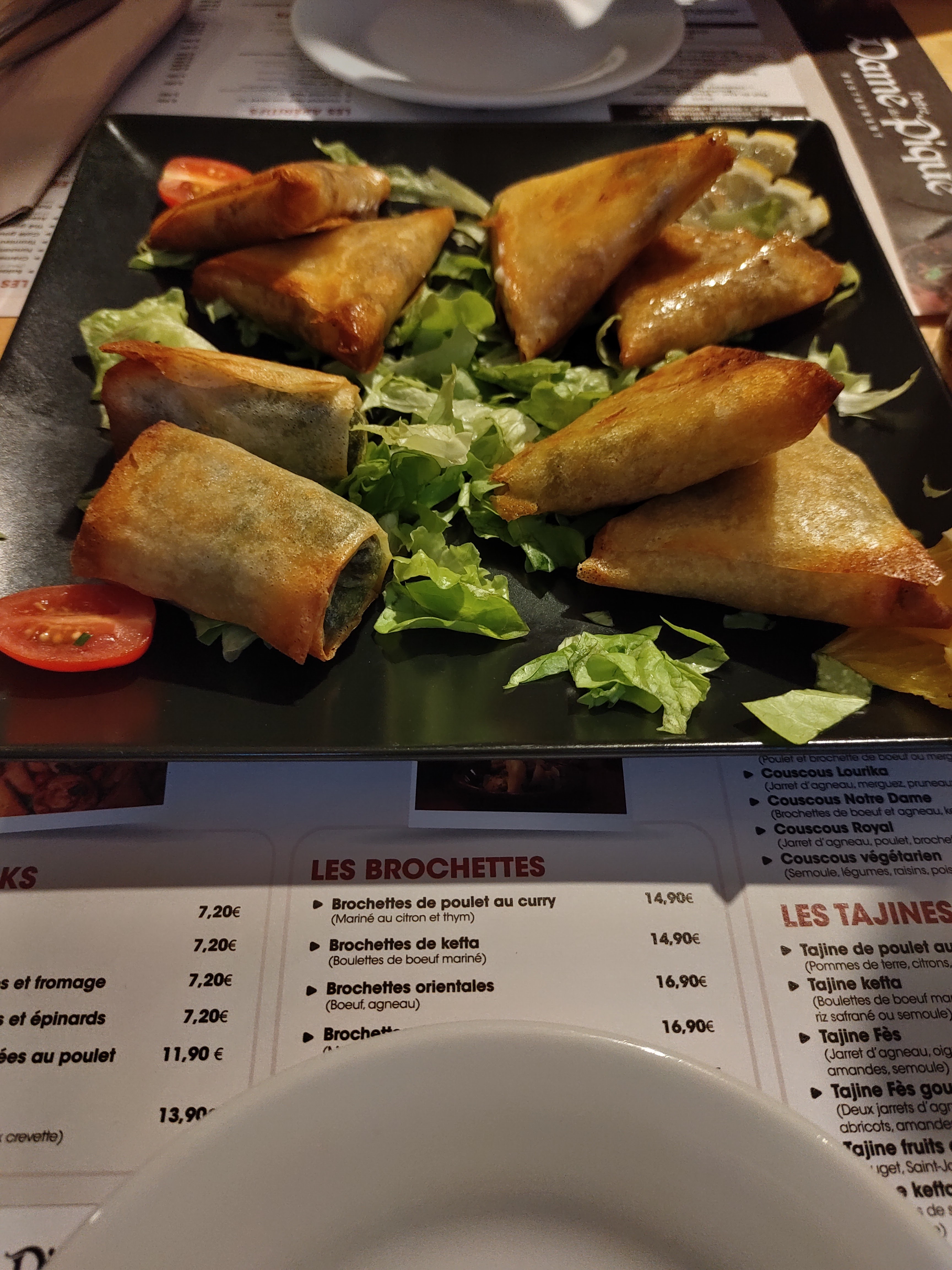 Excellent restaurant. Un grand choix de coucous, tajines, brochettes ou encore samoussas !! Les plats sont vraiment très bons. Les serveurs étaient très gentils. La décoration du lieu a l'intérieur est magnifique. Je vous recommande vivement cette adresse.