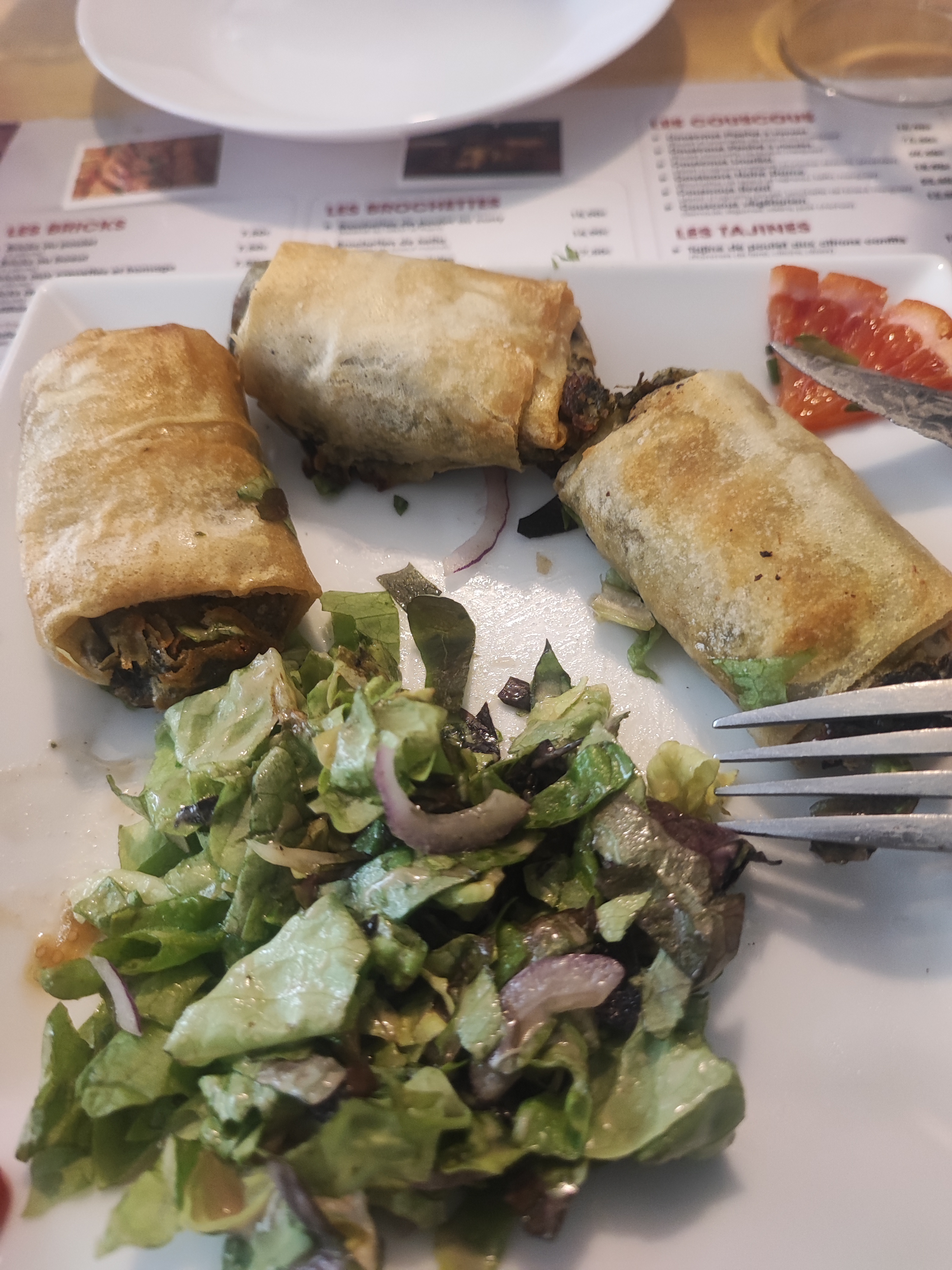 Je connaissais ce restau a leur ouverture il y a 3 ans et ça a beaucoup changé : plats servis froid et viande brochette pas assez cuite, bricks remplis d une sorte de cheveux d ange pour combler (jamais vu ça dans la cuisine maghrébine dans des bricks) aucun geste commercial même pas un thé pour les plats repris pour en améliorer la cuisson et erreur sur l addition dont nous nous sommes rendus compte une fois à la maison. Paiement au comptoir car personne ne vient vous voir donc pas vraiment de possibilités de contrôler votre addition : 37,5 cl de vin payé comme un 50 cl la différence est quand même de 6 euros. ... Cher car entrée + plat (j'ai pris le moins cher) et un coca à quasi 25 euros !!! Grande deception et pourtant j adorais ce restau il y a 3 ans ....
