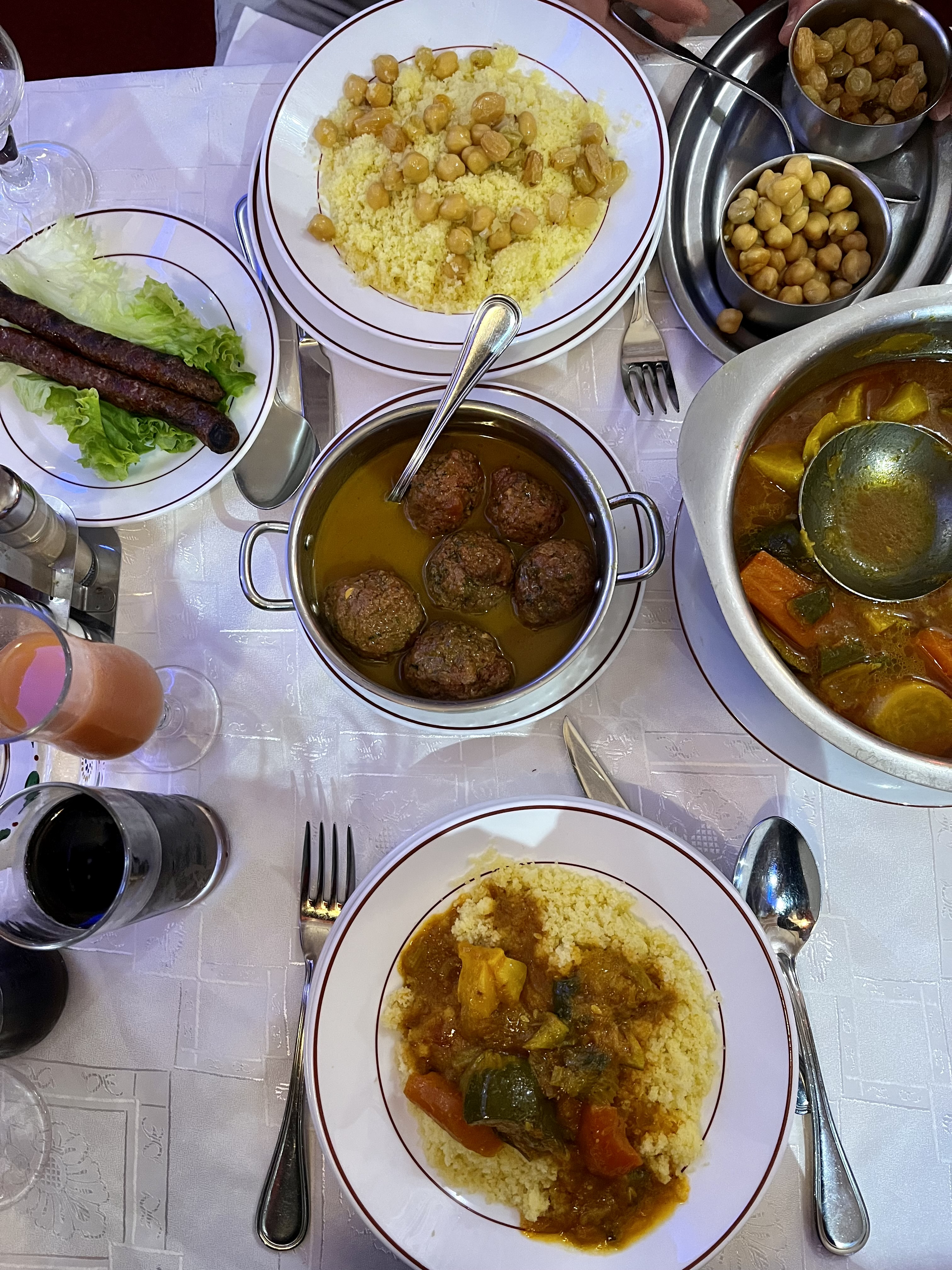 Restaurant dans l’ambiance typique marocaine, personnel agréable. Nous avons commandé un couscous méchoui agneau, pas mauvais du tout mais quel dommage vraiment d’avoir eu la viande beaucoup trop cuite ! J’imagine qu’elle a été réchauffé ou subit deux cuisson. Impossible de la manger !! Après l’avoir signalé, on m’a de suite proposé de le la changer. J’ai refusé par déception mais on me l’a quand même apporté. Svp ! Soignez vigilant sur la cuisson des viandes…