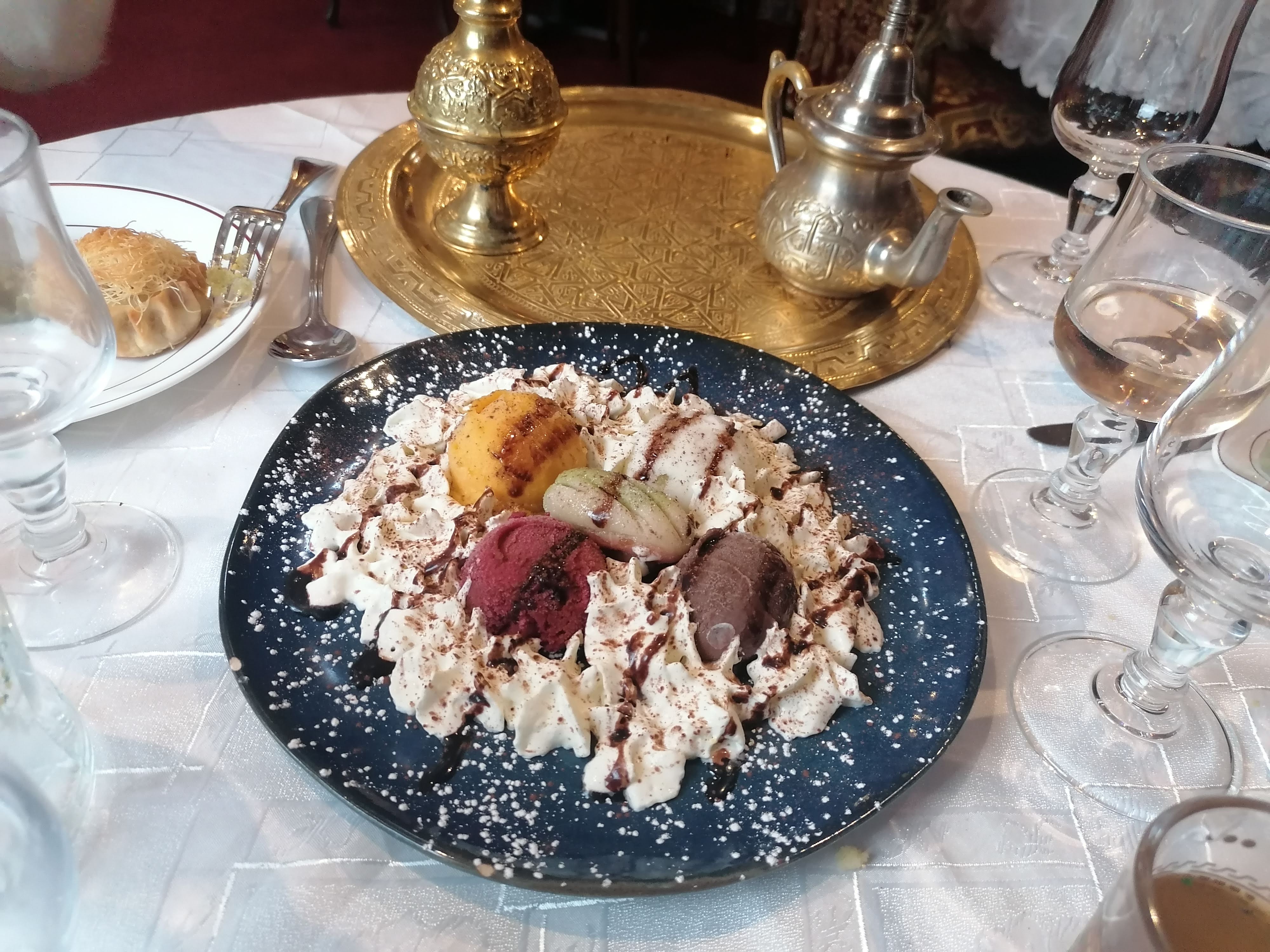 Accueil chaleureux, service impeccable, personnel gentil et professionnel, cuisine raffinée et d'excellente qualité les plats sont extrêmement bien garnis, ainsi que le décor digne du pays, on se croirait au Maroc ! Je recommande à 1000%