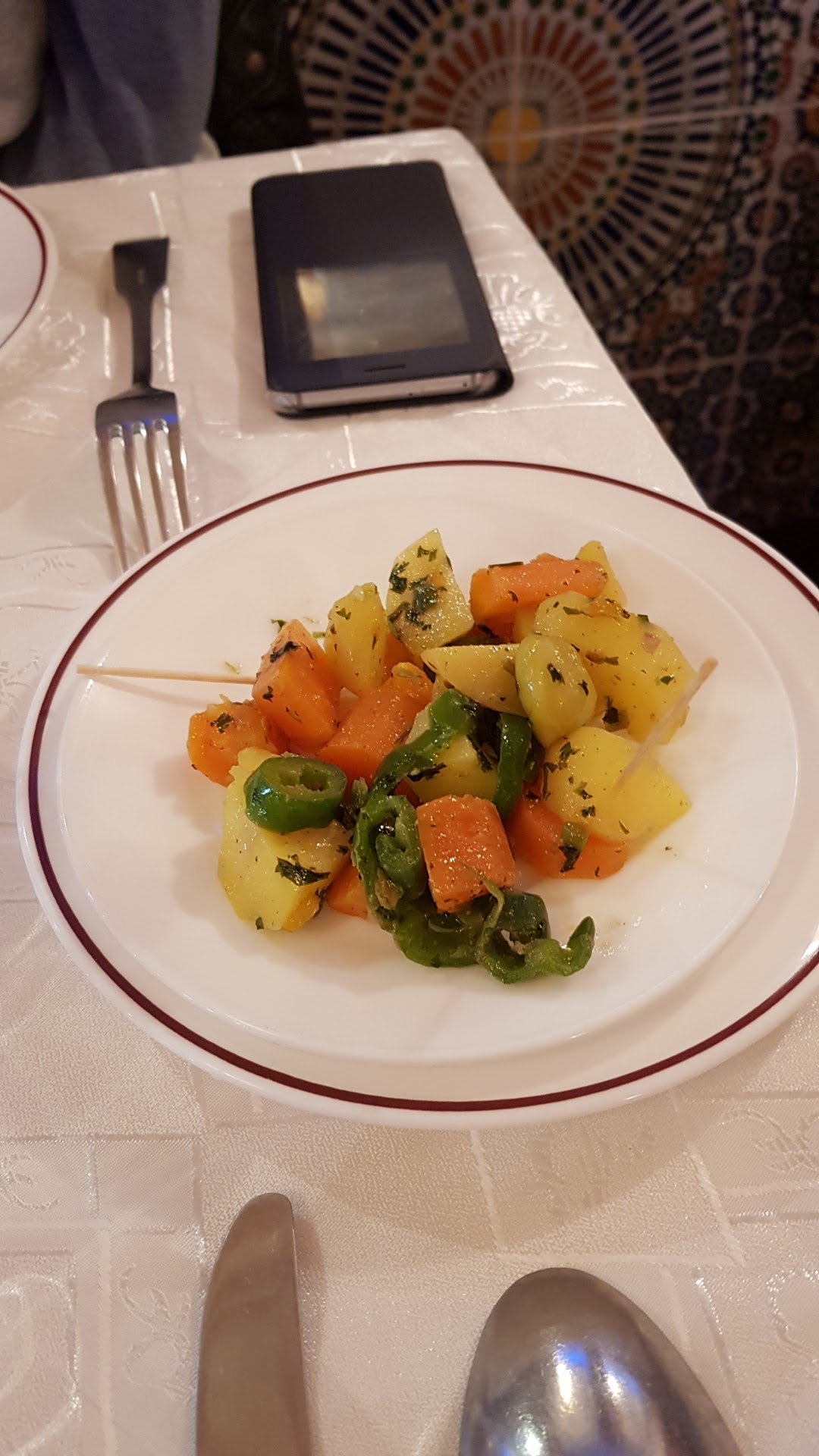 J ai dîné avec ma famille, accueil impeccable par contre au niveau assiette légumes pas très bien cuit , viande pas de bonne qualité avec mauvaise cuisson au niveau du tajine manque de goût pour résumer. Dommage vu les prix des plats . Le cuisinier ne doit pas bien maîtriser la gastronomie marocaine . Gastronomie exigeante en termes assaisonnement et de cuisson. Désolé pour le commentaire en espérant que cela vous servira à vous améliorer uniquement sur ce point .