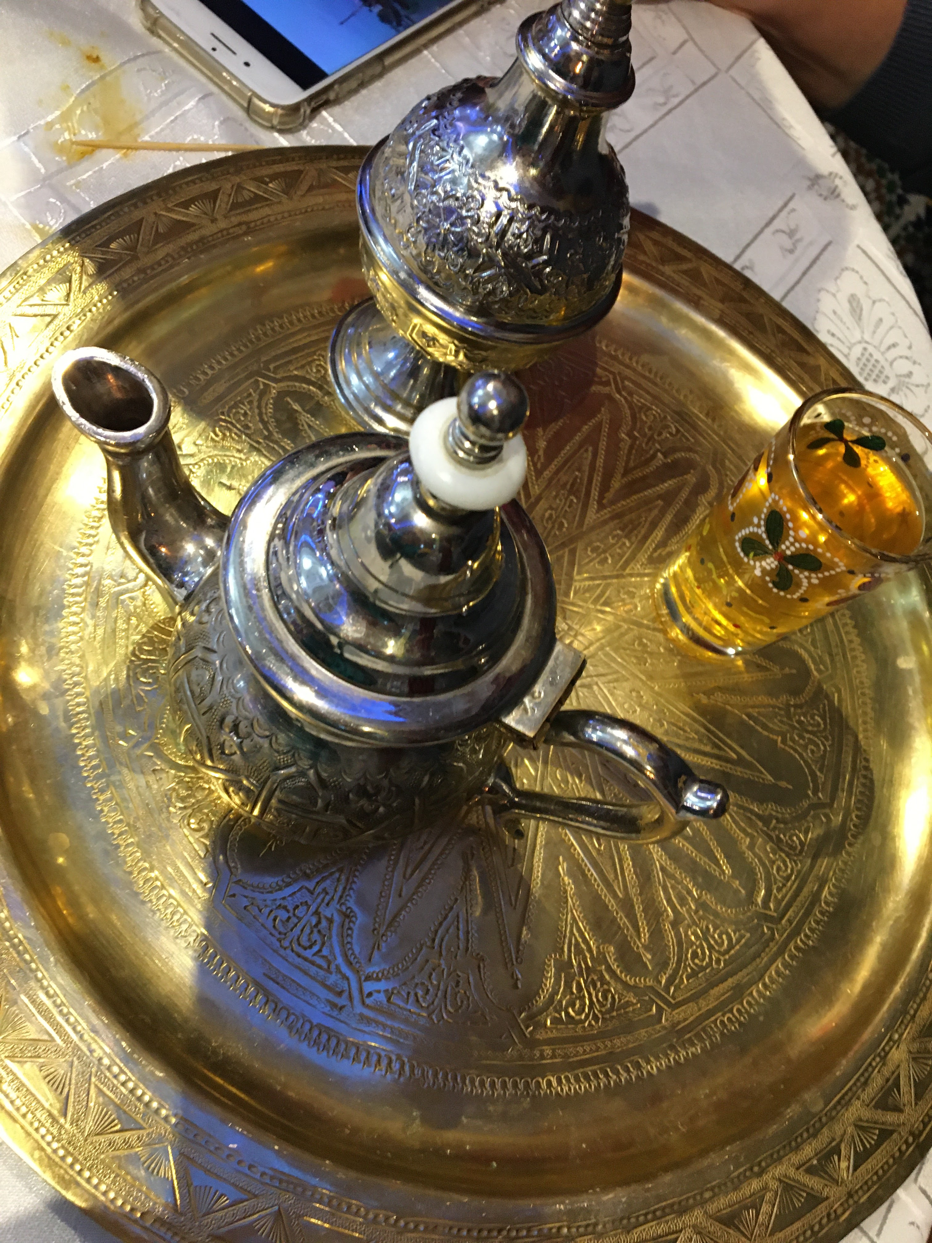 Bon accueil du personnel, les plats et spécialités marocaines sont très bons et servis en quantité, mais déçus sur la quantité de thé à la menthe dans la théière qui nous a été servie en fin de repas pour 3 personnes.