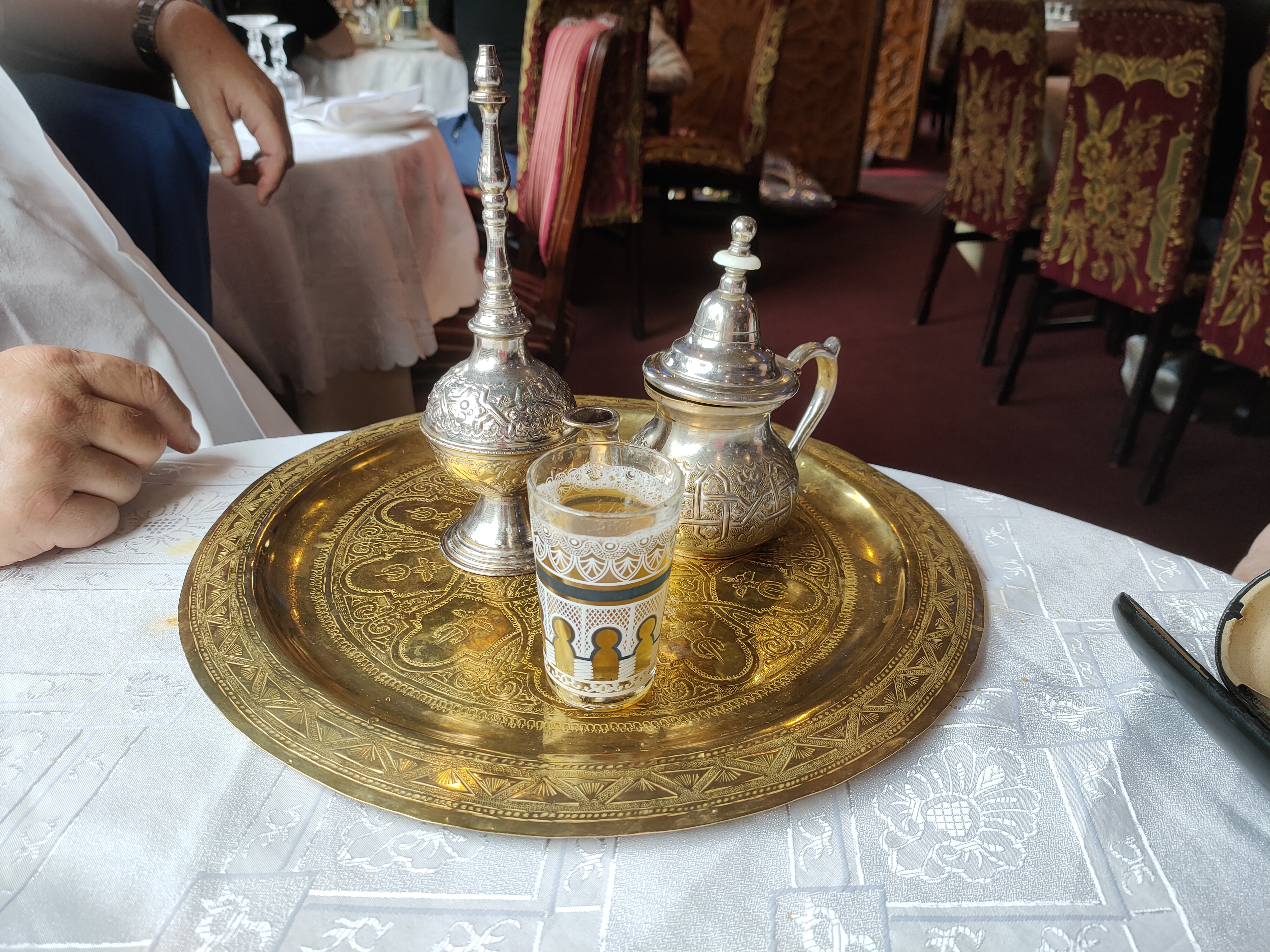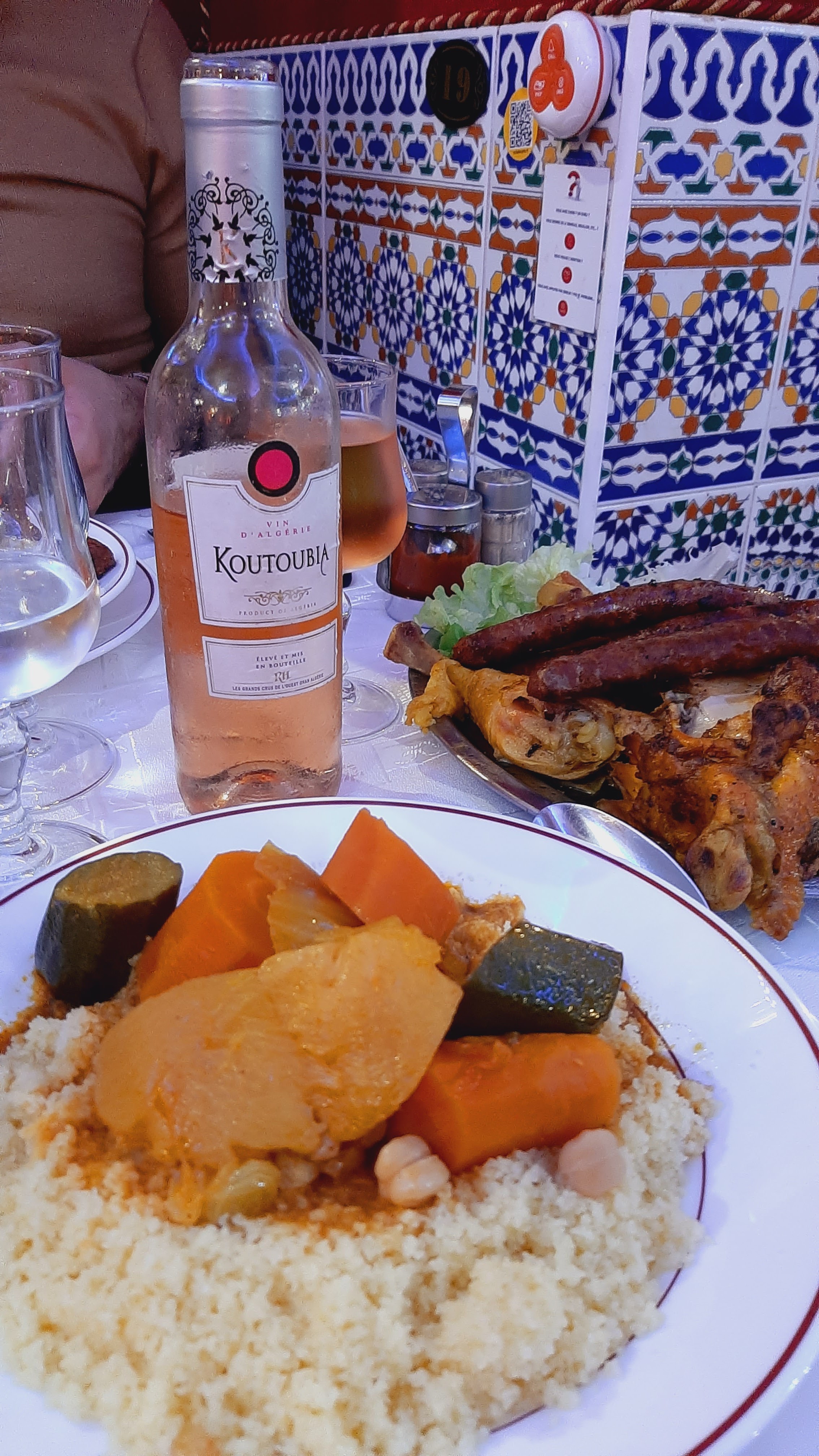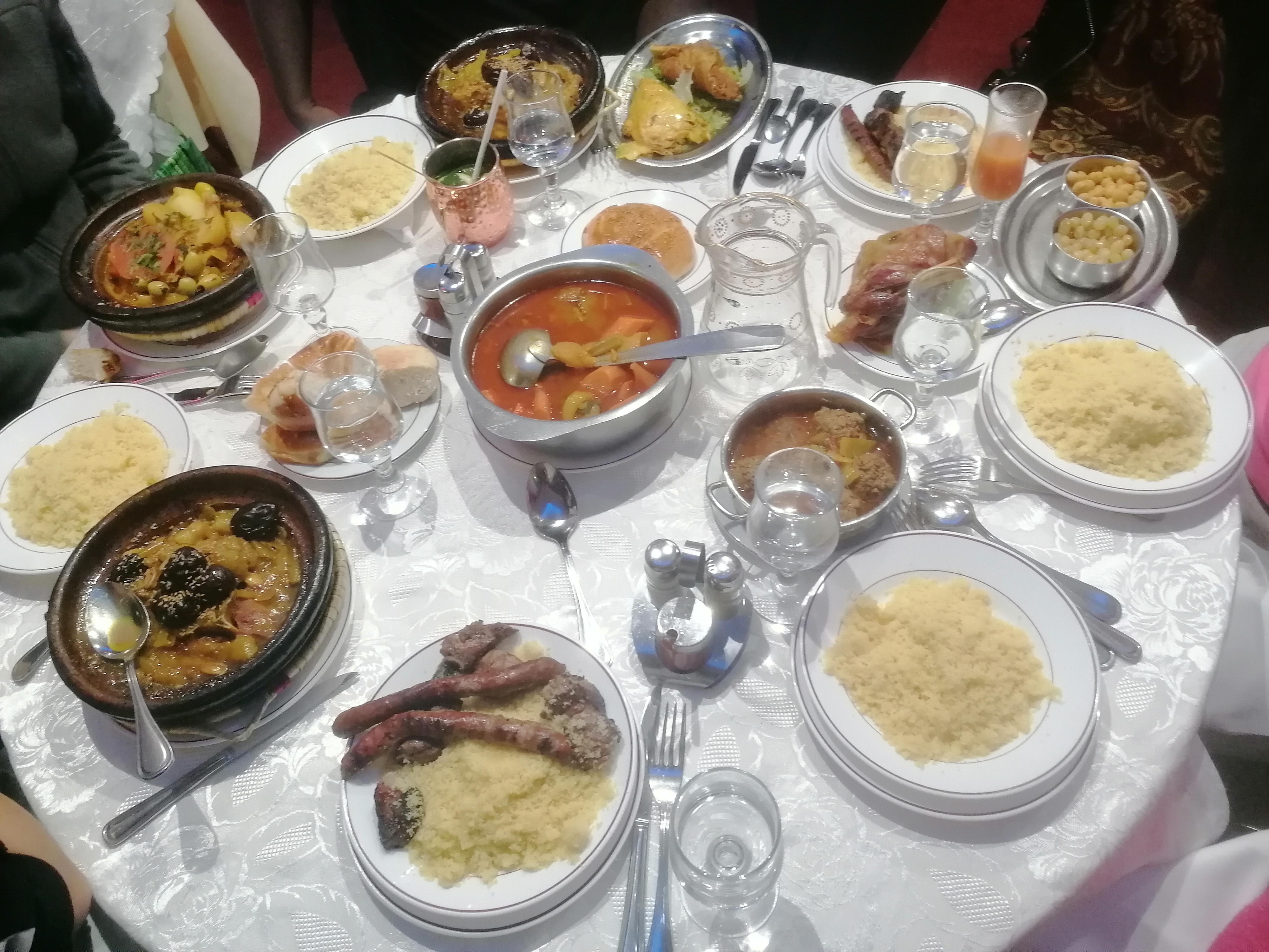 J'ai été invité par de amis. J'ai mangé un couscous délicieux. Je n'ai pas pris de dessert car j'étais rassasié mais j'ai vu passé le plat avec des pâtisseries traditionnelles qui avait l'air succulentes. Le thé à la menthe était savoureux. On m'a même offert le digestif. Un restaurant que je recommande.