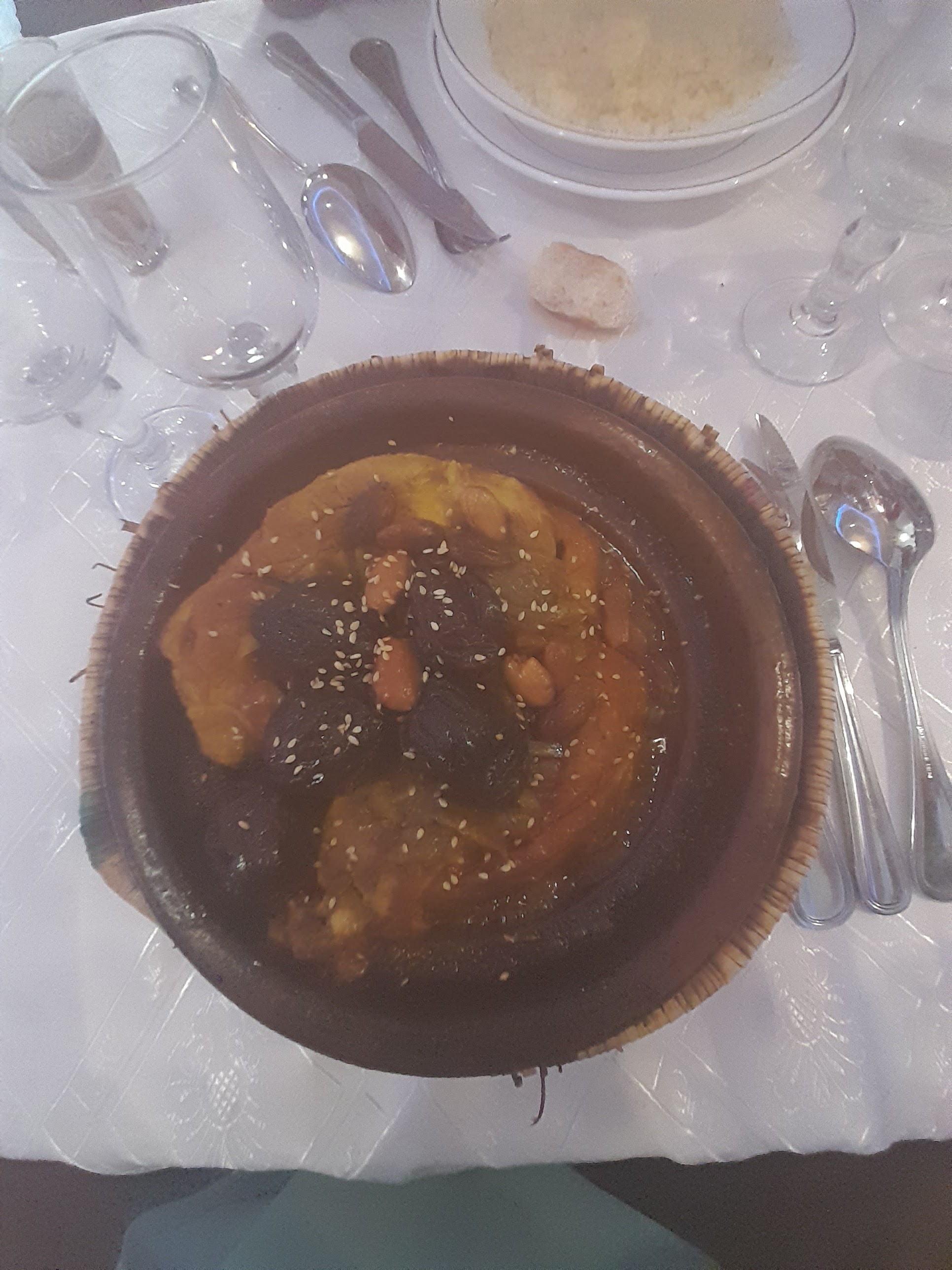 Tajine aux pruneaux et aux amendes un délice. La semoule du couscous excellente. Serveurs sympathiques, souriants... Quantites des plats plus que généreux dans l'assiette. Un grand bravo pour ce restaurant et le personnel. Nous reviendrons.