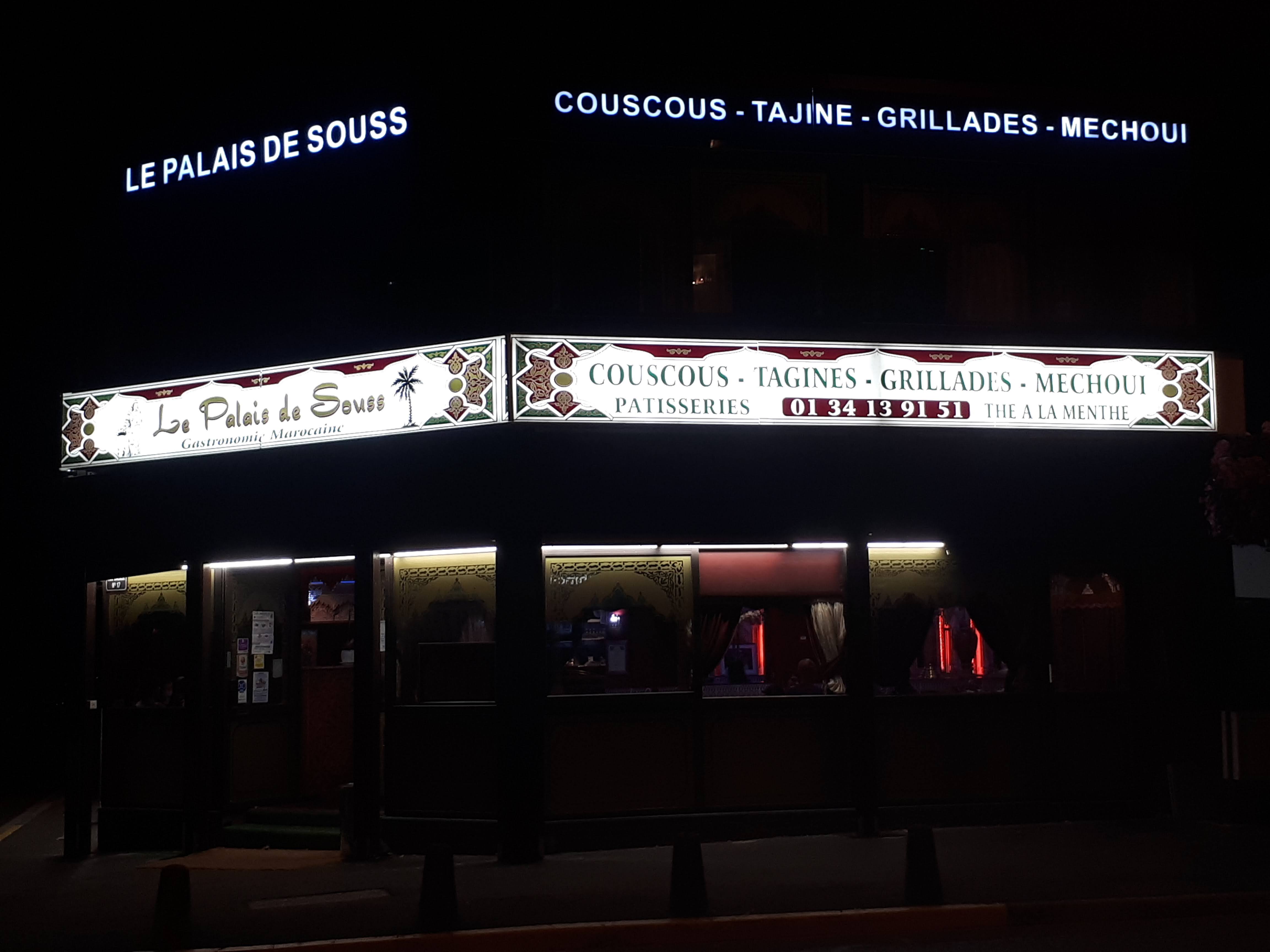 Ma famille et moi connaissons et allons dans ce restaurant depuis des dizaines d’année, et je pense qu’il est temps de laisser un commentaire pour les remercier pour chacun de leur service et leur nourriture excellente ! Nous n’avons jamais été déçus de la cuisine au Palais de Souss ! Les couscous sont excellents, la semoule est fine et on peut se resservir si on le souhaite, les viandes savoureuses, le thé à la menthe et les pâtisseries orientales sont parfaits pour terminer le repas. Les équipes sont très aimables, le service est efficace, l’ambiance est agréable, c’est vraiment un plaisir de manger dans ce restaurant. Et c’est également appréciable car nous pouvons aussi commander à emporter. C’est une adresse que j’adore et je remercie toute l’équipe pour leur cuisine d’exception et leur gentillesse.