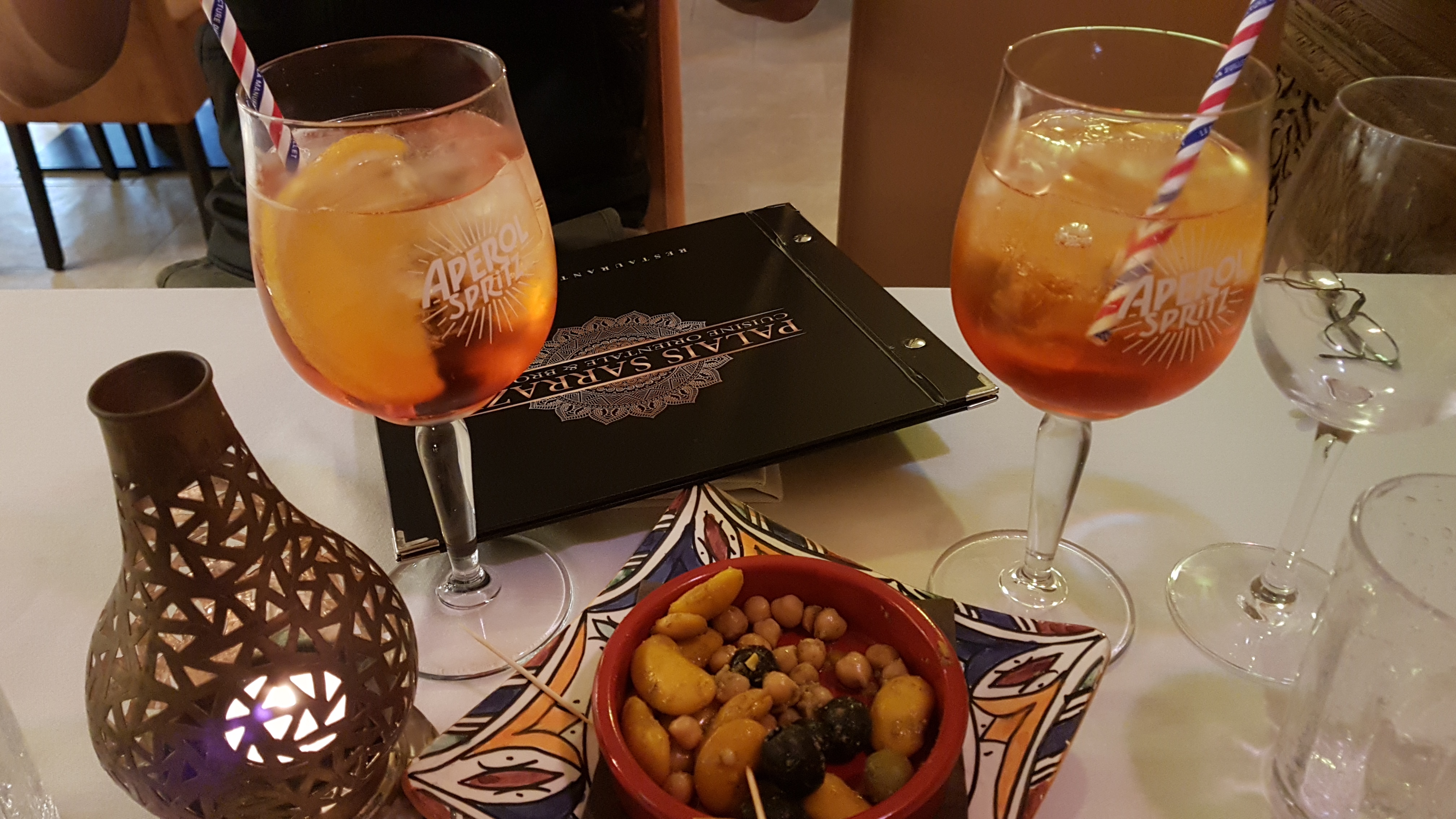Des l’entrée ça annonce la couleur on se trouve sur la place jemaa el fna. Petit rappel de nos vacances. Mon tajine au citron était délicieux tout comme le serveur.