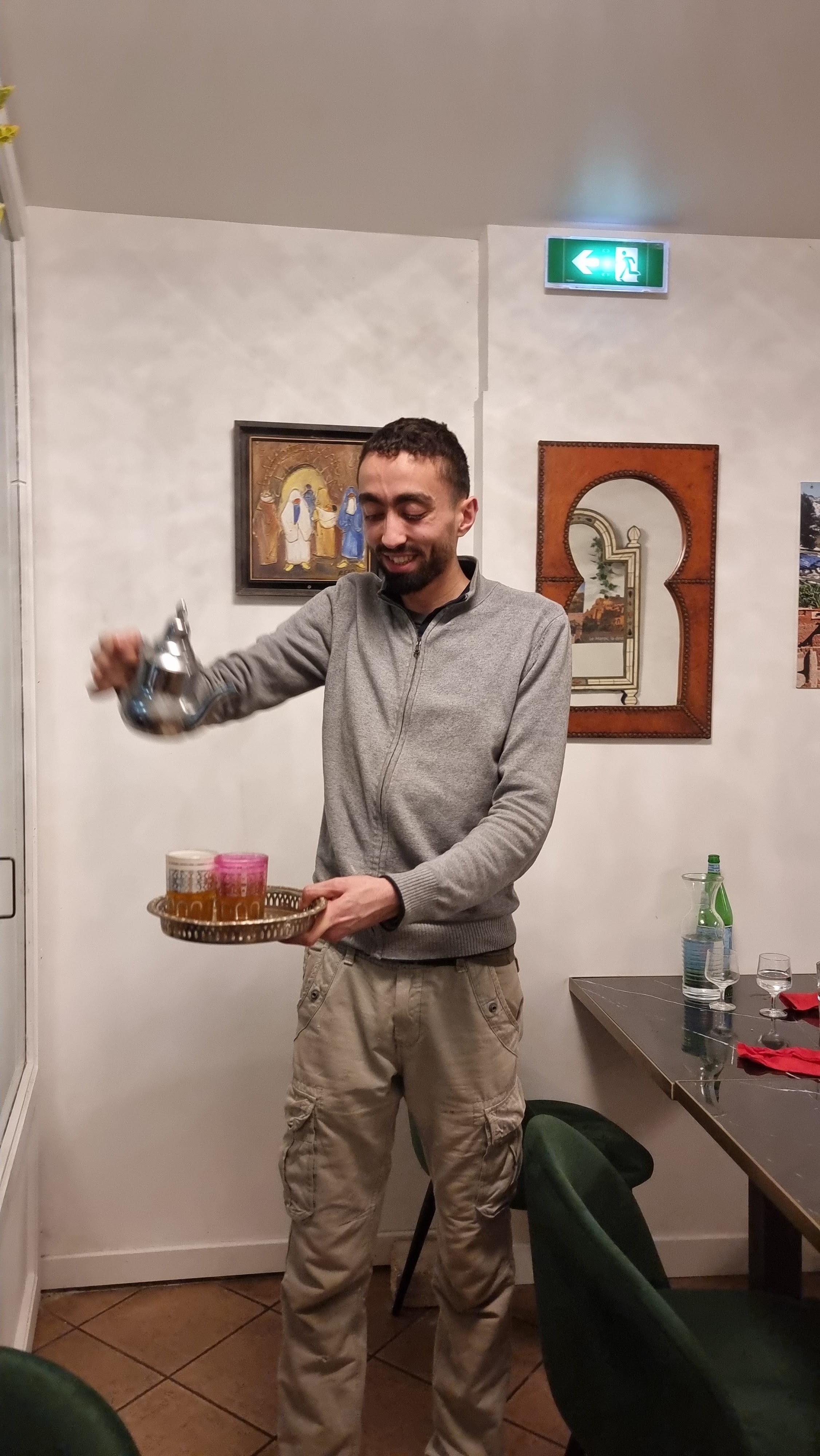 Un peu d’attente mais ça valait le coup !!! Cuisine vraiment comme au Maroc, tagine et couscous à tomber par terre tellement qu’ils étaient bons, serveur très avenant et sympathique, professionnel et aux petits soins des clients, c’est un petit restaurant qui n’a rien de voyant mais à l’intérieur belle décoration du Maghreb, je recommande à 100% rien que pour la cuisine excellente