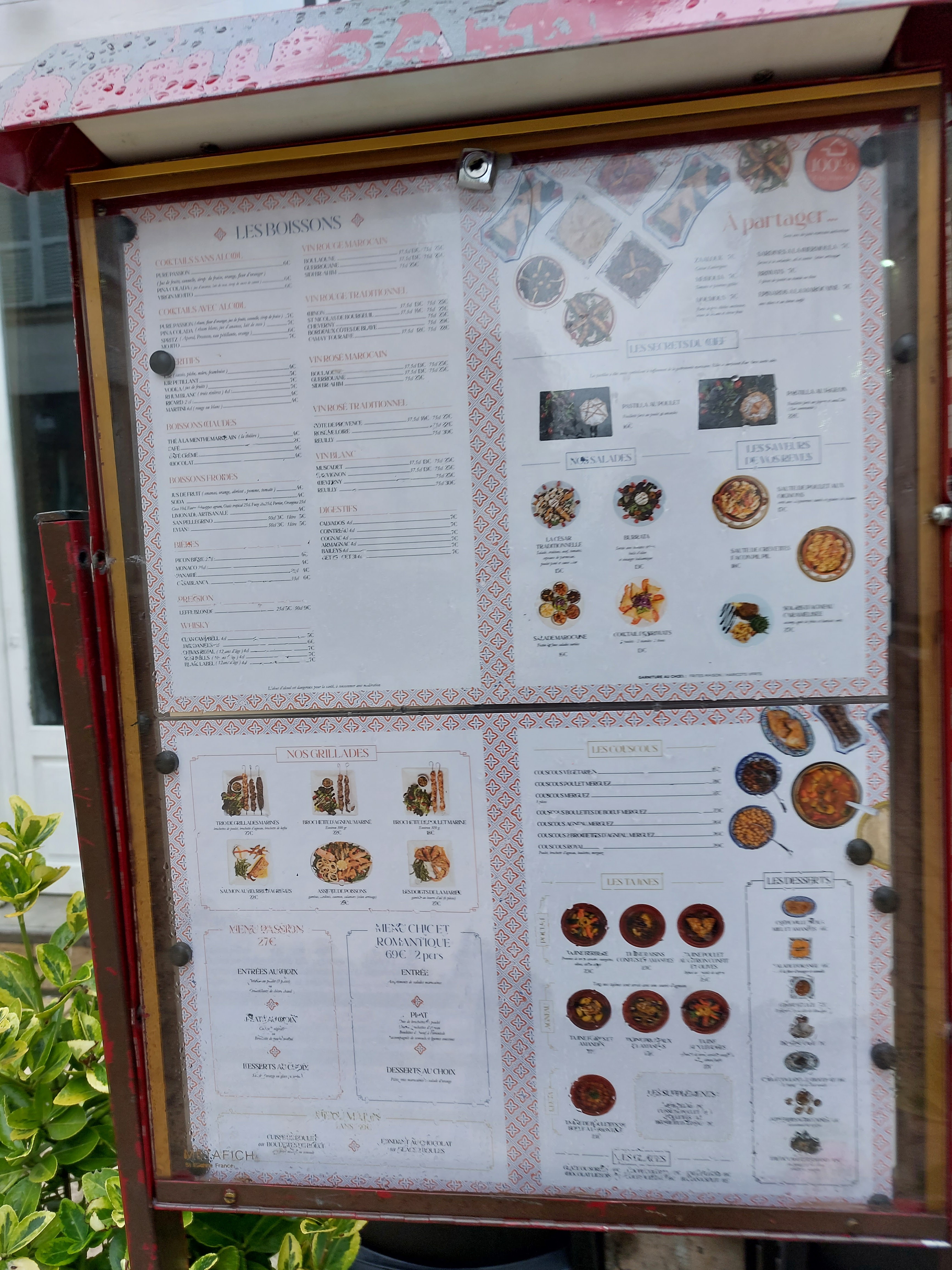 Excellent restaurant Marocain !! Nous y sommes allé pour la première fois hier soir. Le serveur était adorable et très attentif au besoin des clients, le service était très rapide et les plats choisis étaient vraiment excellent, tout comme le rosé marocain « le boulaoune » d’ailleurs 😁 C’était fort copieux tellement que nous n’avons pas pu tester les desserts qui pourtant donnaient très envie 🥹 Cerise sur le gâteau, nous avons pu manger en terrasse, ce qui est très appréciable pour un couple de fumeur 👍 Nous reviendrons sans hésiter dès que l’occasion se présentera. Je recommande ce restaurant à toutes les personnes souhaitant un repas goûteux et dépaysant 😎 Nous avons payé 70€ pour 2 en prenant 2 petites bouteilles de rosé (37,5cl), un tajine à l’agneau et un couscous végétarien. C’est un prix très honnête au vu de la qualité et quantité des plats 🙏