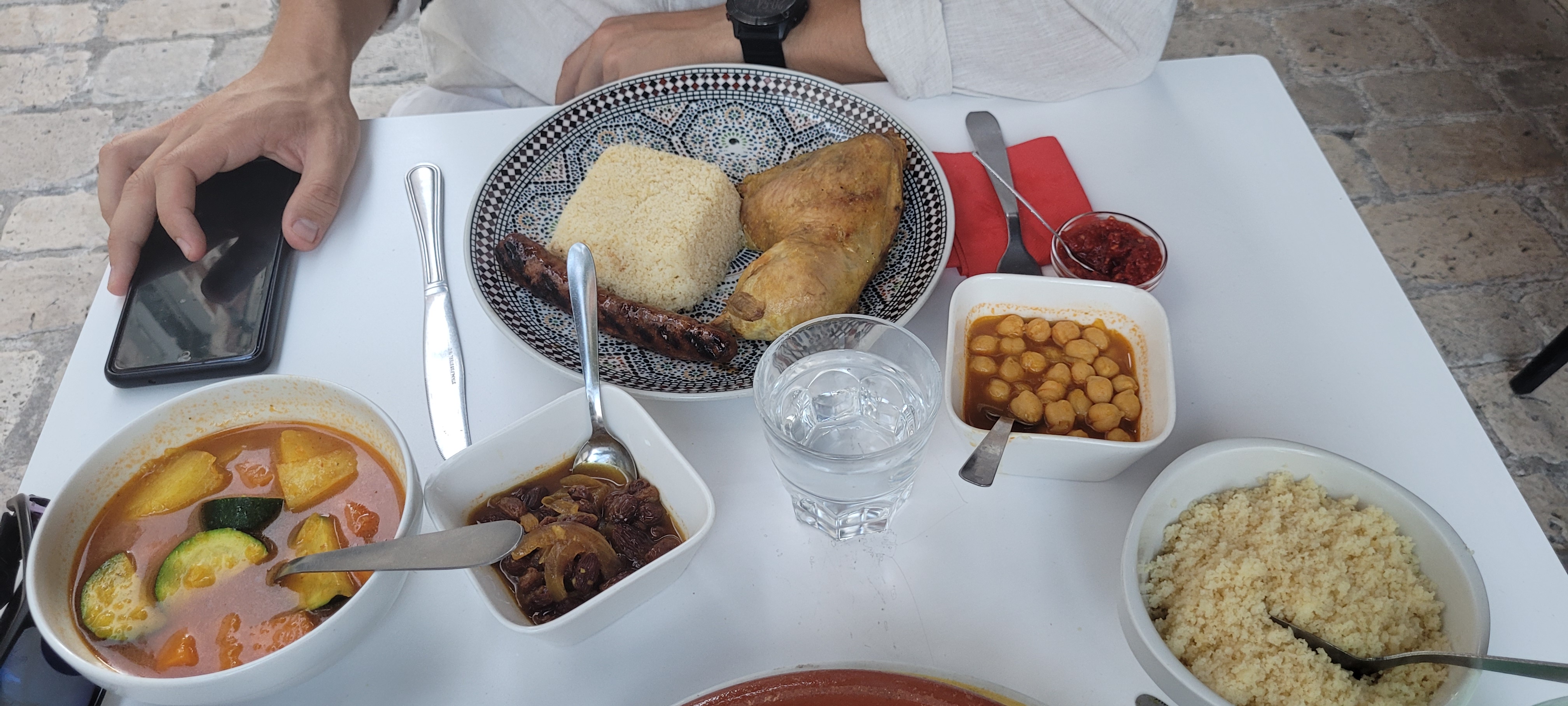 Nourriture excellente, on retrouve les saveurs du Maroc, comme si on mangeait à la maison. L'accueil est très prévenant, le serveur est souriant et attentif. En un mot: l'adresse parfaite!