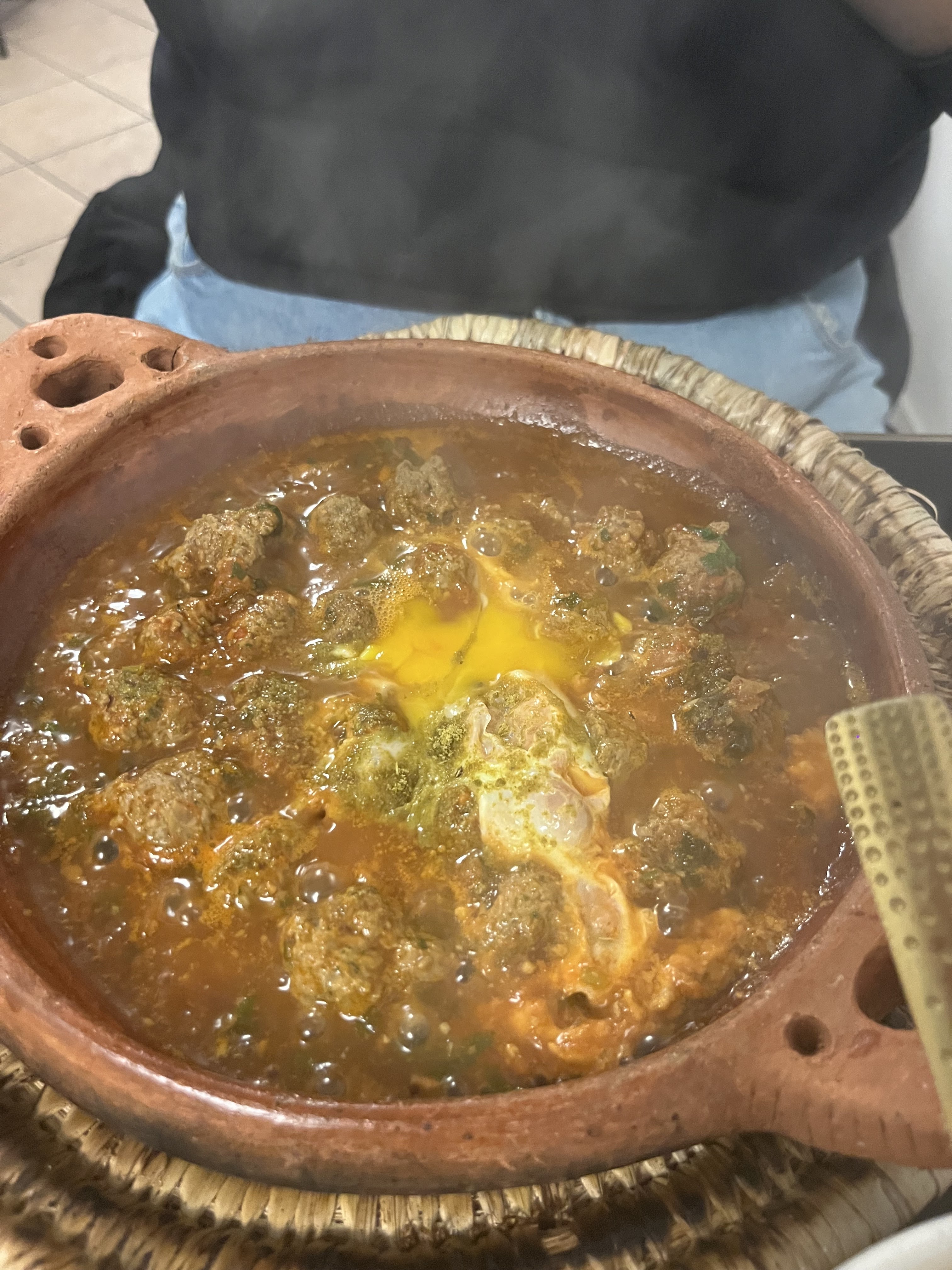 Le repas, tajine poulet olive, était merveilleux, goûtu, accompagné de semoule fine et de frite. L’ambiance, l’accueil le service par Al Habo fut plus qu’agréable. Merci beaucoup pour ce dîner exquis.