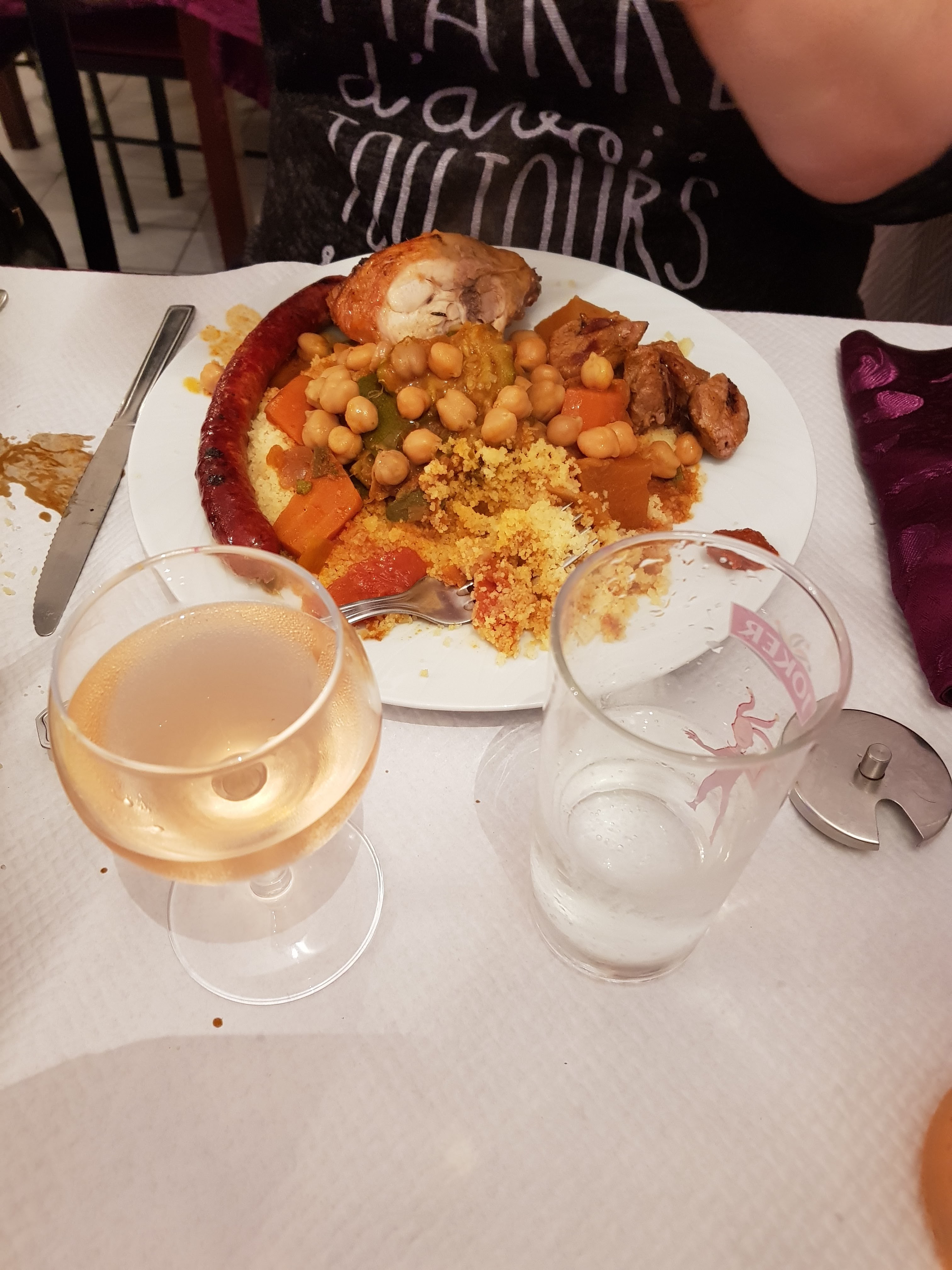 Mon couscous royal était très bon. Concernant l'accueil la femme et très chaleureuse, l'homme a un humour pince-sans-rire qui peut être déroutant de prime abord mais qui s'est révélé être très agréable également. A noté également que j'avais donné par mégarde un billet de 50 euros de trop sans m'en rendre compte, et il me l'ont ramené ce qui était fort honnête de leur part.
