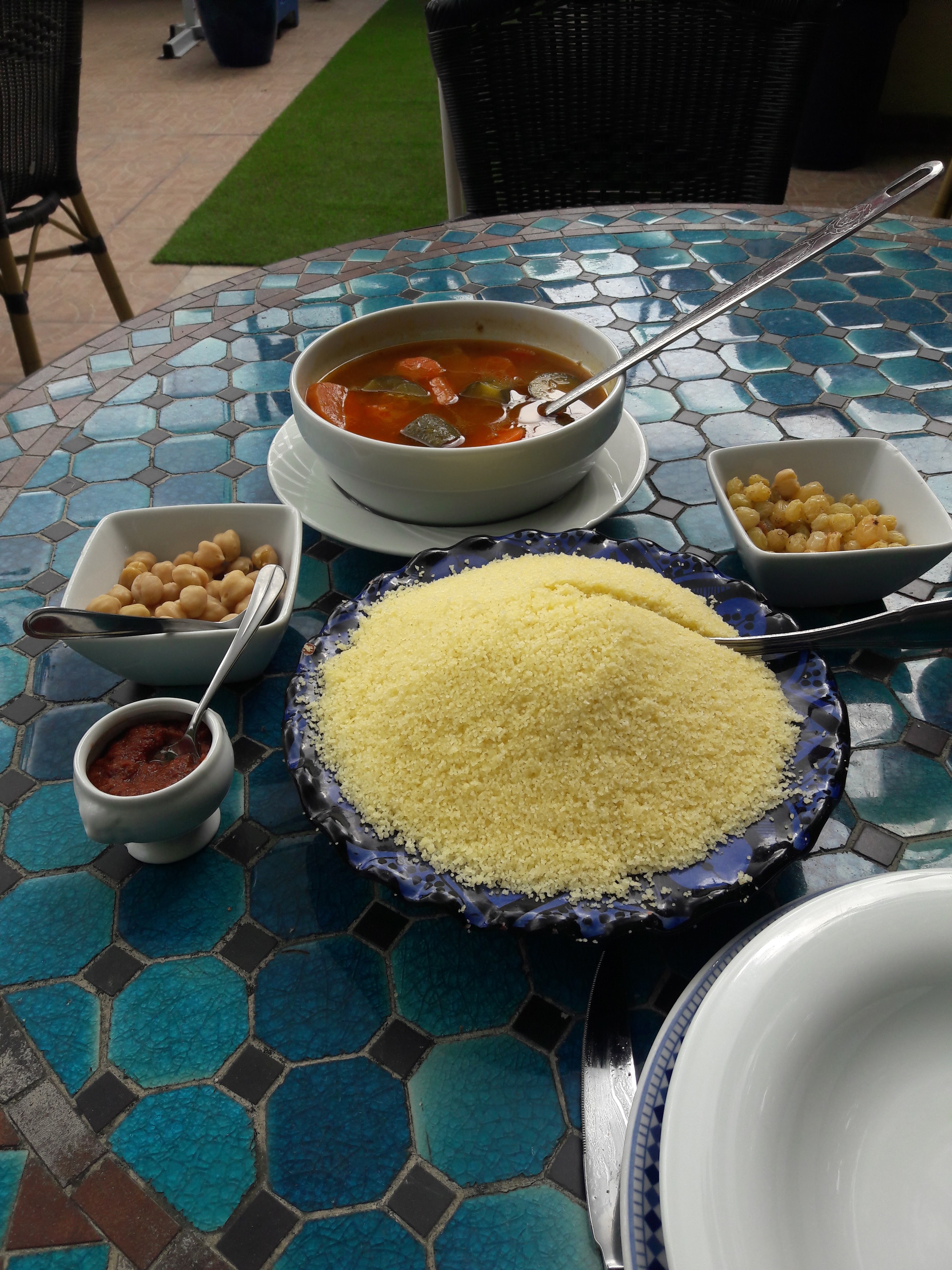 Très déçue! le bouillon de couscous: de l'eau chaude insipide. Évidemment nous comparons avec le précédent le Tafoukt qui servait une cuisine d'exception, la barre était haute.