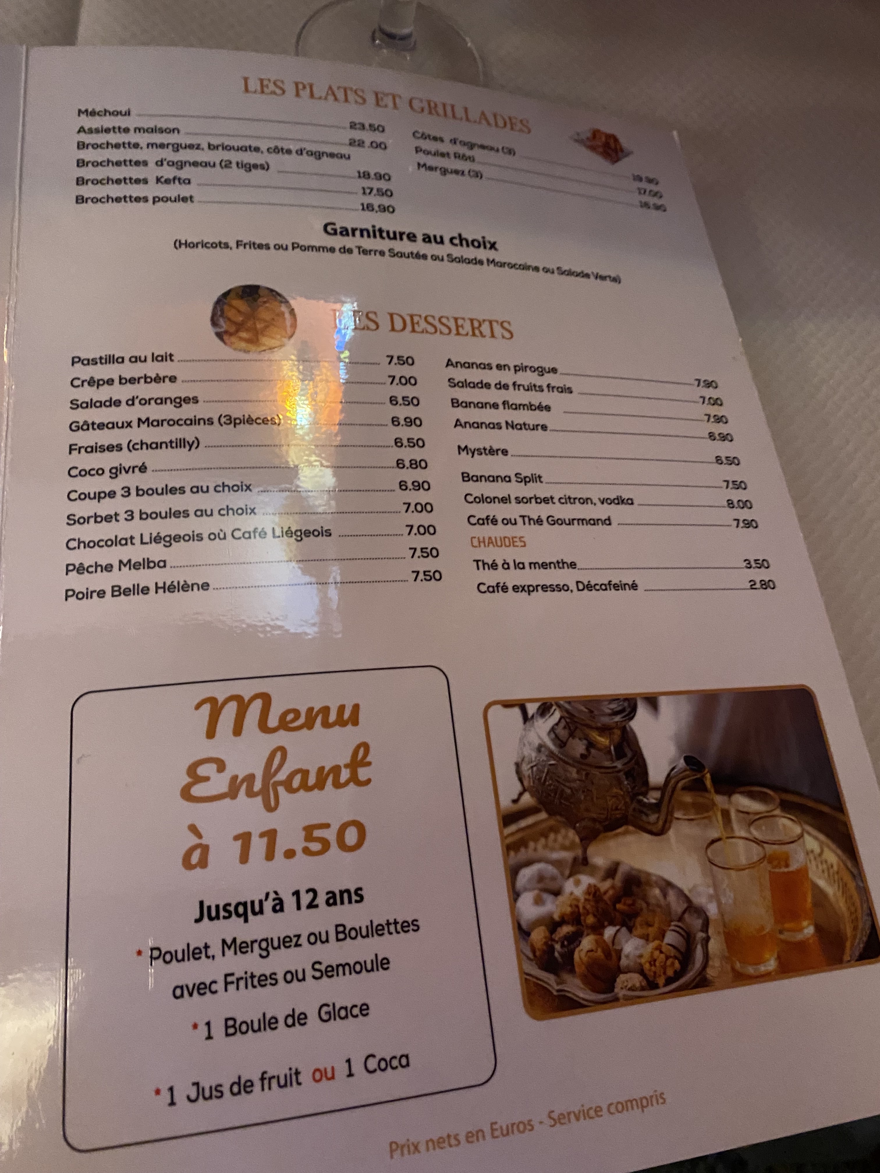 Tout d'abord, nous avons été très bien accueilli. Le service est très bien. Serveur attentionné. La pastilla de poulet est un délice et le couscous raffiné et copieux. Mon amie qui n'a jamais d'appétit s'est reservis 2 fois ! 😉 Nous vous le recommandons !