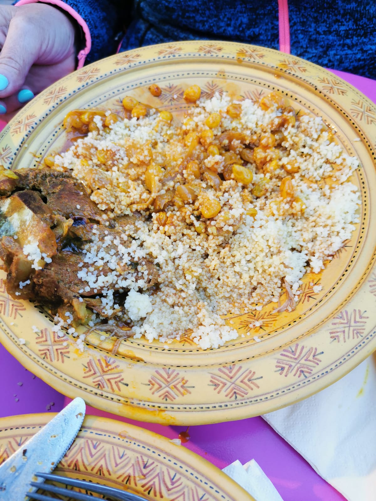 Vous êtes reçus à la marocaine , pour ceux qui ne savent pas ce que cela signifie, ça veut dire : gentillesse ++ !! Alors un conseil, si vous prévoyez d'aller manger le couscous royal, ne mangez pas pendant les 48 heures précédentes 🤣 il est non seulement excellent, mais abondant ! Tiens, rien que d'écrire ça m'a donné envie d'y retourner ce soir. BON APPÉTIT !!!