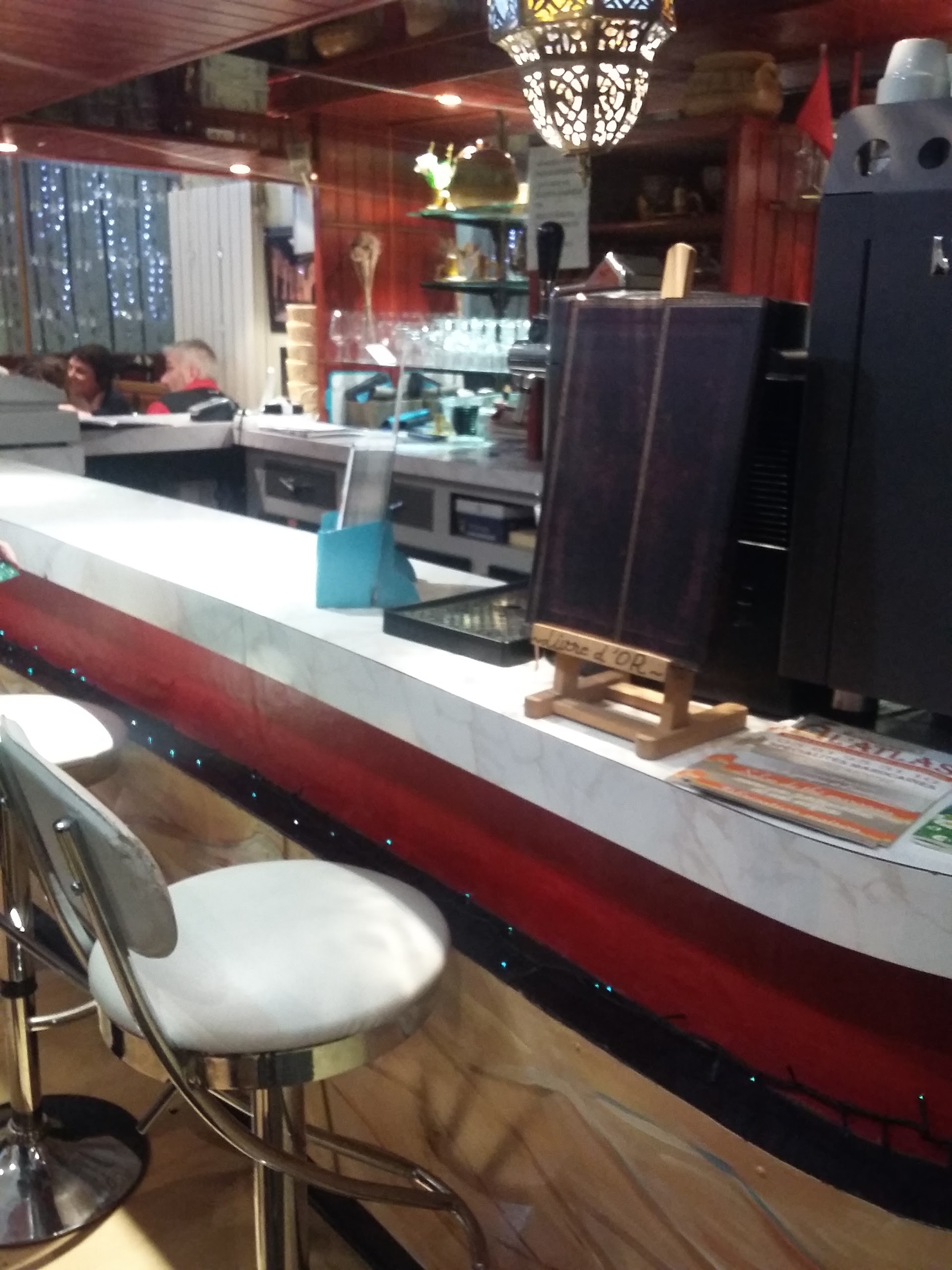 Expérience mémorable dans ce restaurant marocain ! La question que je me suis posée en sortant de ce restaurant suis je allée au resto ou à l’abattoir ? Commençons par le service, un véritable fiasco ! La serveuse ? Une perle rare !! Son attitude hautaine et son absence totale d’amabilité donnent l’impression qu’on devrait la remercier d’avoir daigné s’occuper de nous. Une attention si touchante qu’on aurait presque envie de ne plus jamais revenir. Côté saveur…. Si vous adorez la sensation de feu dans la bouche qui masque totalement le goût des aliments, alors vous allez être ravis. Ici, les épices ne sont pas là pour sublimer les plats, mais pour vous rappeler que l’eau est votre meilleure amie. Impossible d'apprécier les saveurs authentiques, ce qui est pourtant la base d'une cuisine marocaine réussie Bref, si vous cherchez à ruiner votre soirée, vous savez où aller.