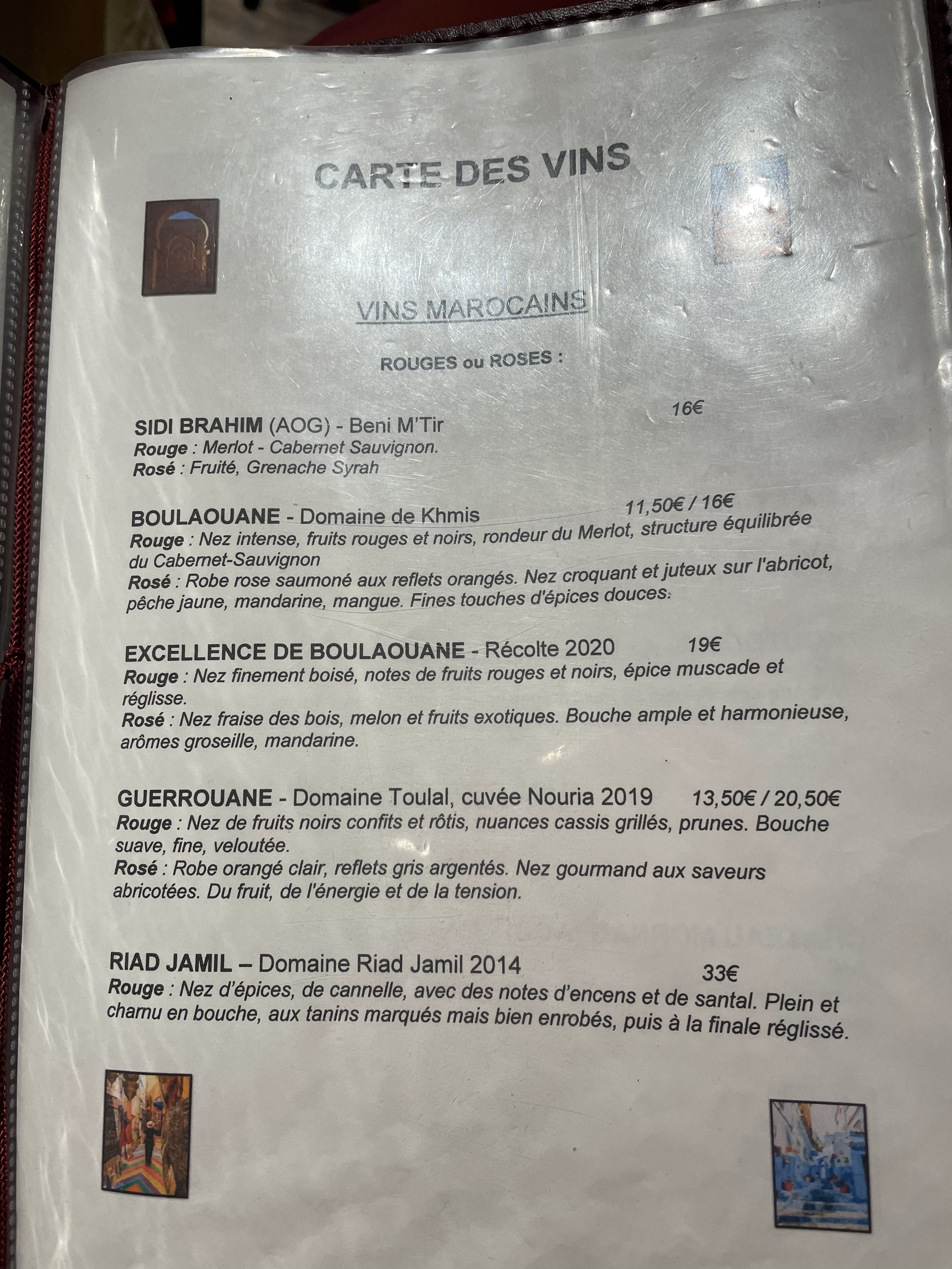 Très bon et très copieux, mais une carte assez petite. Choix de vins marocains