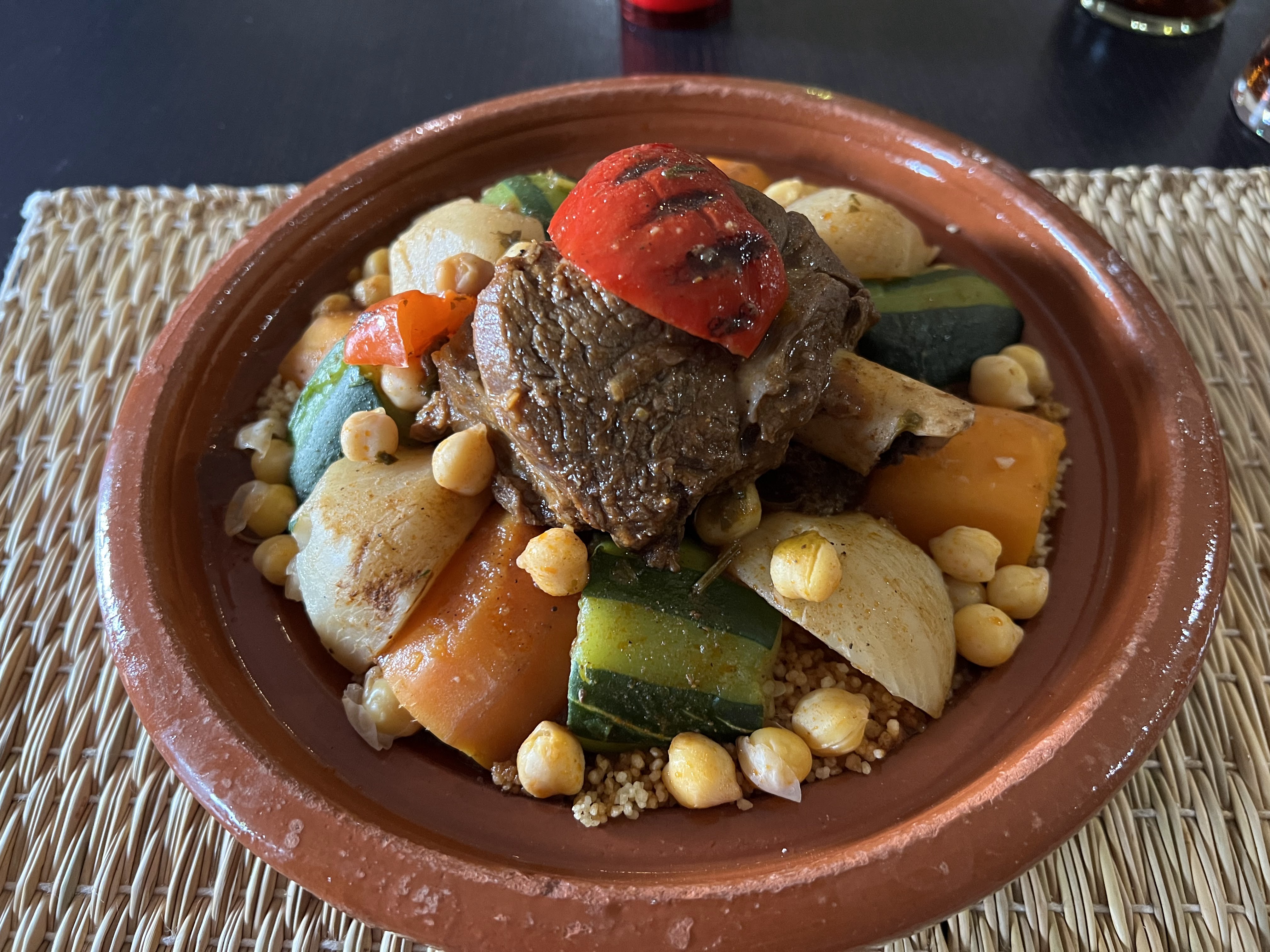 Belle découverte. Nous avons passé un très bon moment dans un cadre chaleureux. Le personnel est très agréable, serviable et souriant. Le repas était top le couscous est copieux et la tajine appétissante. Nous y retournerons c est certain