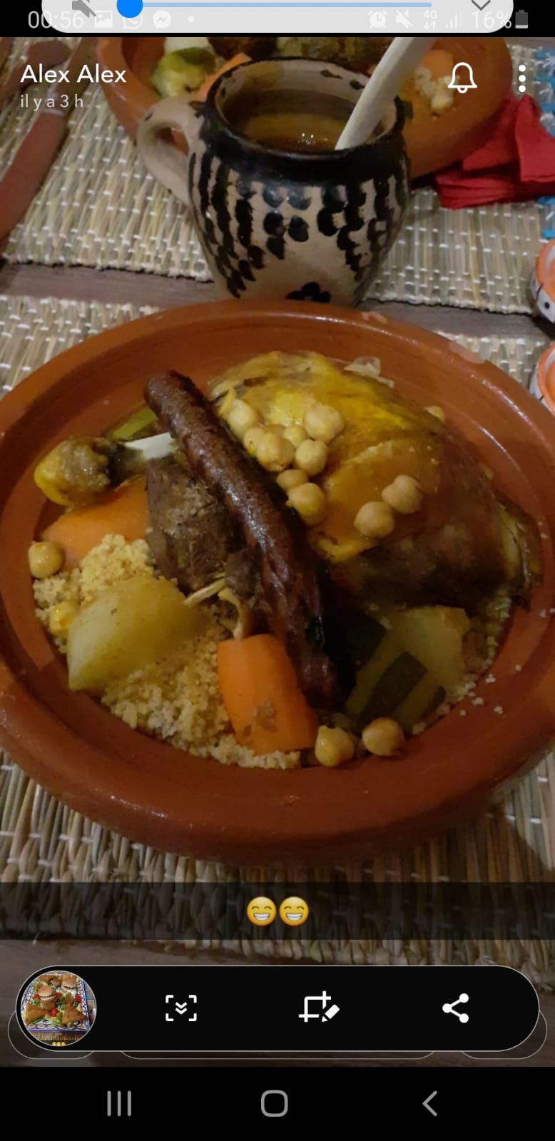 Pour une soirée entre amis, nous avons pris à emporter un excellent couscous. La gentillesse de la cuisinière et de la serveuse en plus.🙏 Merci pour le thé à la menthe 🙏🙏🙏