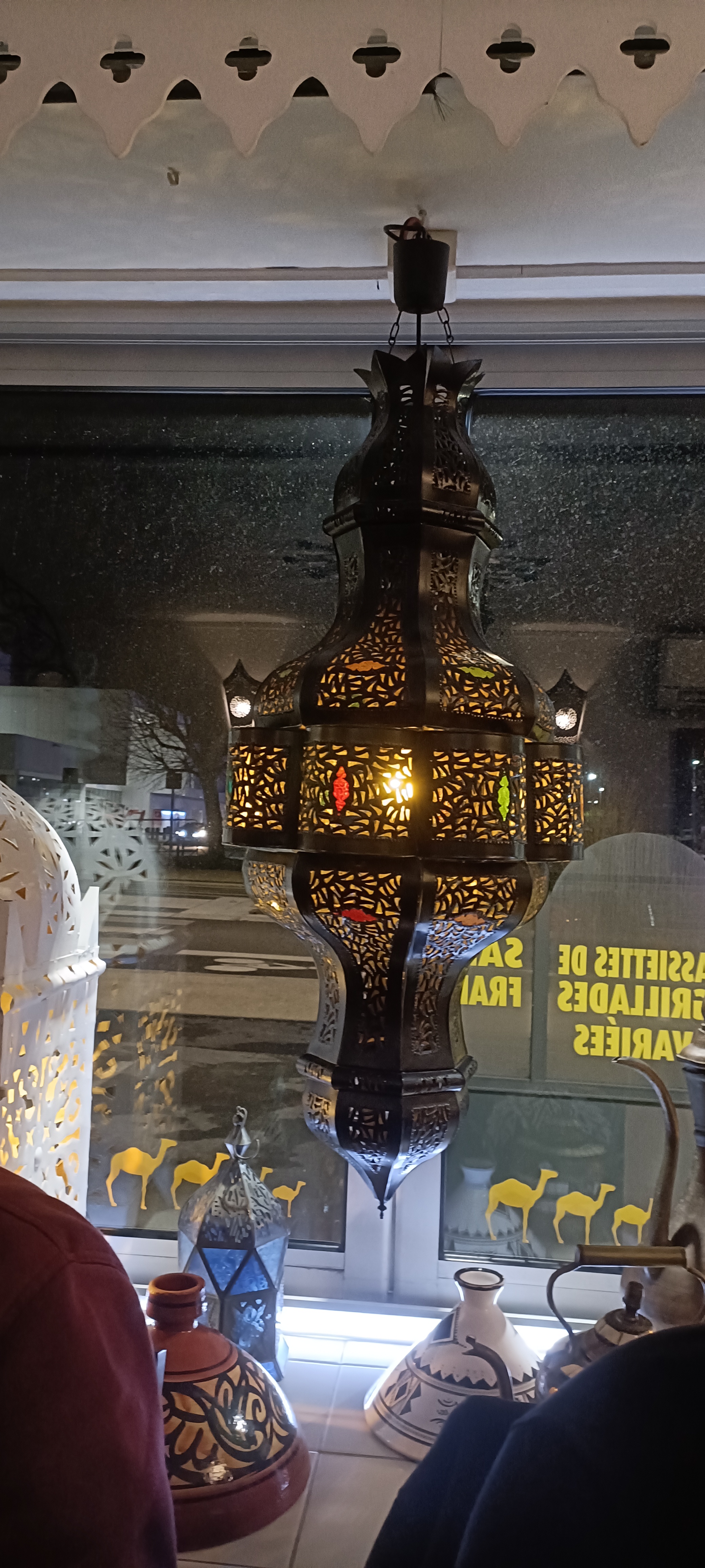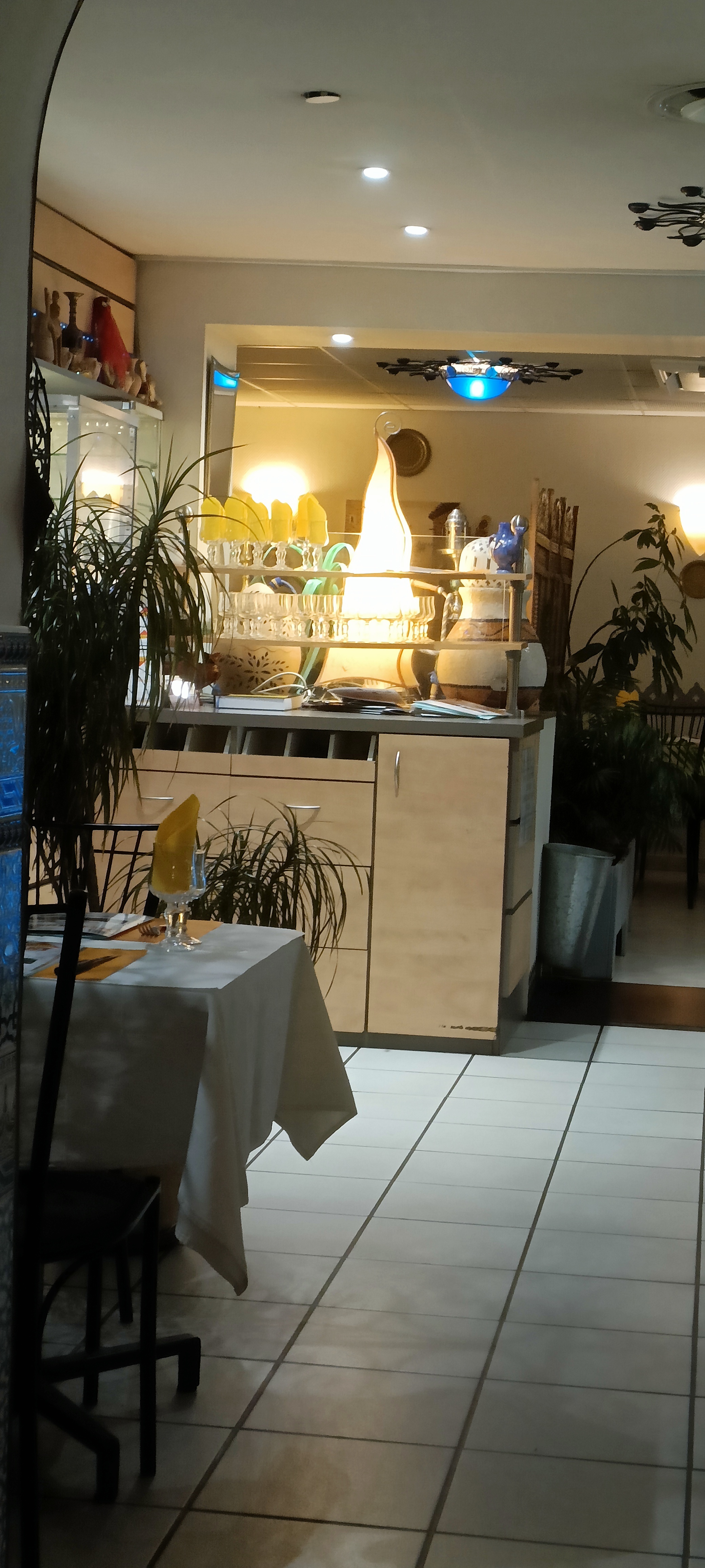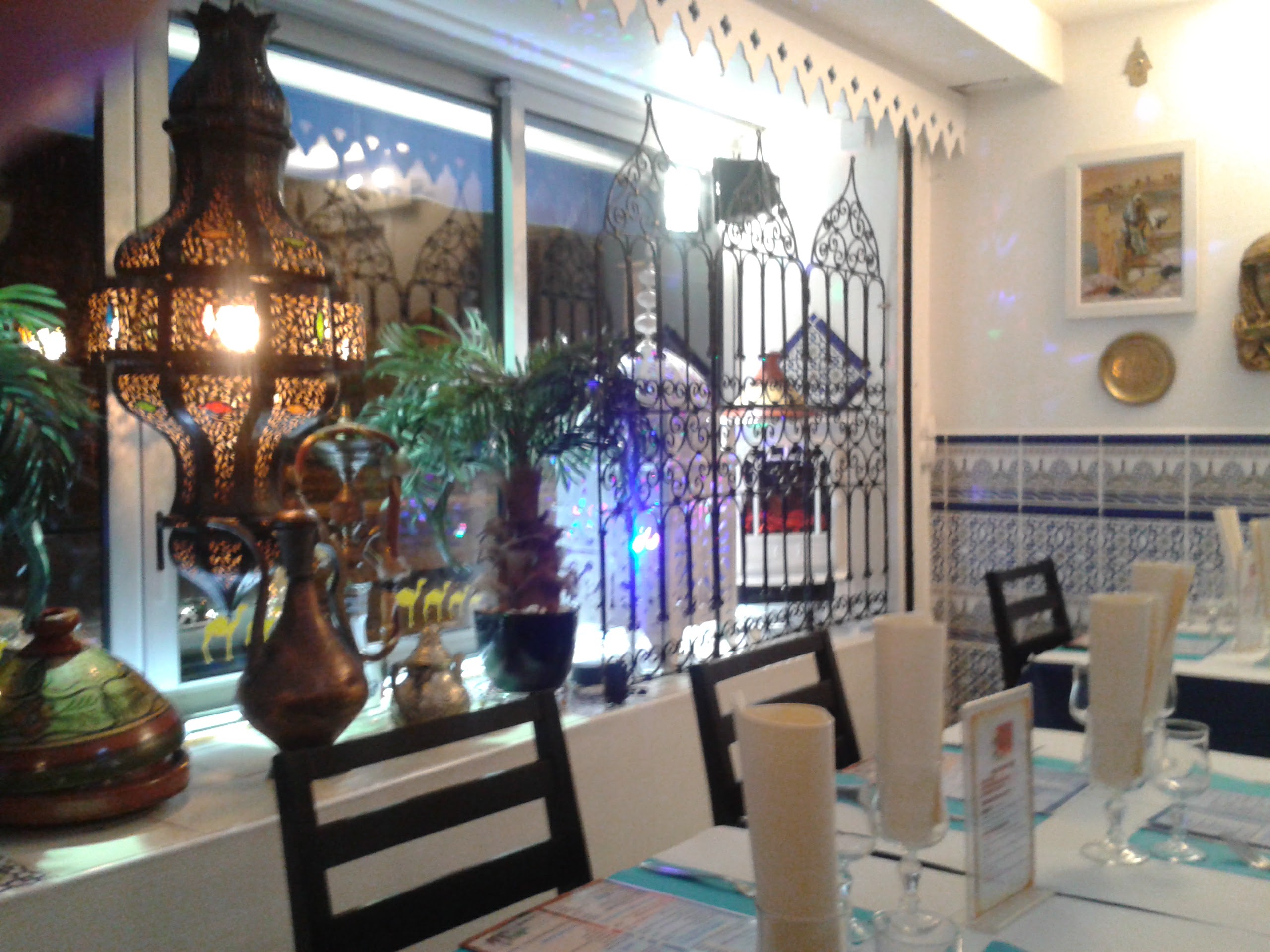 Première visite dans votre restaurant, on m'en a dit du bien donc je propose à des amis de s'y retrouver pour une soirée. Nous arrivons, plutôt sympa, nous avons la pièce à gauche pour nous (nous sommes 9), c'est plutôt pas mal. Sauf qu'après 5 min nous commençons à nous demander si nous sommes à Marrakech ou au pôle nord !!!!!! Un conseil, vous avez beau mettre les chauffages à fond, clim etc etc, le problème vient d'en haut au niveau de votre rideau que vous baissez lorsque votre magasin est fermé, il y a un passage d'air extrêmement froid et de ce fait nous avons passé une très mauvaise soirée rien qu'à cause de ça !!!!! Mettre le manteau pour manger à l'intérieur ne me semble pas normal non ? Dommage, le couscous était plutôt bon, le thé gourmand je n'ai pas aimé les 3 tranches d'un millimètre d'ananas, ni les cornes de gazelle trop sèches, ni le service relativement long mais bon........ Dernière chose, je ne vous prends pas en défaut avec ce commentaire car nous l'avons dis à la serveuse (sympa du reste) et également à la jeune fille qui nous a encaissé. Un peu plus de sourire de sa part aurait été le bienvenu, une petite excuse pour le froid aussi......... Allons jeune fille, soyez agréable, ce sont des clients que vous avez en face de vous !!!!!! Ayez un peu le sens de l'amabilité et de l'accueil comme l'on ceux d'Afrique du Nord. Nous ne reviendrons pas c'est sur. Bonne soirée. CHOUKRANE !