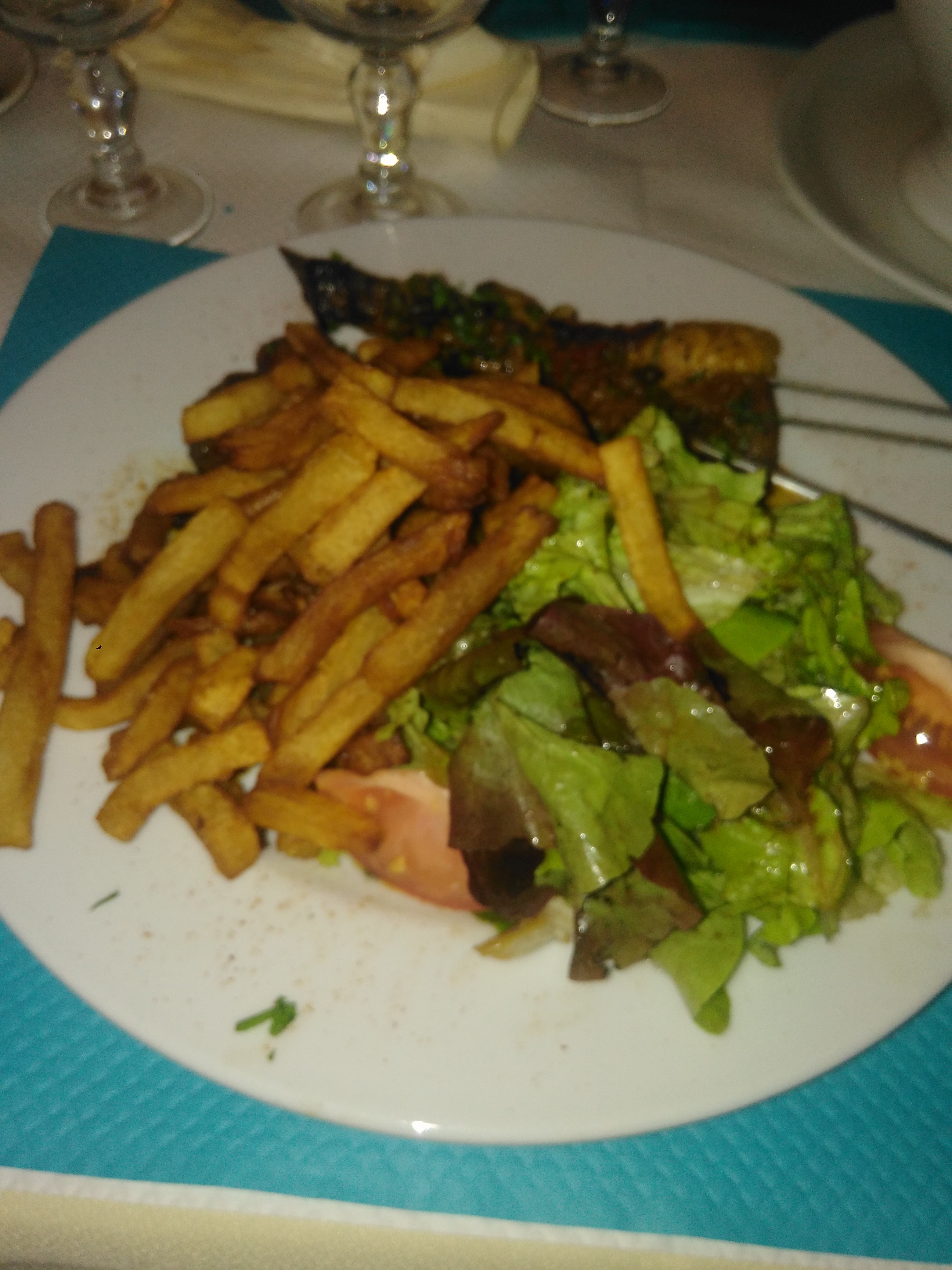 Un peu déçue par rapport aux fois précédentes, qualité moyenne des produits, carafe d'eau à moitié pleine, légumes peu cuits.