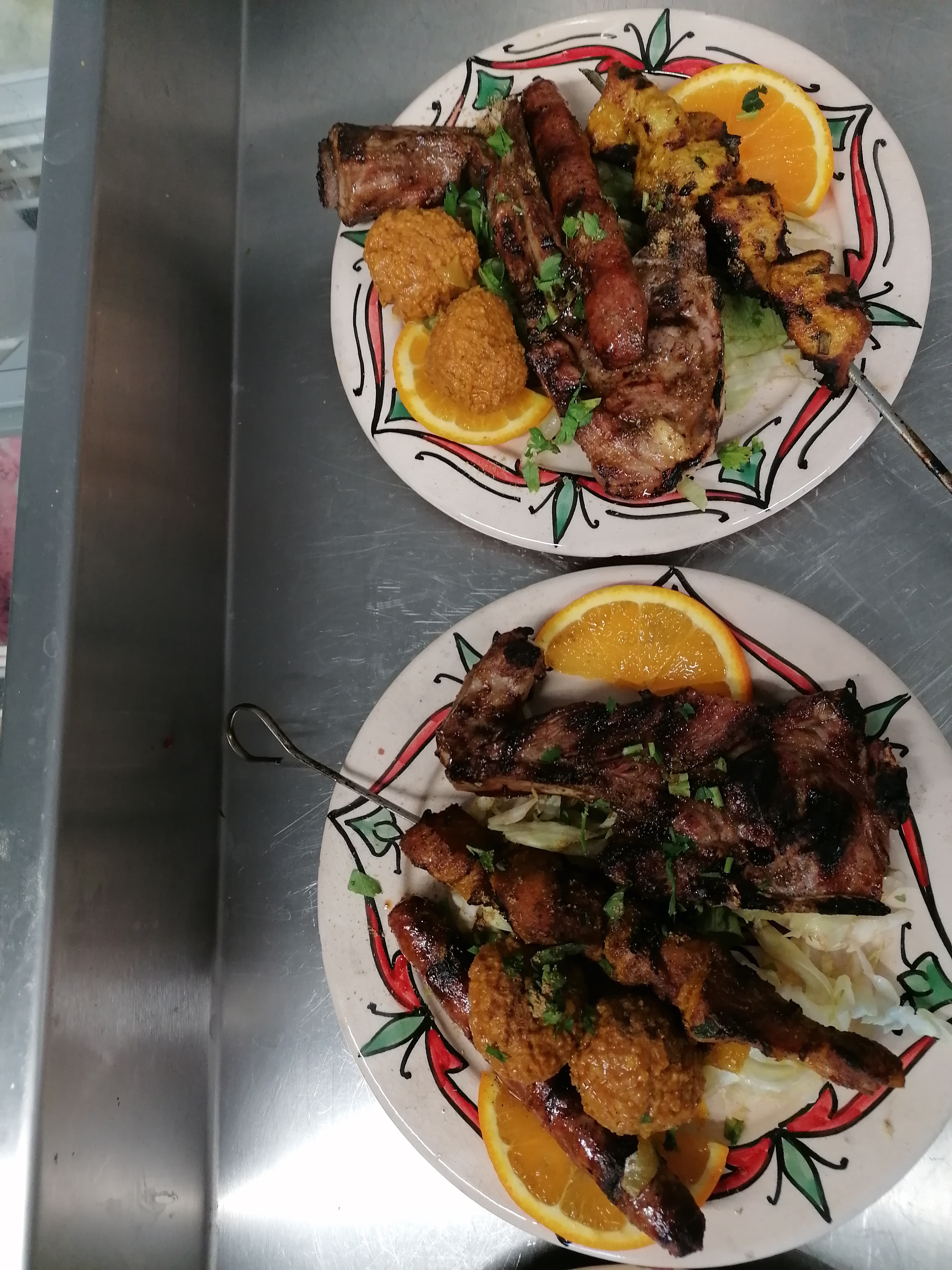 1/ difficile de se garer 2/ à peine installés, aussitôt servis: on n’a l’impression qu’ils guettent notre dernière bouchée… 3/ mon mari a pris le mogador, boulette fade, côte agneau pas assez cuite , moi j’ai pris merguez brochettes, 2 de chaque… merguez correctes brochettes trop cuites et sèches 4/ semoule servie dans une assiette plate😭 5/ les légumes servis dans un bouillon marron peu appétissant et beaucoup trop épais… 6 / verre à vin de brasserie super épais 74 euros à 2 avec une bouteille de vin. Nous n’y retournerons pas