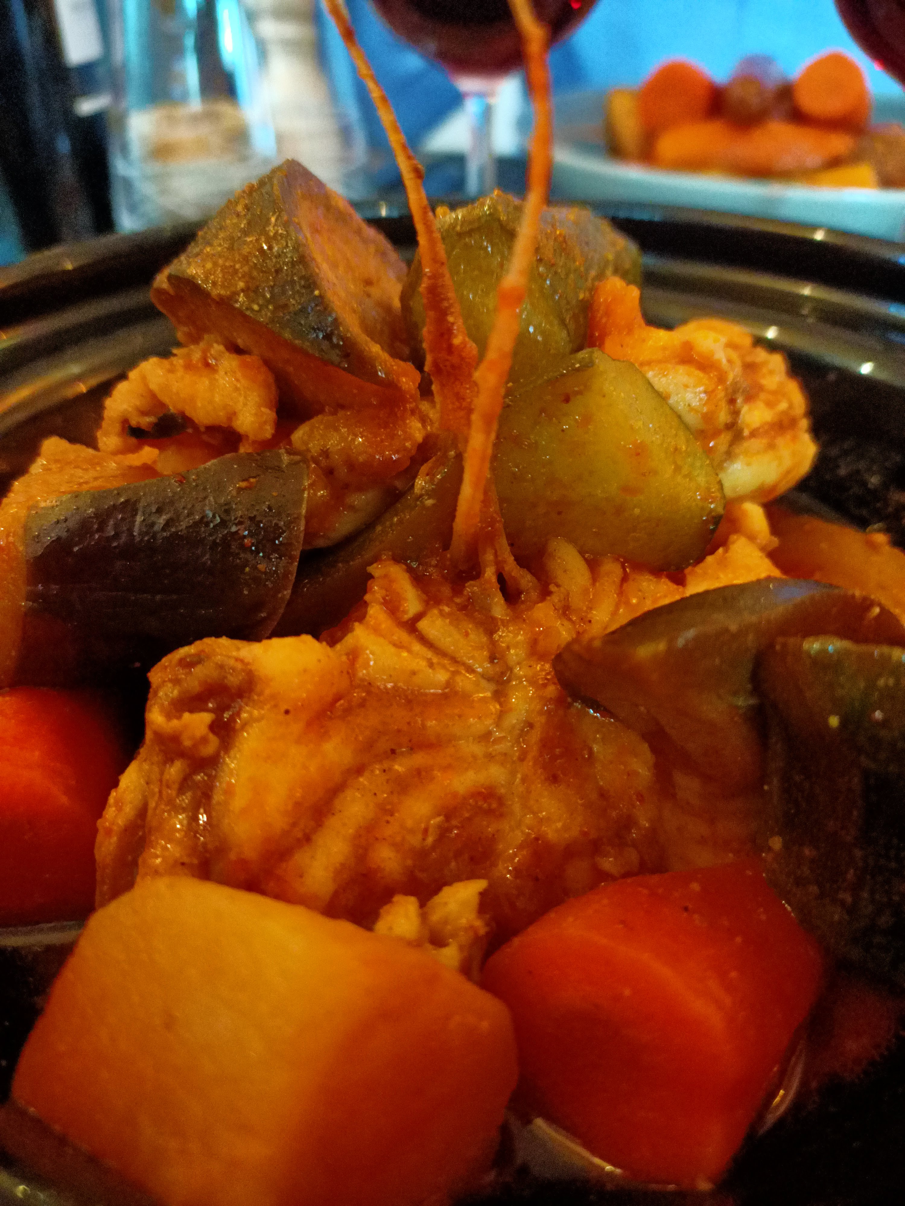 Accueil très sympa j aime les plats épicés et très fin tajine de palourdes ma femme bar tangeroise très bien et très bon